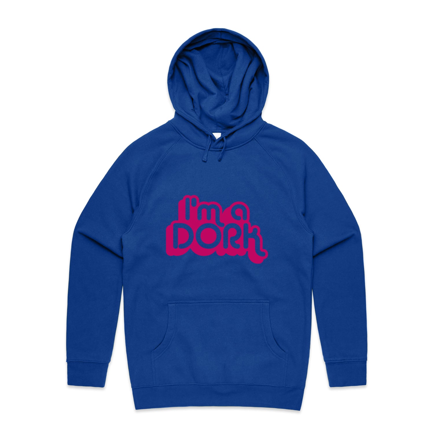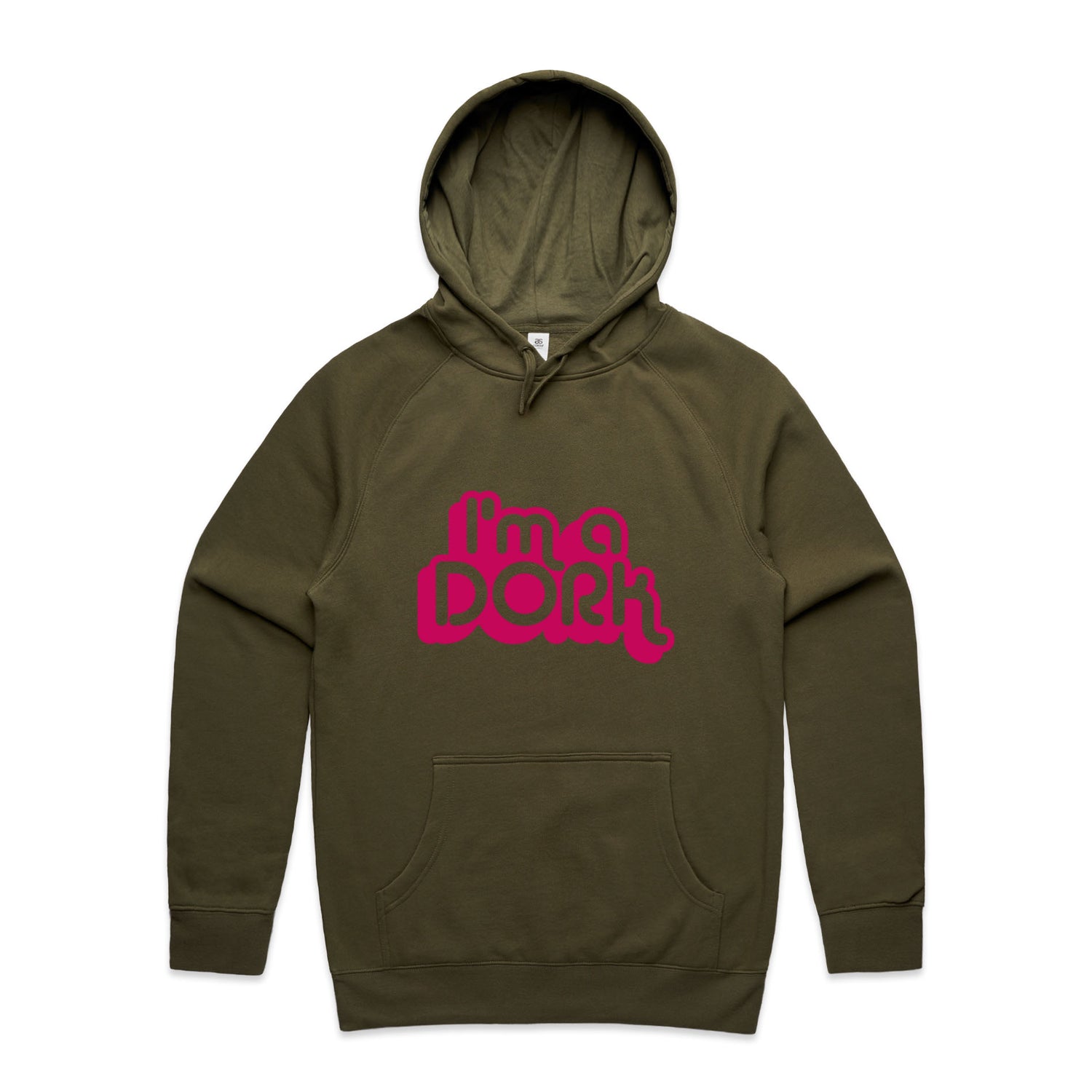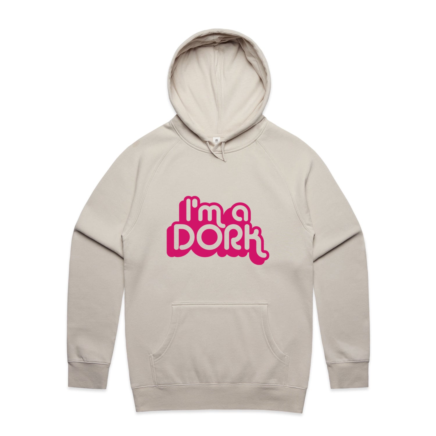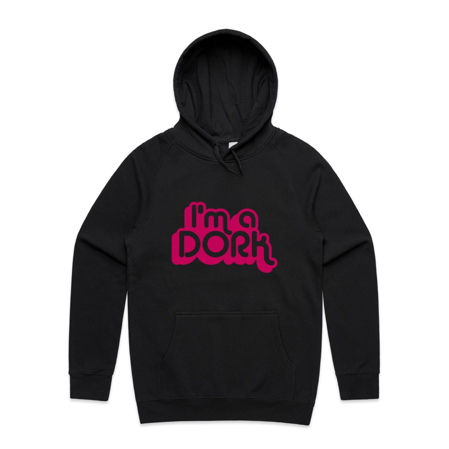 The Hoodies I'm a Dork – Men's Hooded Sweatshirt is a high-quality men's hooded sweatshirt, printed with pink ink on the trusted AS Colour Supply Hood 5101. With a regular fit and mid-weight feel, it's crafted from a premium blend of 80% cotton and 20% polyester anti-pill fleece, making it a durable and comfortable staple for any wardrobe. The pullover design features raglan sleeves, a lined hood with tonal drawcord, ribbed sleeve cuffs, and a roomy kangaroo pocket — all designed to keep you warm while looking effortlessly sharp.