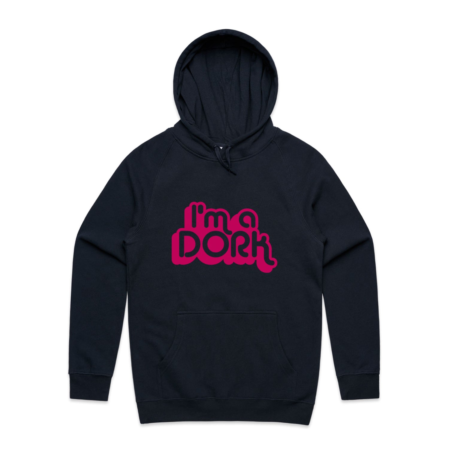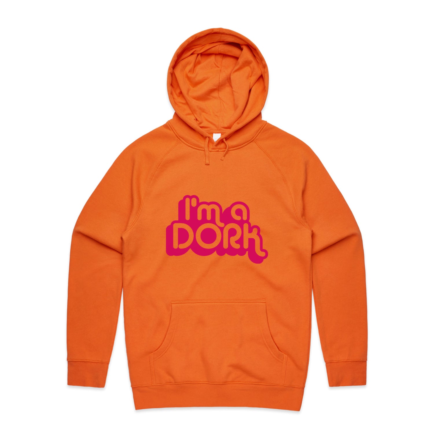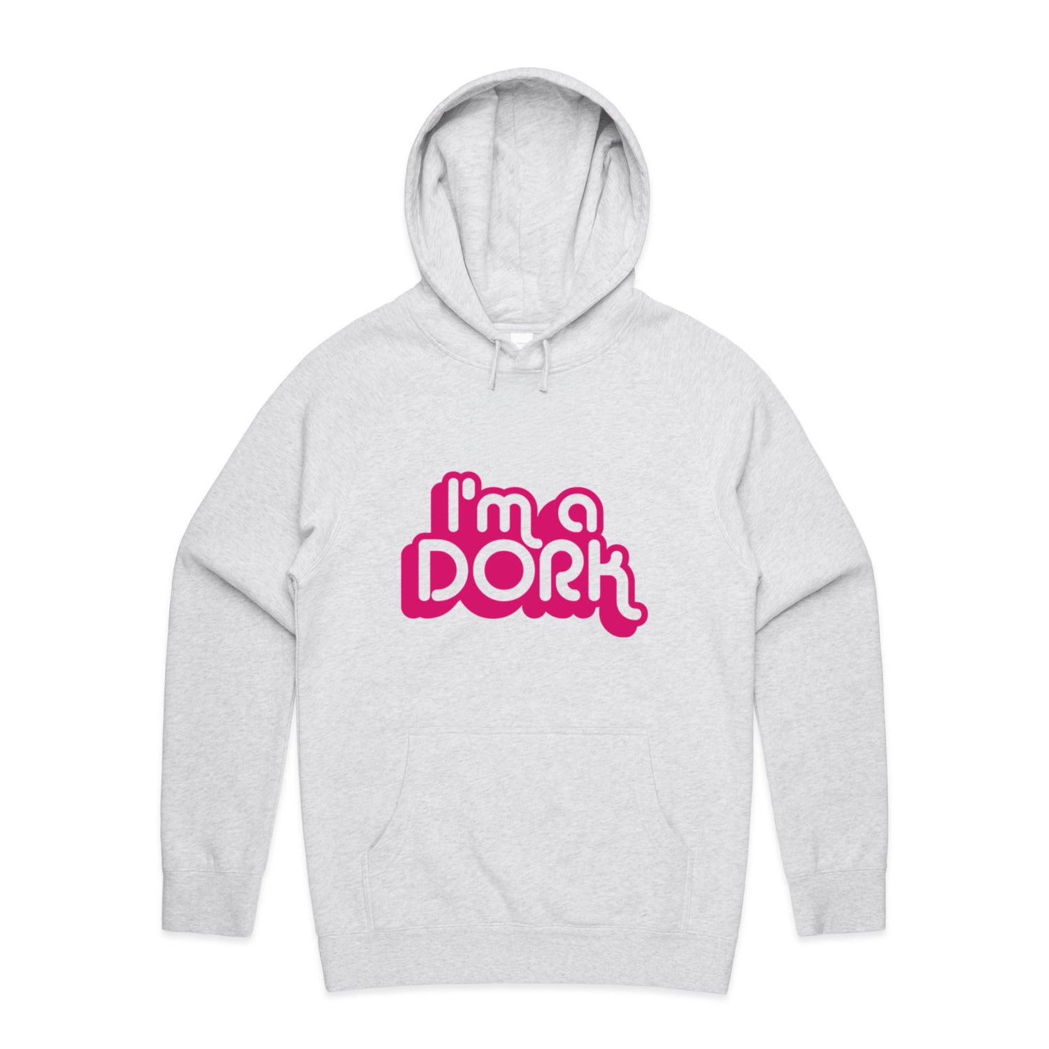 The Hoodies I'm a Dork – Men's Hooded Sweatshirt is a high-quality men's hooded sweatshirt, printed with pink ink on the trusted AS Colour Supply Hood 5101. With a regular fit and mid-weight feel, it's crafted from a premium blend of 80% cotton and 20% polyester anti-pill fleece, making it a durable and comfortable staple for any wardrobe. The pullover design features raglan sleeves, a lined hood with tonal drawcord, ribbed sleeve cuffs, and a roomy kangaroo pocket — all designed to keep you warm while looking effortlessly sharp.