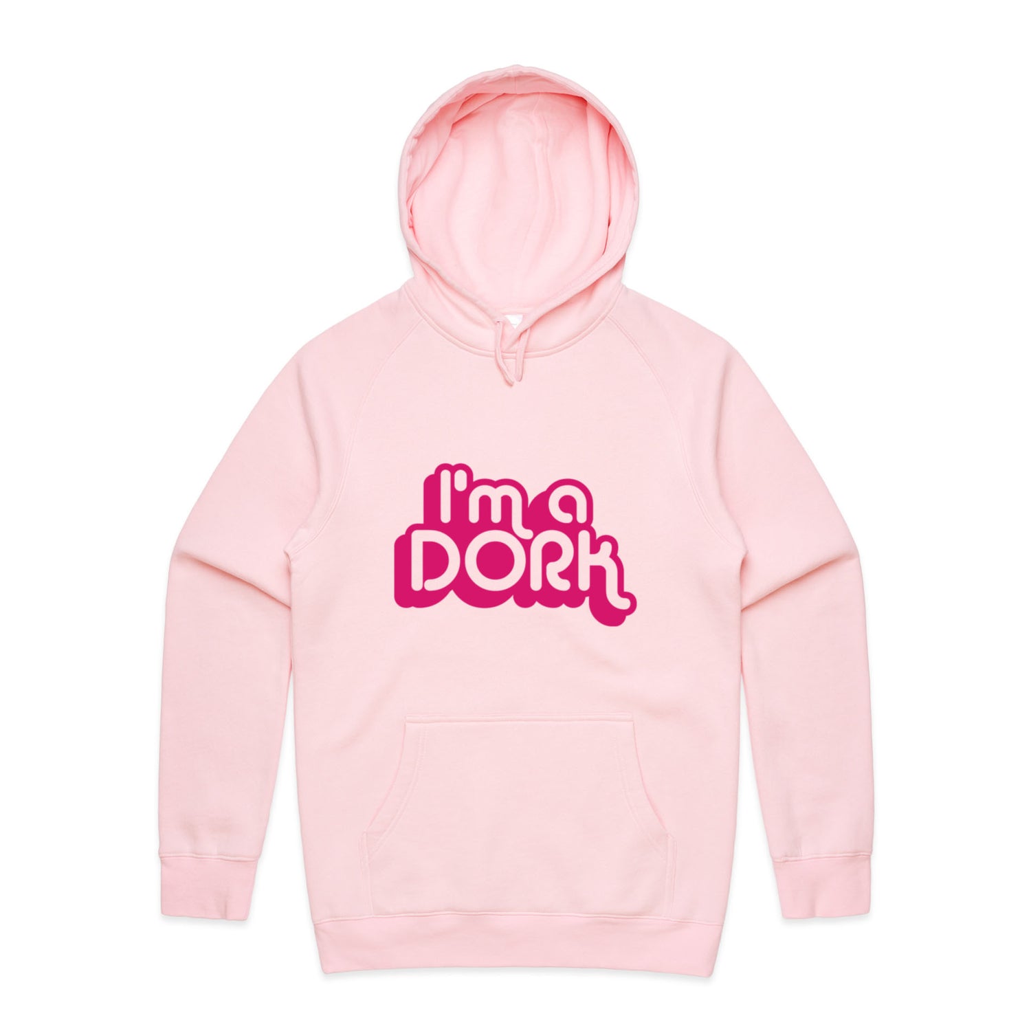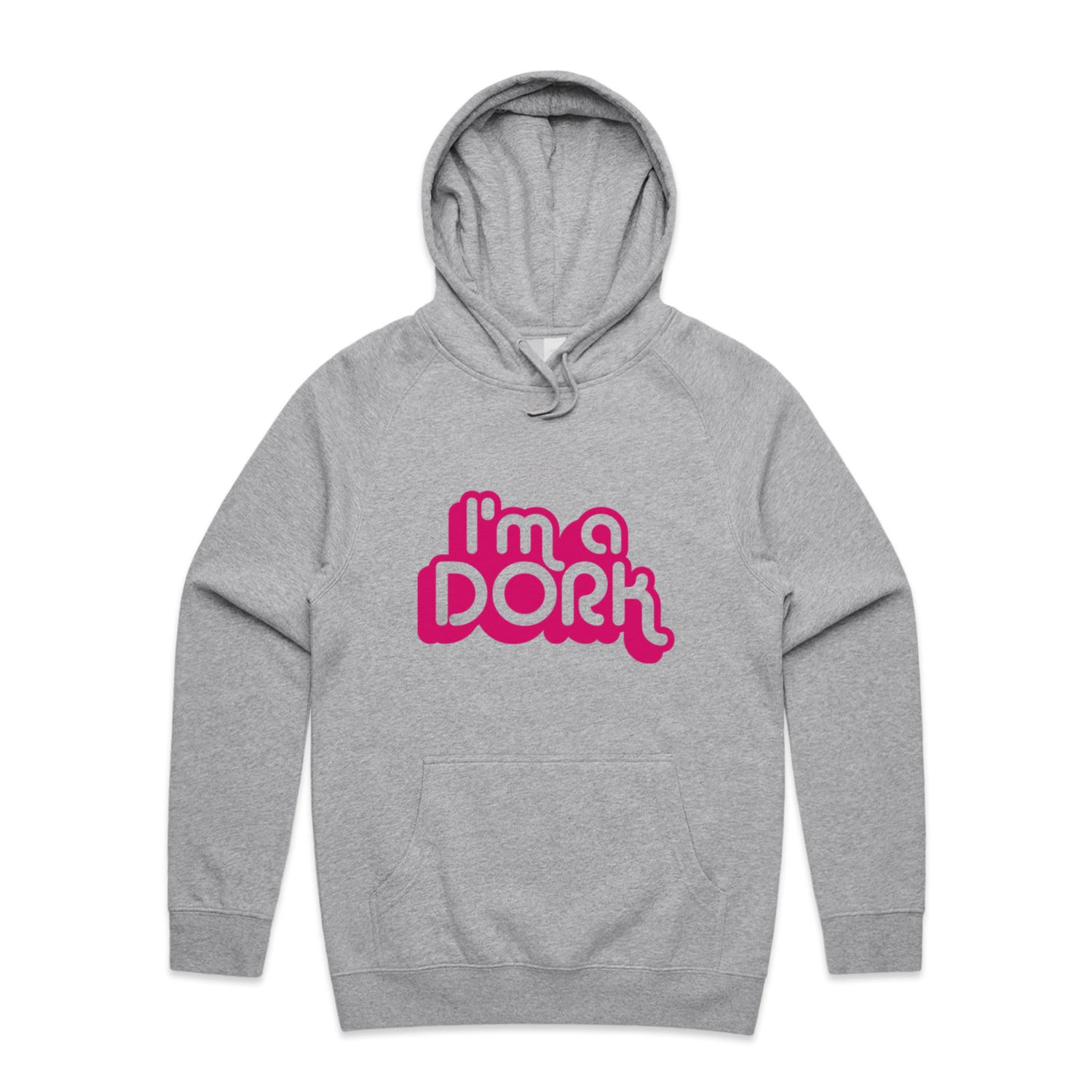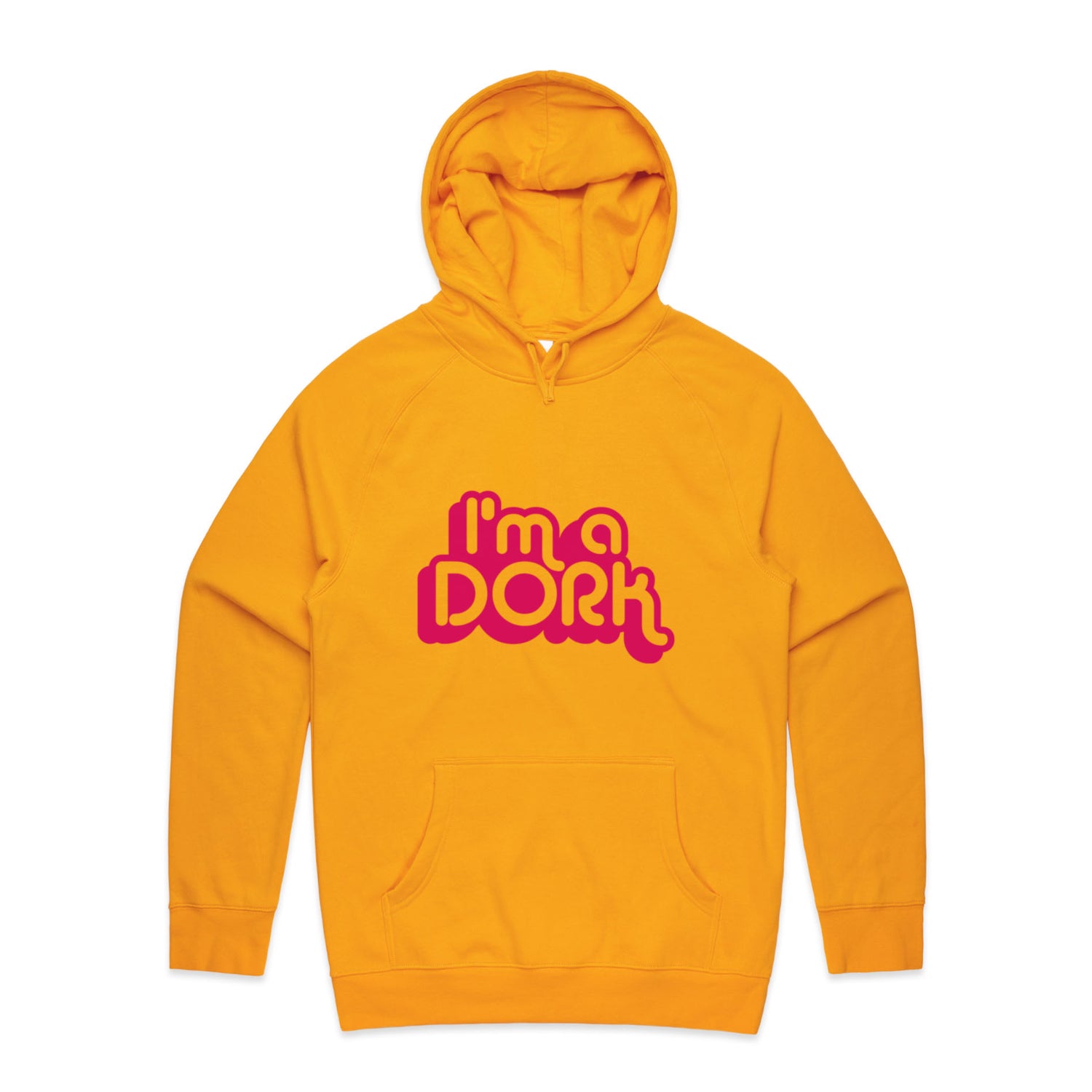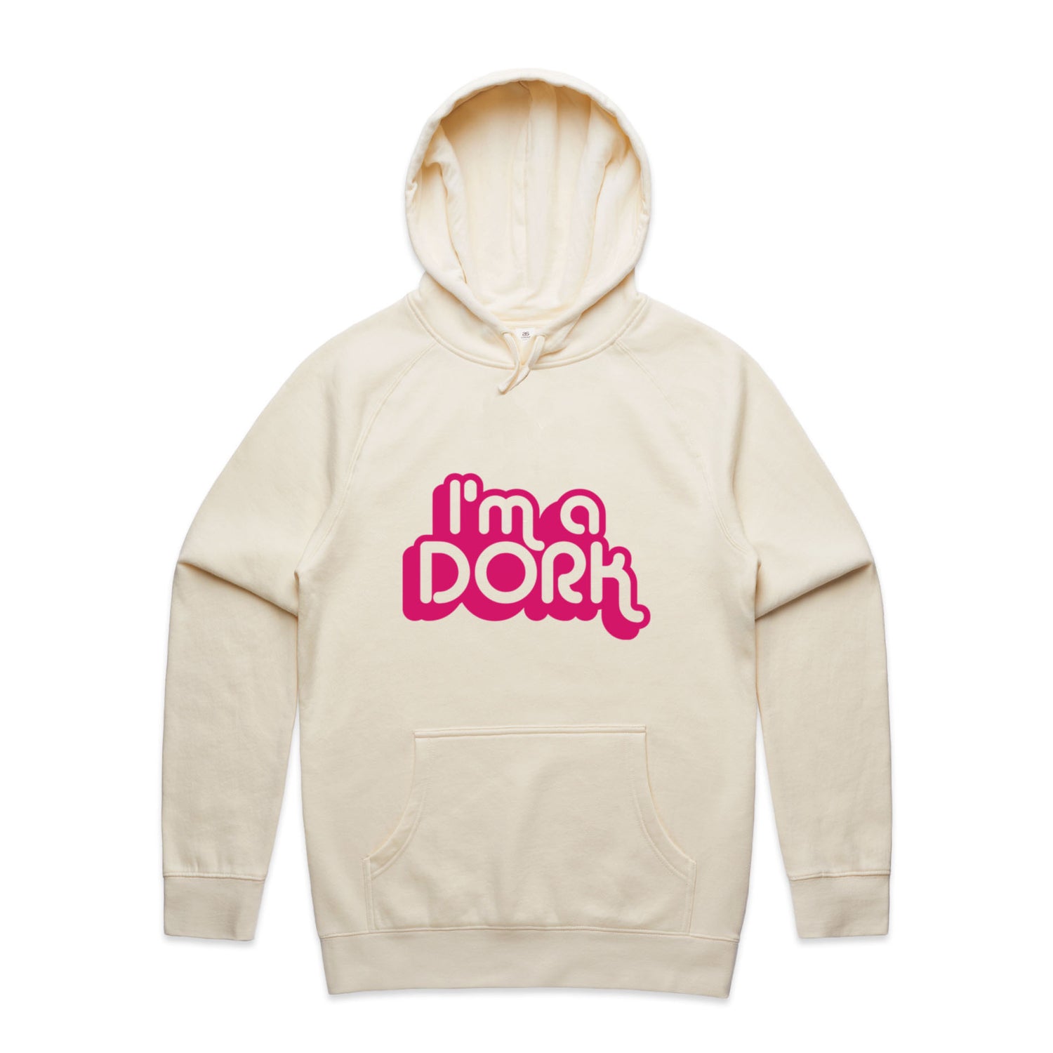 The Hoodies I'm a Dork – Men's Hooded Sweatshirt is a high-quality men's hooded sweatshirt, printed with pink ink on the trusted AS Colour Supply Hood 5101. With a regular fit and mid-weight feel, it's crafted from a premium blend of 80% cotton and 20% polyester anti-pill fleece, making it a durable and comfortable staple for any wardrobe. The pullover design features raglan sleeves, a lined hood with tonal drawcord, ribbed sleeve cuffs, and a roomy kangaroo pocket — all designed to keep you warm while looking effortlessly sharp.