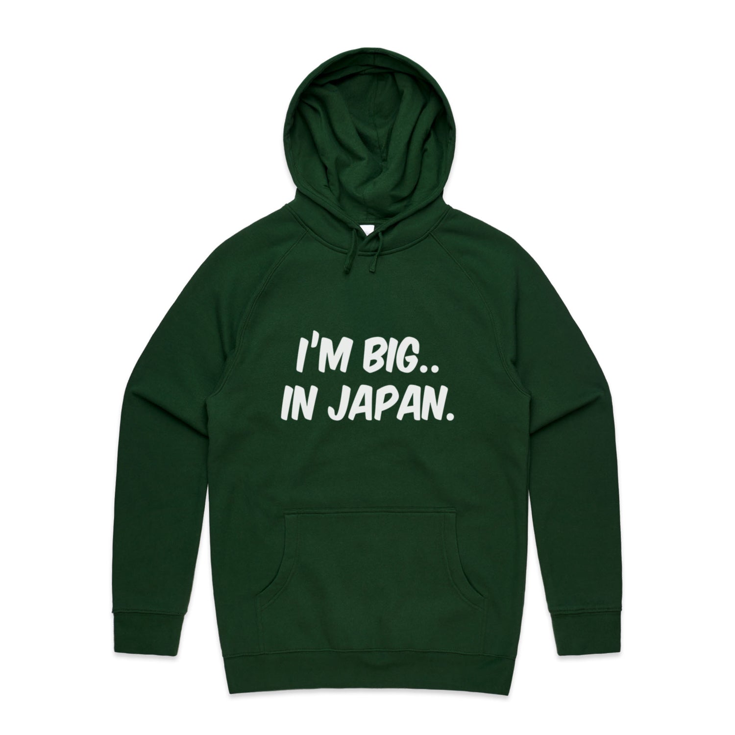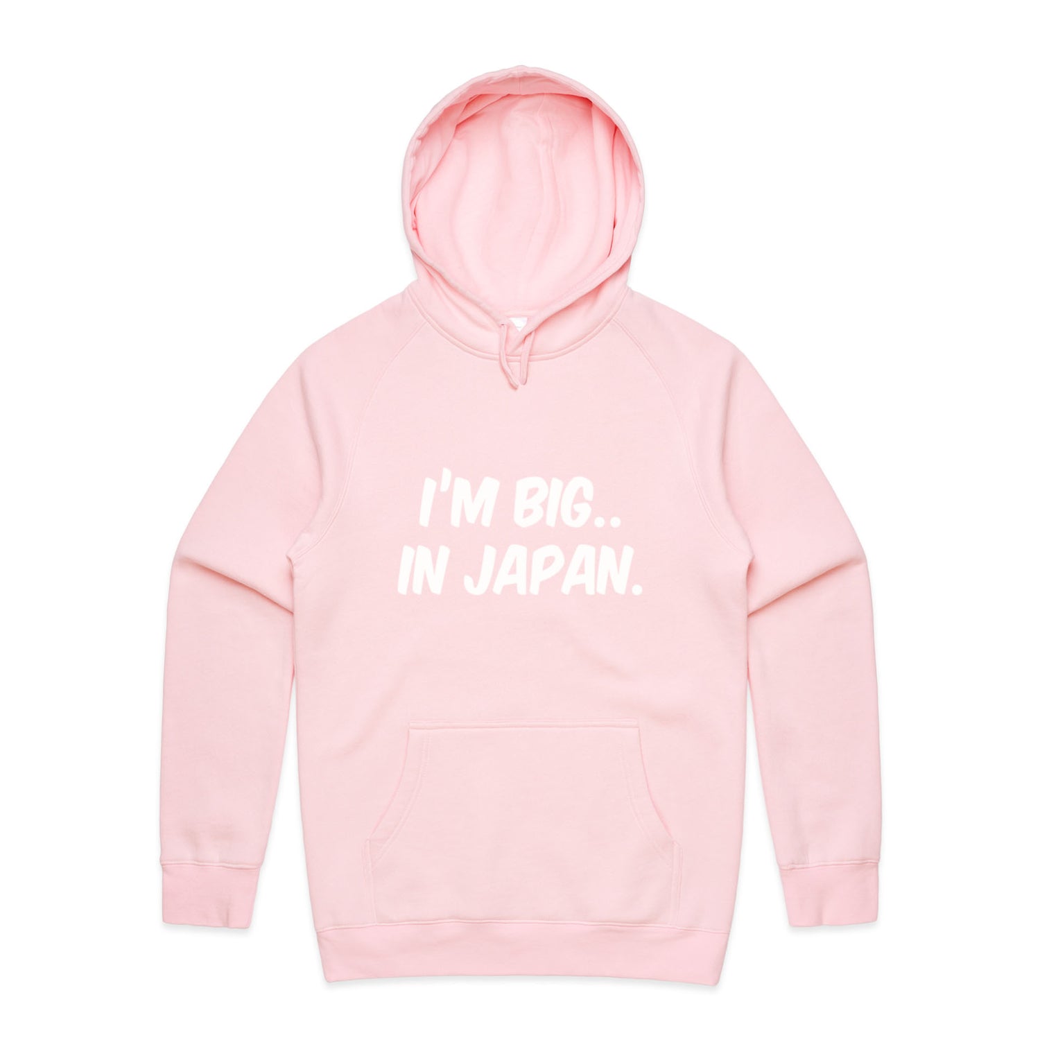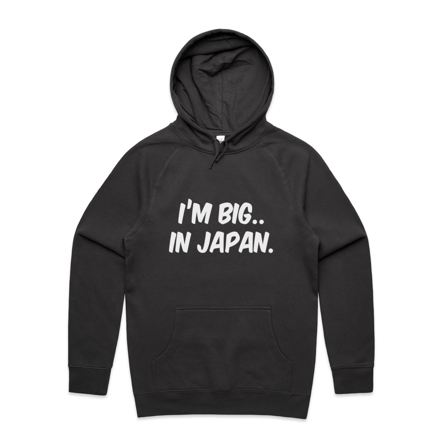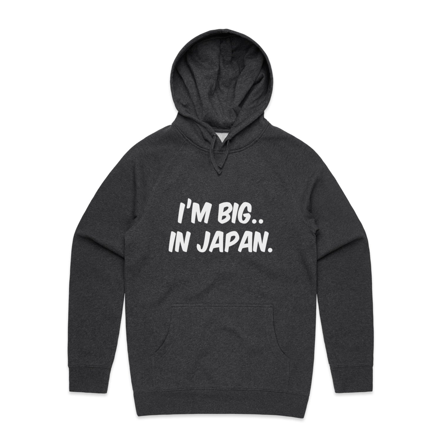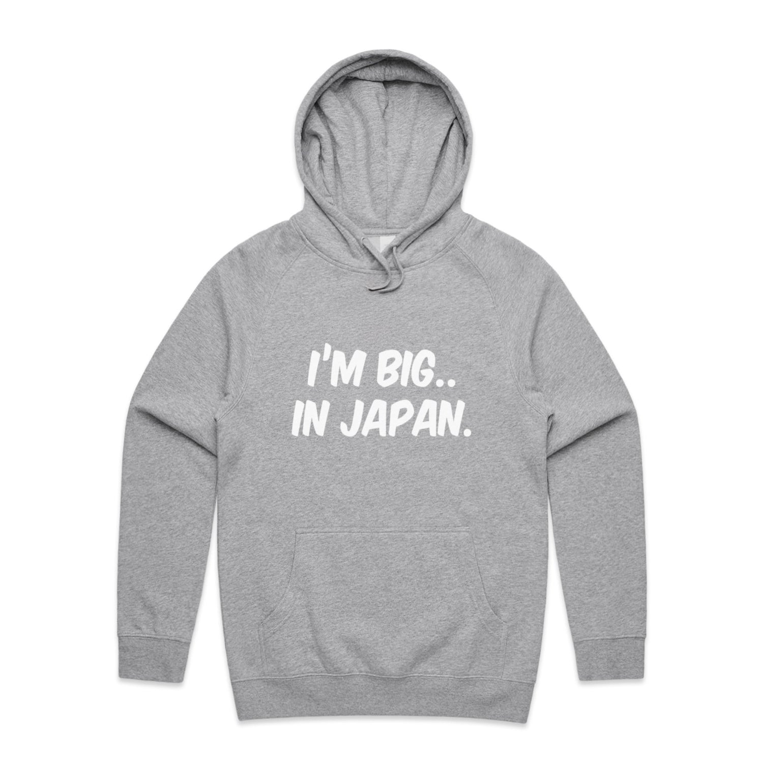 The Hoodies Im Big in Japan – Men's Hooded Sweatshirt is a high-quality men's hooded sweatshirt, printed with white ink on the trusted AS Colour Supply Hood 5101. With a regular fit and mid-weight feel, it's crafted from a premium blend of 80% cotton and 20% polyester anti-pill fleece, making it a durable and comfortable staple for any wardrobe. The pullover design features raglan sleeves, a lined hood with tonal drawcord, ribbed sleeve cuffs, and a roomy kangaroo pocket — all designed to keep you warm while looking effortlessly sharp.