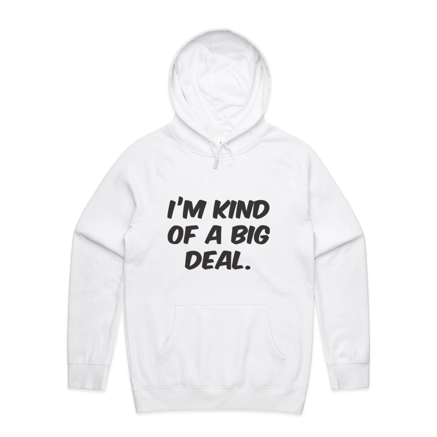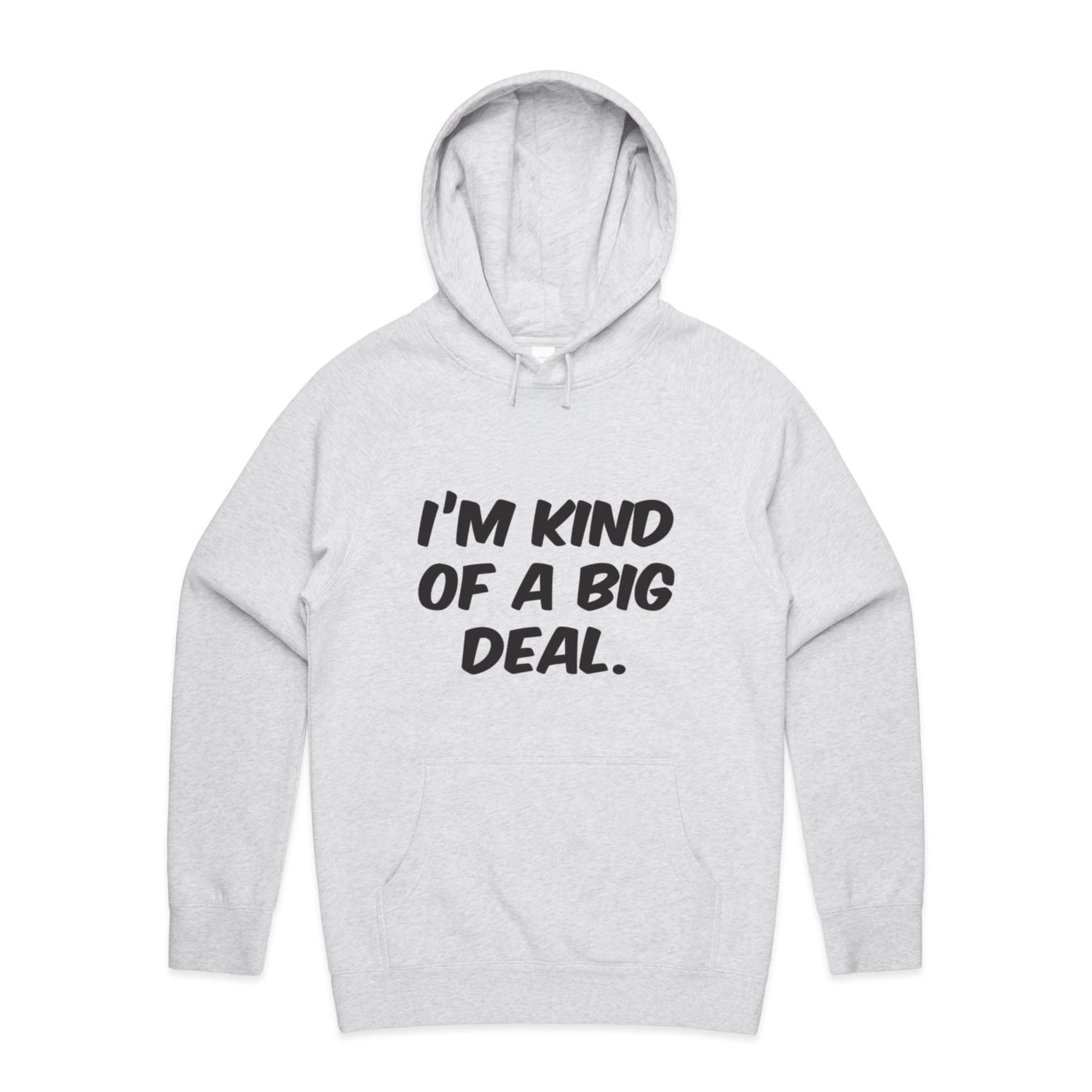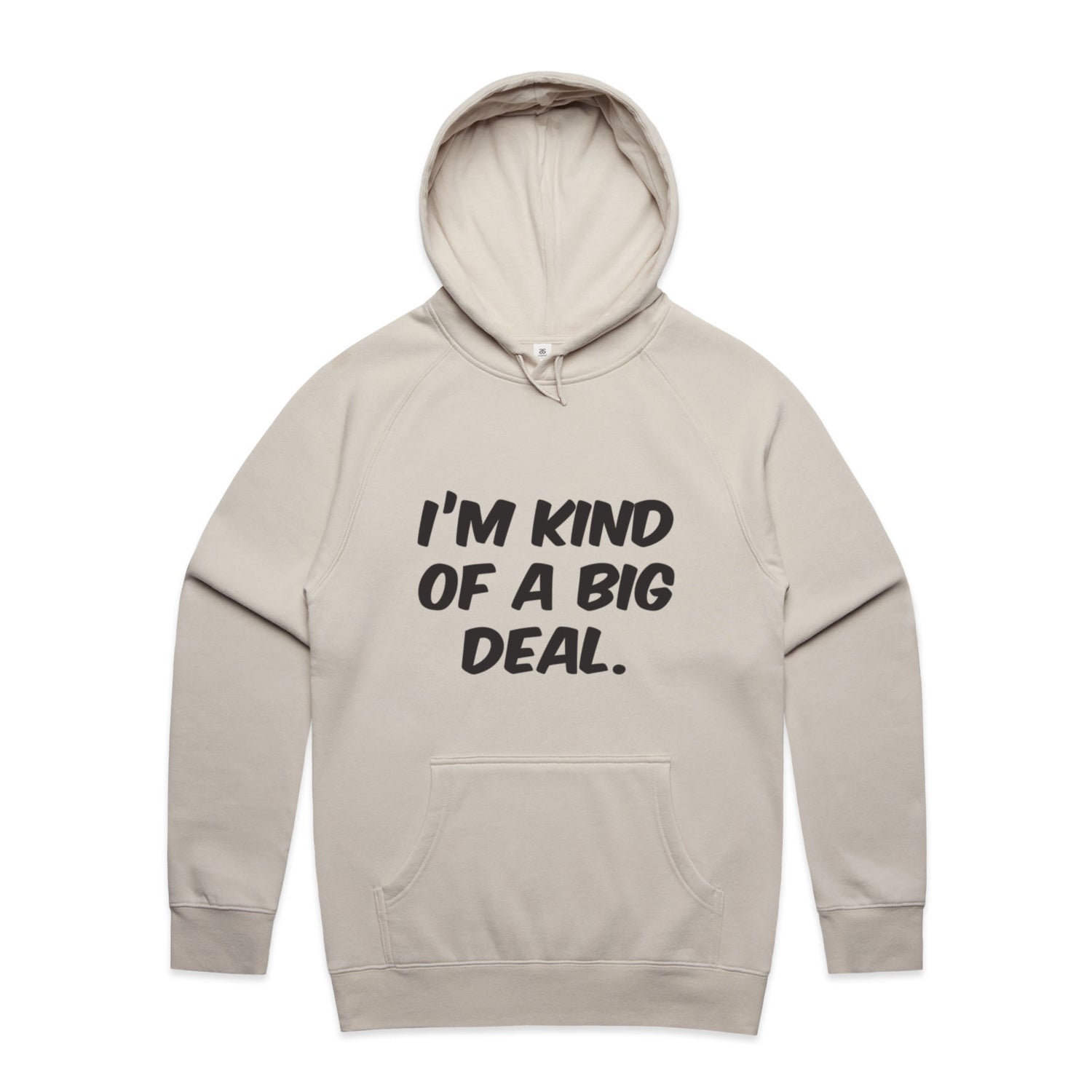 The Hoodies Im Kind of a Big Deal – Men's Hooded Sweatshirt is a high-quality men's hooded sweatshirt, printed with black ink on the trusted AS Colour Supply Hood 5101. With a regular fit and mid-weight feel, it's crafted from a premium blend of 80% cotton and 20% polyester anti-pill fleece, making it a durable and comfortable staple for any wardrobe. The pullover design features raglan sleeves, a lined hood with tonal drawcord, ribbed sleeve cuffs, and a roomy kangaroo pocket — all designed to keep you warm while looking effortlessly sharp.