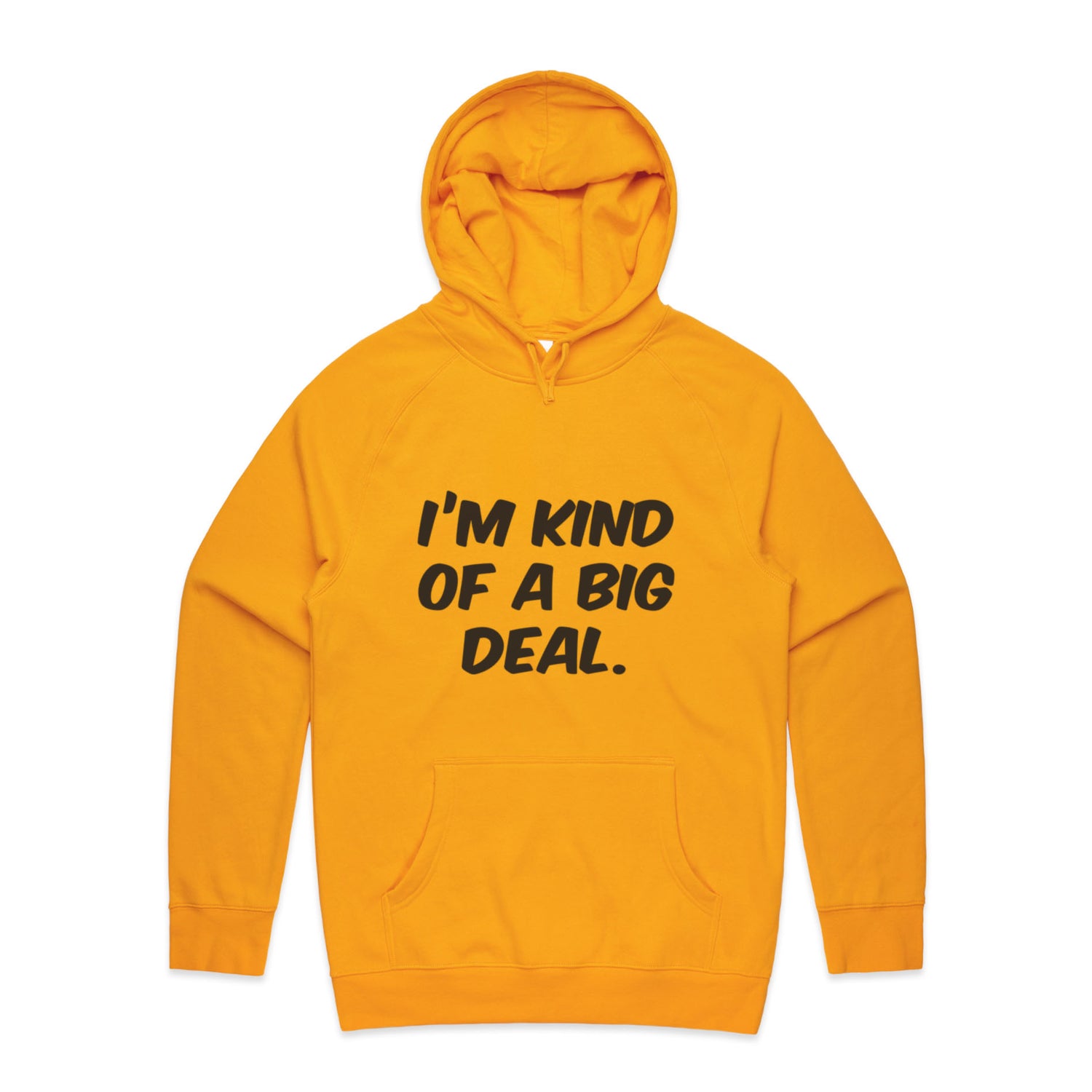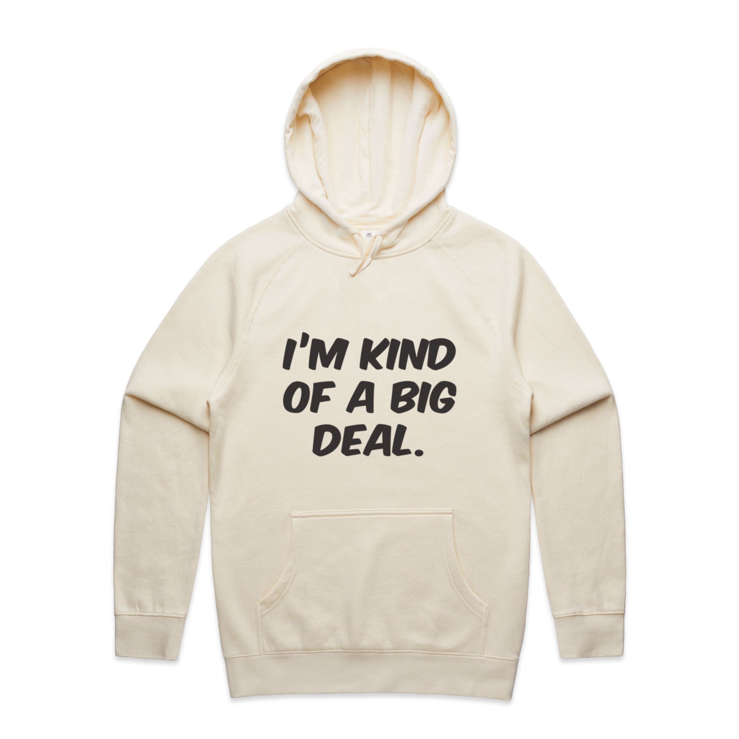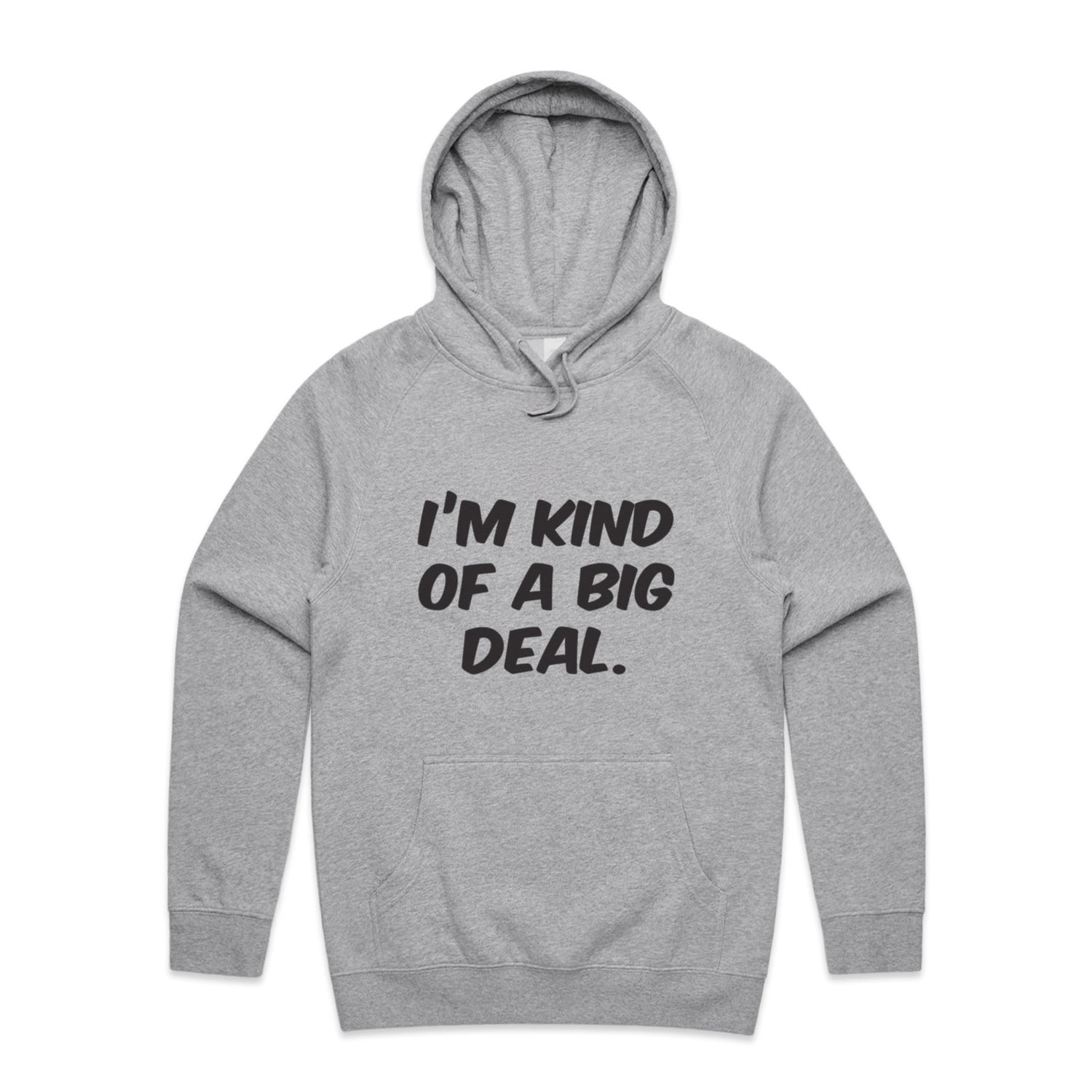 The Hoodies Im Kind of a Big Deal – Men's Hooded Sweatshirt is a high-quality men's hooded sweatshirt, printed with black ink on the trusted AS Colour Supply Hood 5101. With a regular fit and mid-weight feel, it's crafted from a premium blend of 80% cotton and 20% polyester anti-pill fleece, making it a durable and comfortable staple for any wardrobe. The pullover design features raglan sleeves, a lined hood with tonal drawcord, ribbed sleeve cuffs, and a roomy kangaroo pocket — all designed to keep you warm while looking effortlessly sharp.
