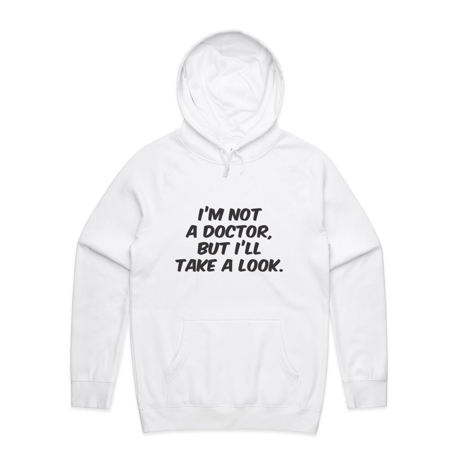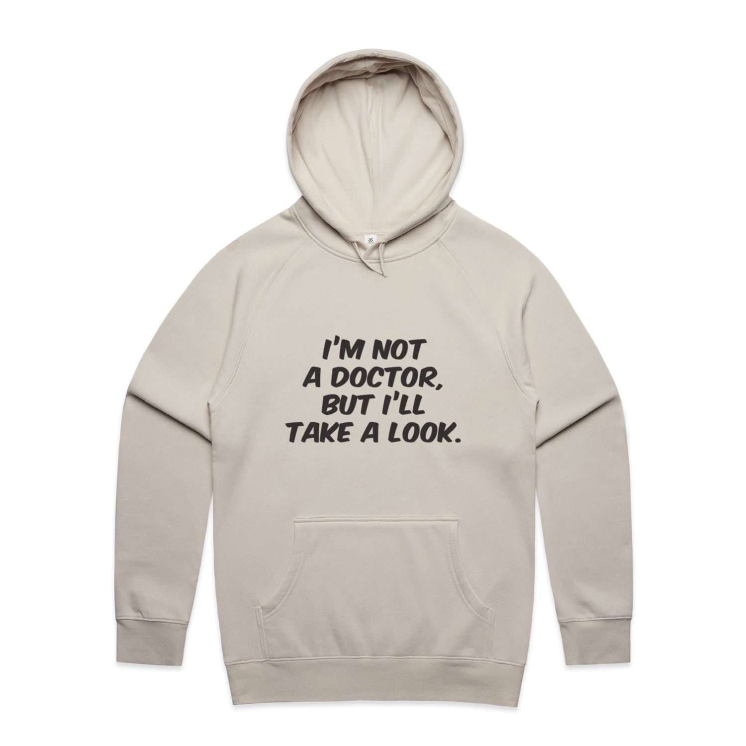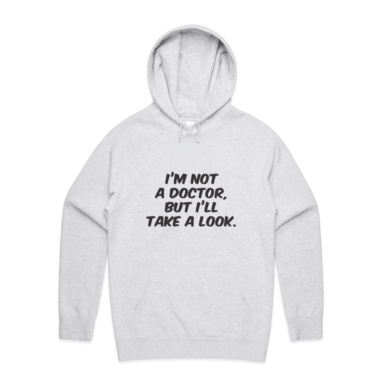 The Hoodies Im Not a Doctor but Ill Take a Look Black – Men's Hooded Sweatshirt is a high-quality men's hooded sweatshirt, printed with black ink on the trusted AS Colour Supply Hood 5101. With a regular fit and mid-weight feel, it's crafted from a premium blend of 80% cotton and 20% polyester anti-pill fleece, making it a durable and comfortable staple for any wardrobe. The pullover design features raglan sleeves, a lined hood with tonal drawcord, ribbed sleeve cuffs, and a roomy kangaroo pocket — all designed to keep you warm while looking effortlessly sharp.