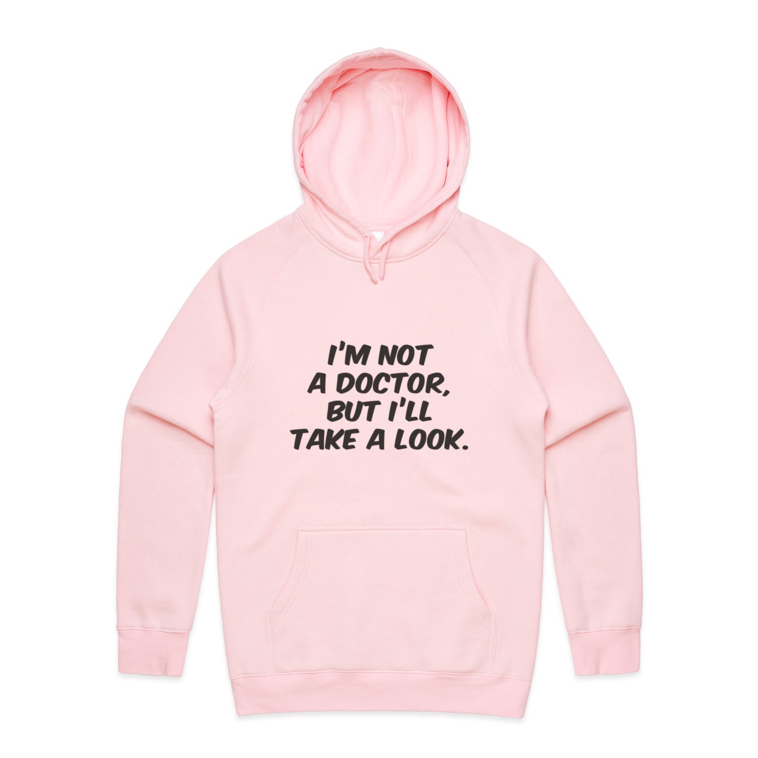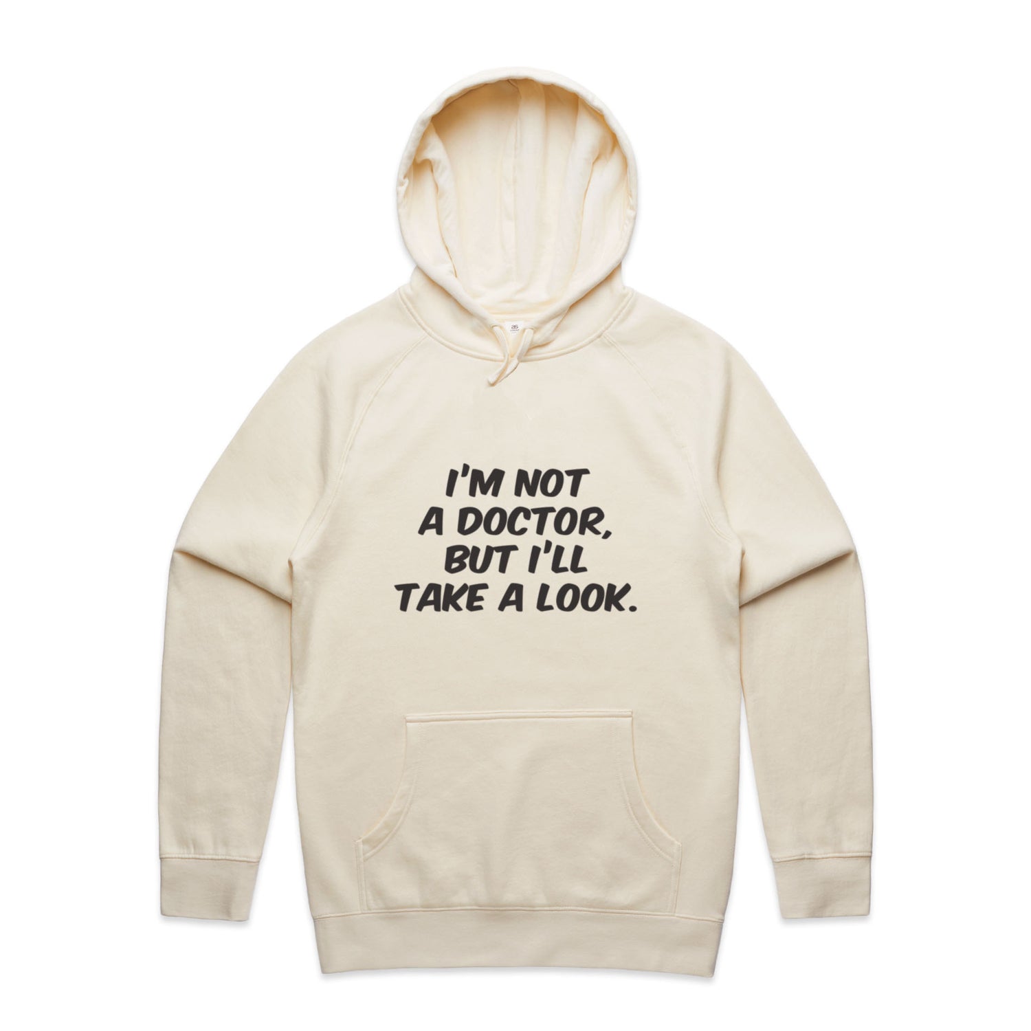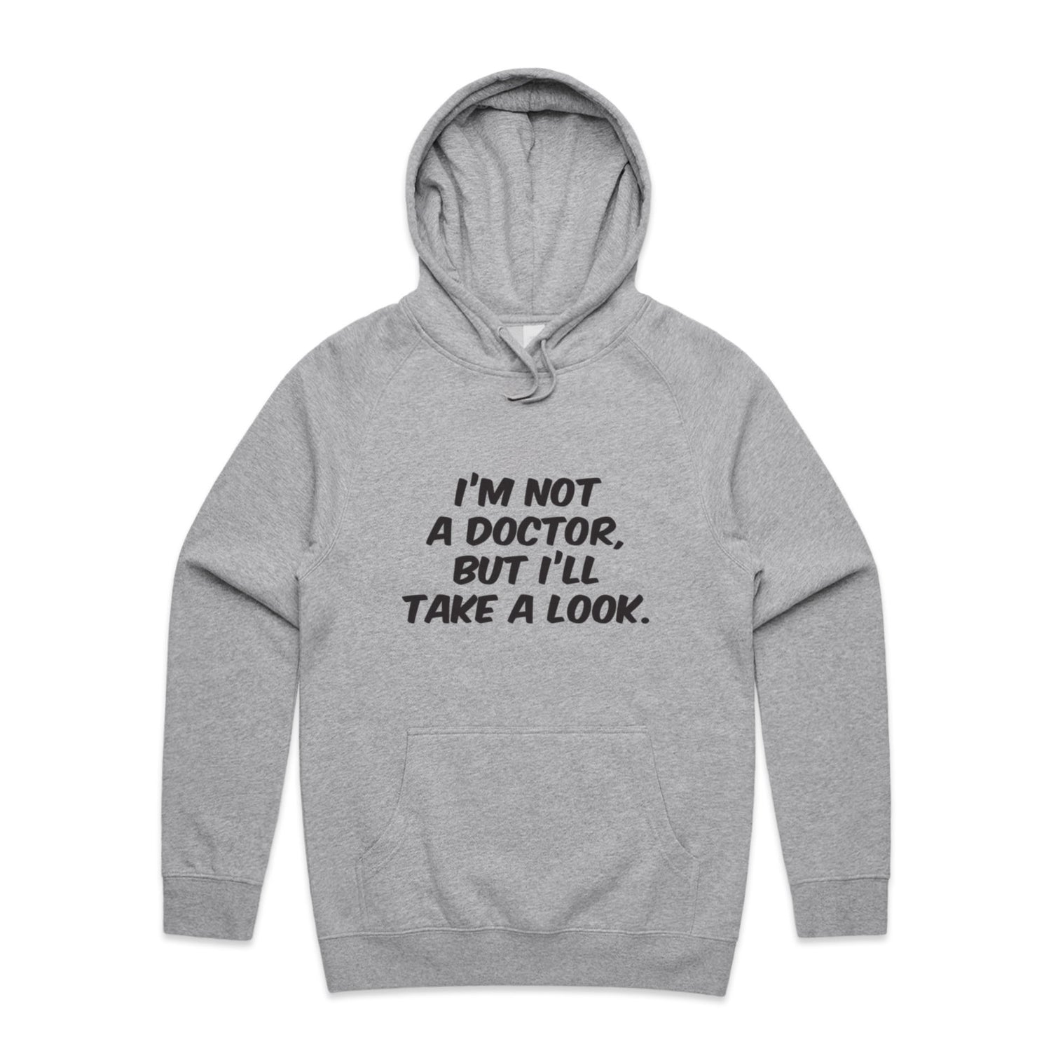The Hoodies Im Not a Doctor but Ill Take a Look Black – Men's Hooded Sweatshirt is a high-quality men's hooded sweatshirt, printed with black ink on the trusted AS Colour Supply Hood 5101. With a regular fit and mid-weight feel, it's crafted from a premium blend of 80% cotton and 20% polyester anti-pill fleece, making it a durable and comfortable staple for any wardrobe. The pullover design features raglan sleeves, a lined hood with tonal drawcord, ribbed sleeve cuffs, and a roomy kangaroo pocket — all designed to keep you warm while looking effortlessly sharp.