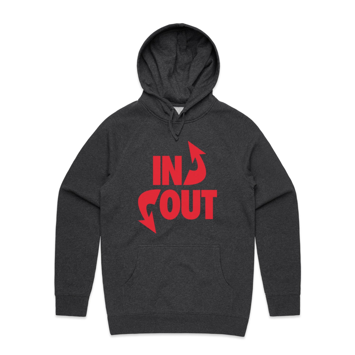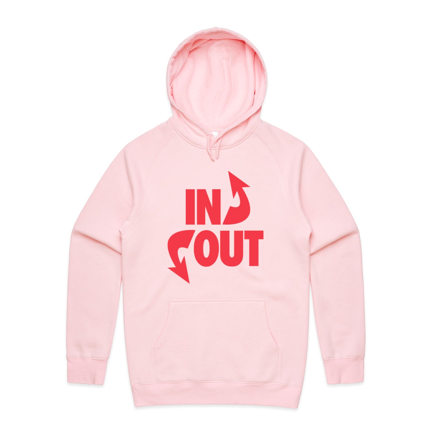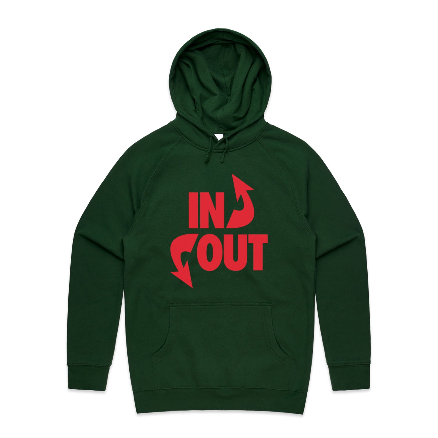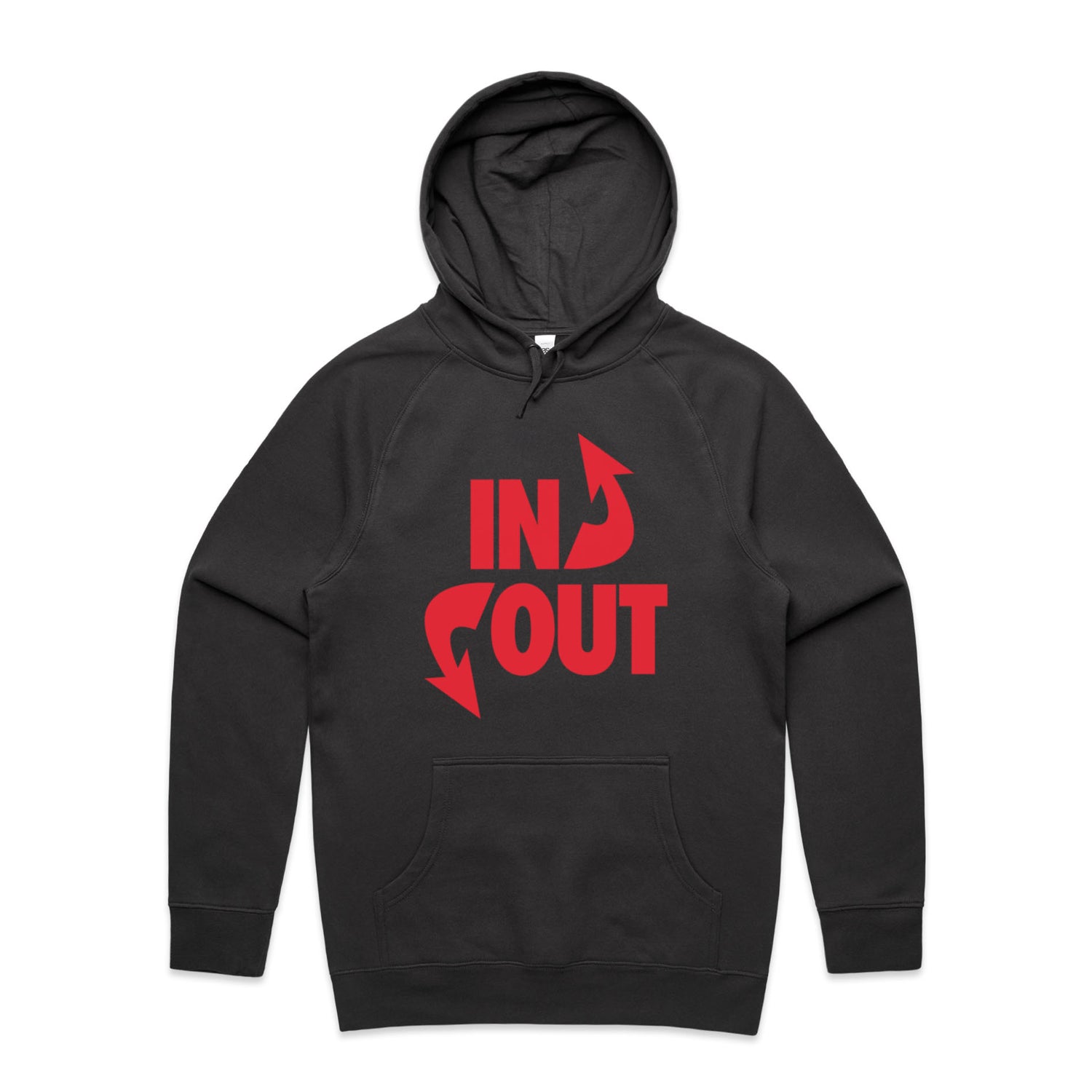 The Hoodies In 'N' Out – Men's Hooded Sweatshirt is a high-quality men's hooded sweatshirt, printed with red ink on the trusted AS Colour Supply Hood 5101. With a regular fit and mid-weight feel, it's crafted from a premium blend of 80% cotton and 20% polyester anti-pill fleece, making it a durable and comfortable staple for any wardrobe. The pullover design features raglan sleeves, a lined hood with tonal drawcord, ribbed sleeve cuffs, and a roomy kangaroo pocket — all designed to keep you warm while looking effortlessly sharp.