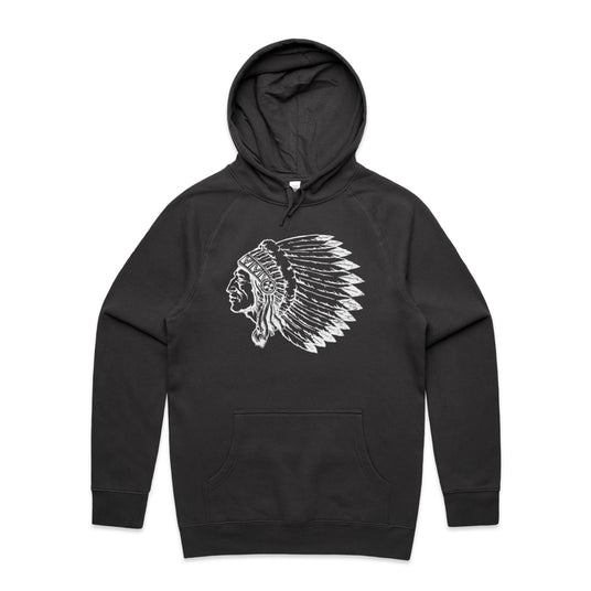 The Hoodies Indian Chief – Men's Hooded Sweatshirt is a high-quality men's hooded sweatshirt, printed with white ink on the trusted AS Colour Supply Hood 5101. With a regular fit and mid-weight feel, it's crafted from a premium blend of 80% cotton and 20% polyester anti-pill fleece, making it a durable and comfortable staple for any wardrobe. The pullover design features raglan sleeves, a lined hood with tonal drawcord, ribbed sleeve cuffs, and a roomy kangaroo pocket — all designed to keep you warm while looking effortlessly sharp.