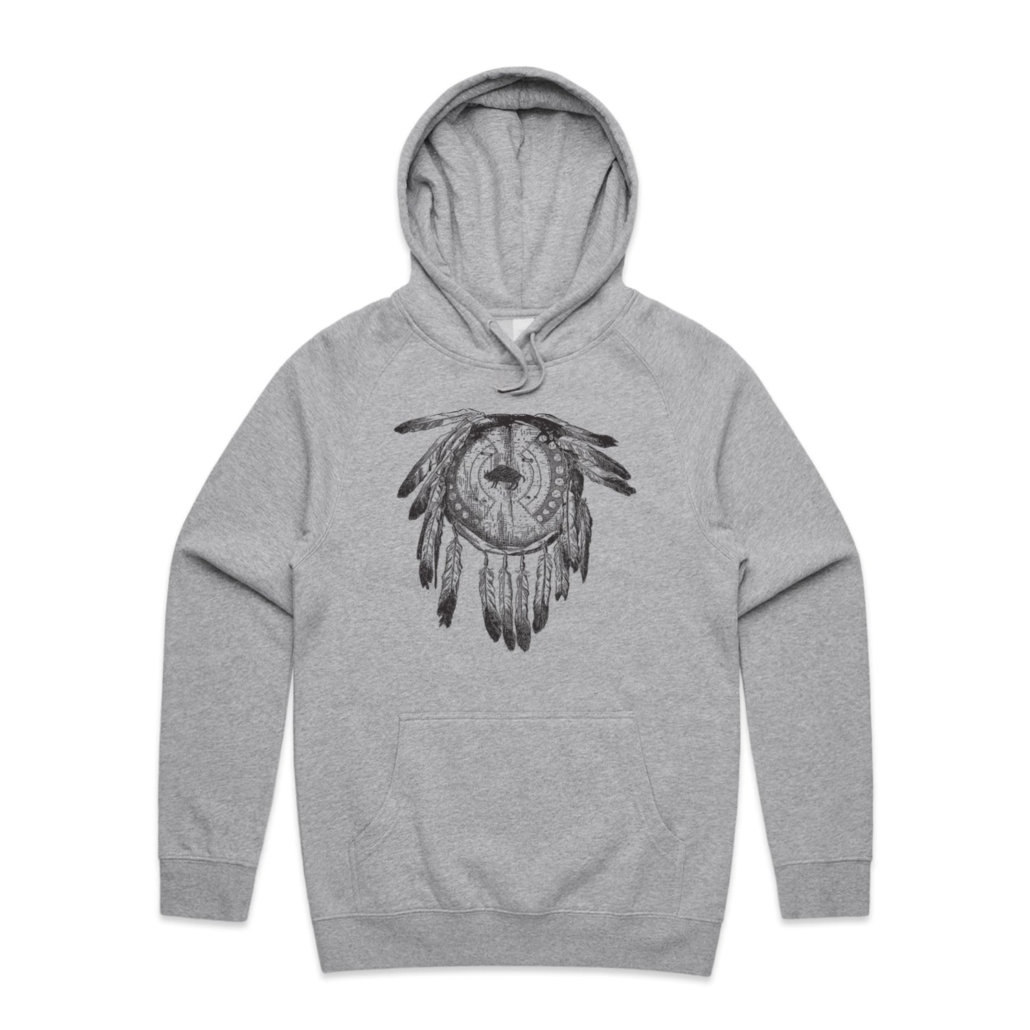 The Hoodies Indian Feather Dress Black – Men's Hooded Sweatshirt is a high-quality men's hooded sweatshirt, printed with black ink on the trusted AS Colour Supply Hood 5101. With a regular fit and mid-weight feel, it's crafted from a premium blend of 80% cotton and 20% polyester anti-pill fleece, making it a durable and comfortable staple for any wardrobe. The pullover design features raglan sleeves, a lined hood with tonal drawcord, ribbed sleeve cuffs, and a roomy kangaroo pocket — all designed to keep you warm while looking effortlessly sharp.