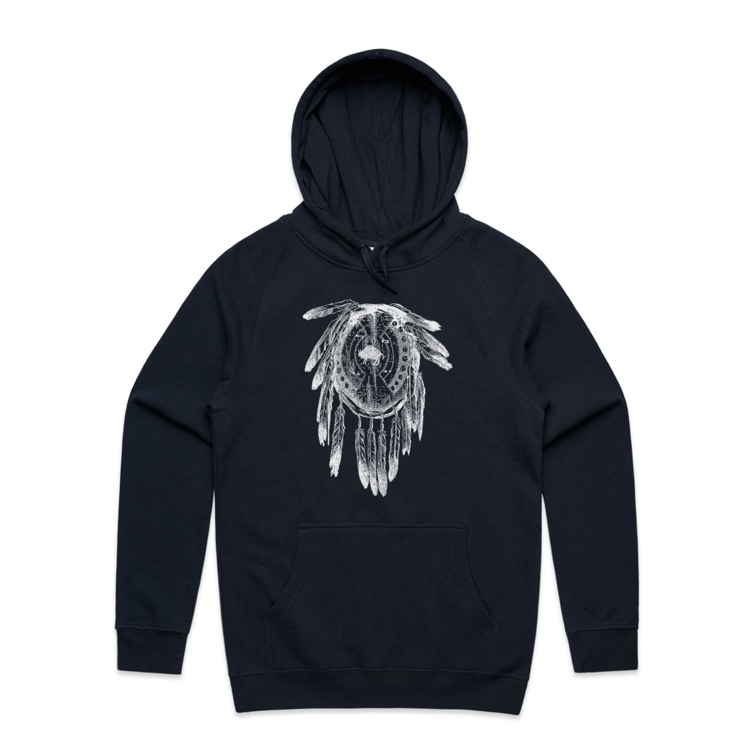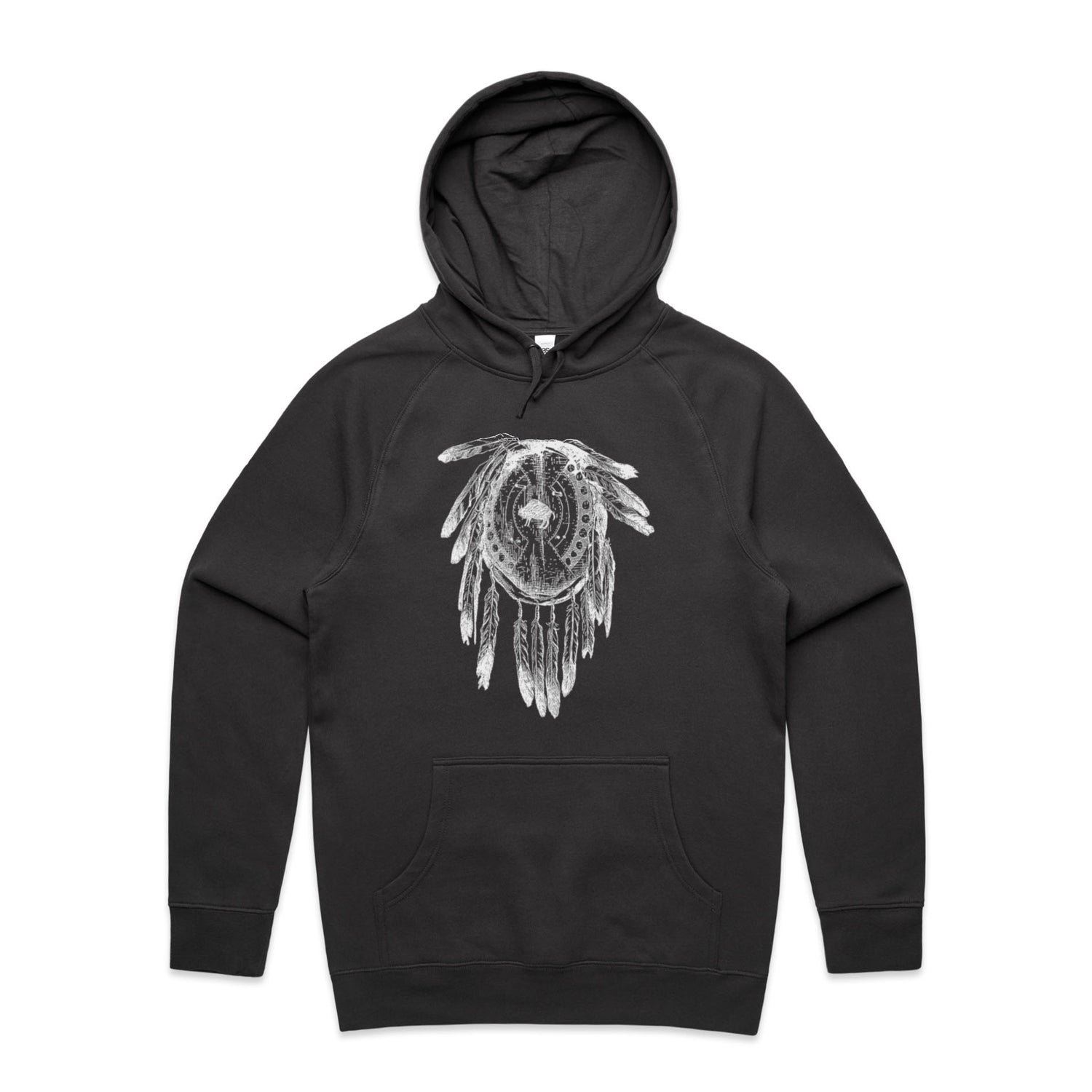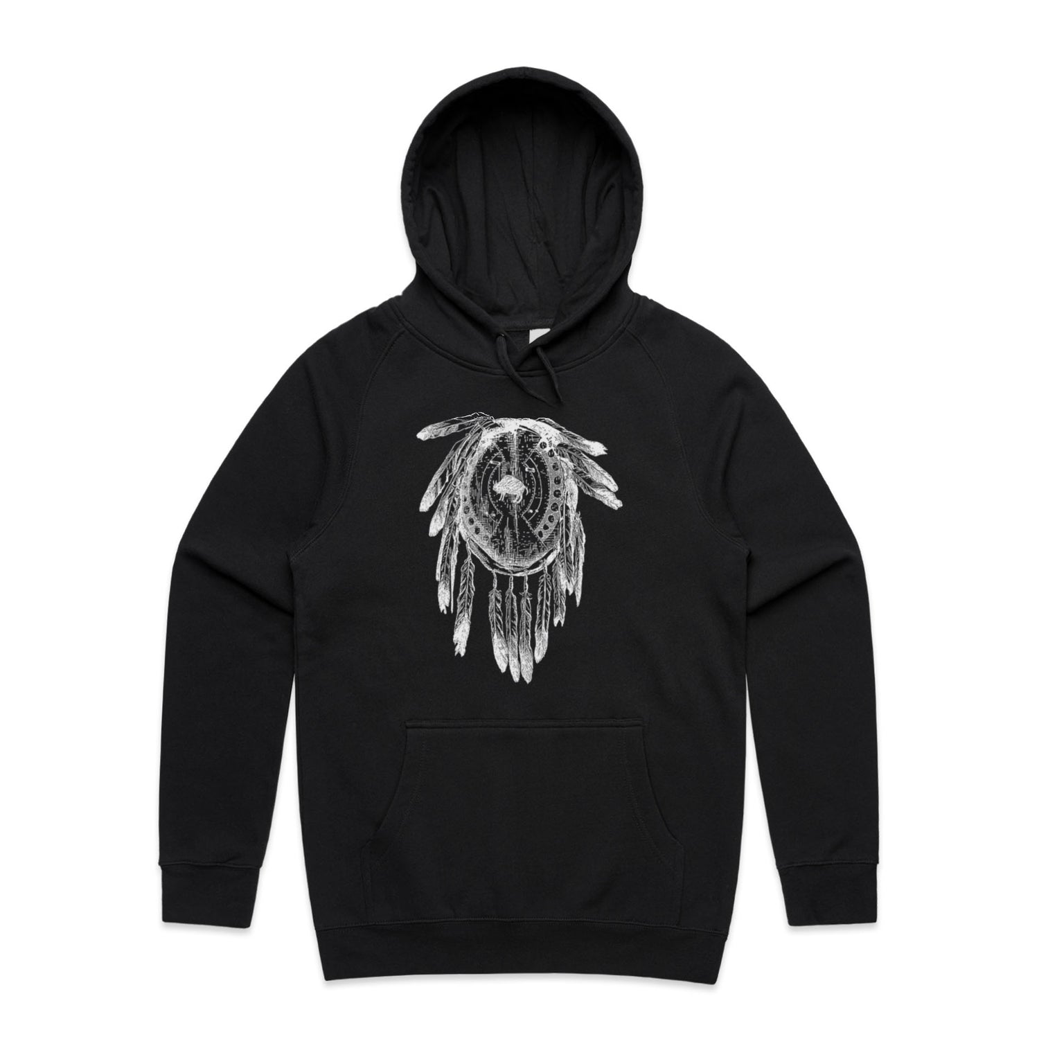 The Hoodies Indian Feather Dress Black – Men's Hooded Sweatshirt is a high-quality men's hooded sweatshirt, printed with white ink on the trusted AS Colour Supply Hood 5101. With a regular fit and mid-weight feel, it's crafted from a premium blend of 80% cotton and 20% polyester anti-pill fleece, making it a durable and comfortable staple for any wardrobe. The pullover design features raglan sleeves, a lined hood with tonal drawcord, ribbed sleeve cuffs, and a roomy kangaroo pocket — all designed to keep you warm while looking effortlessly sharp.