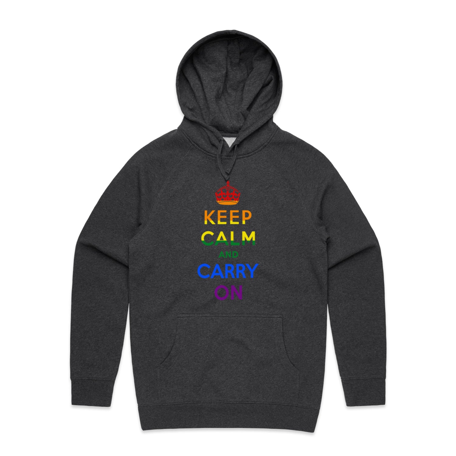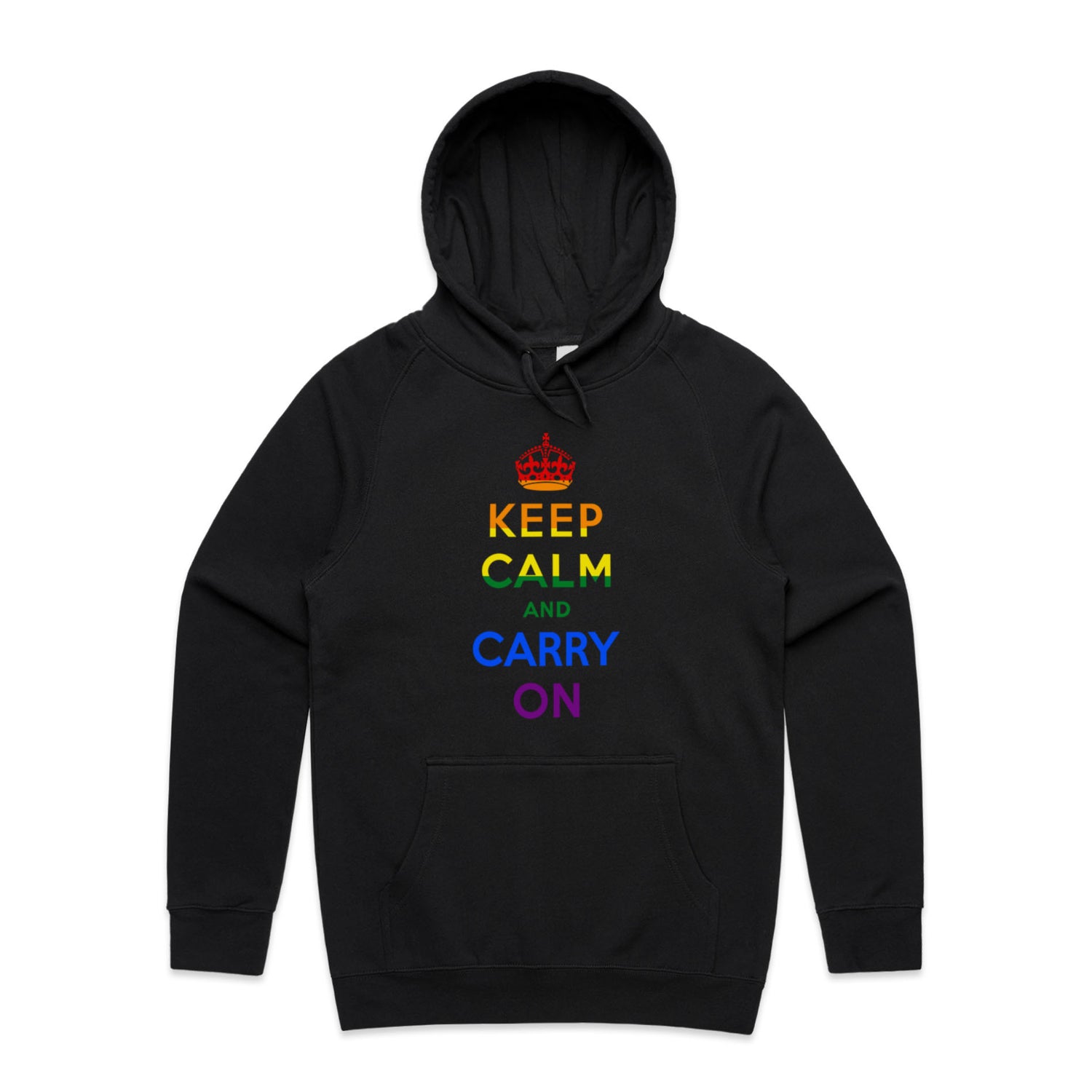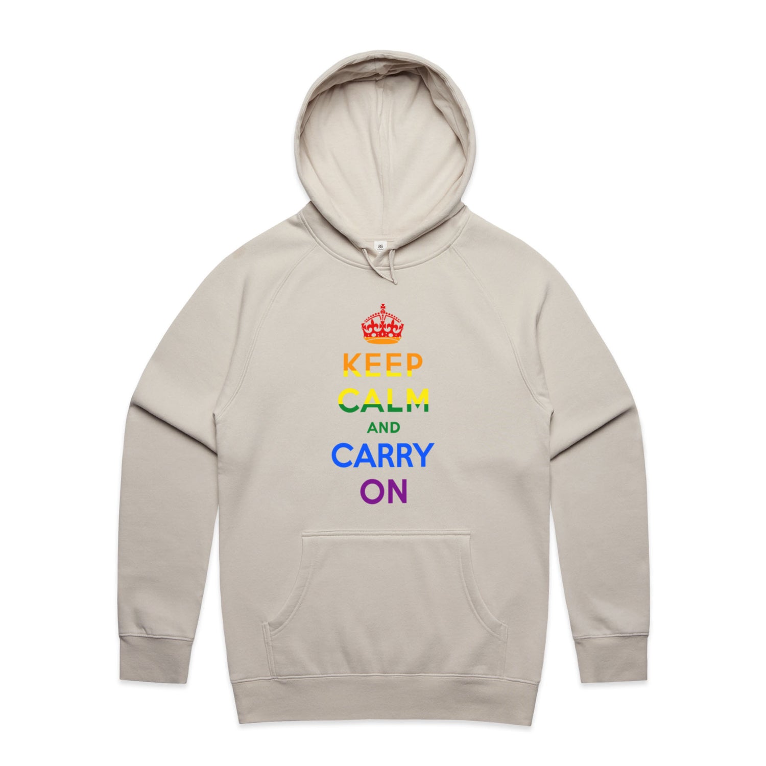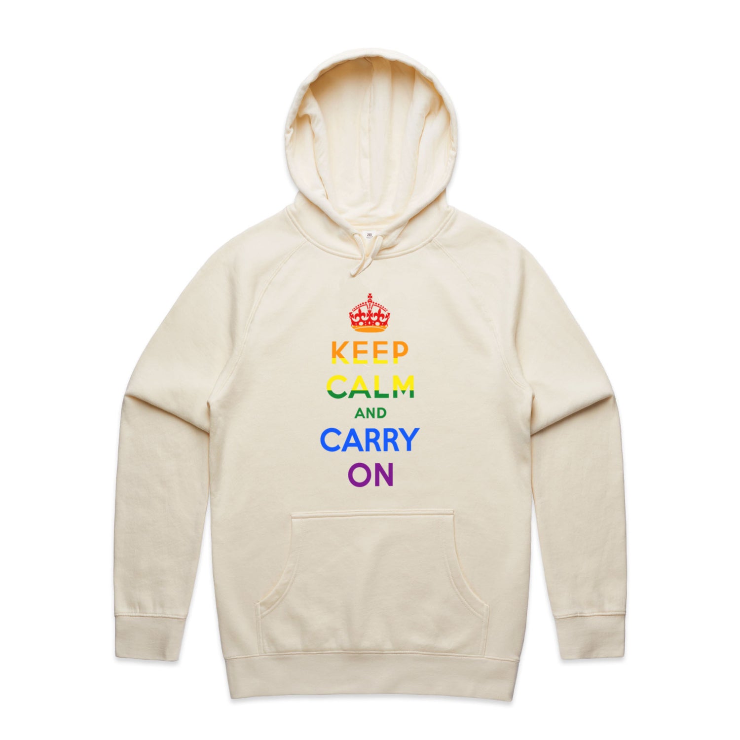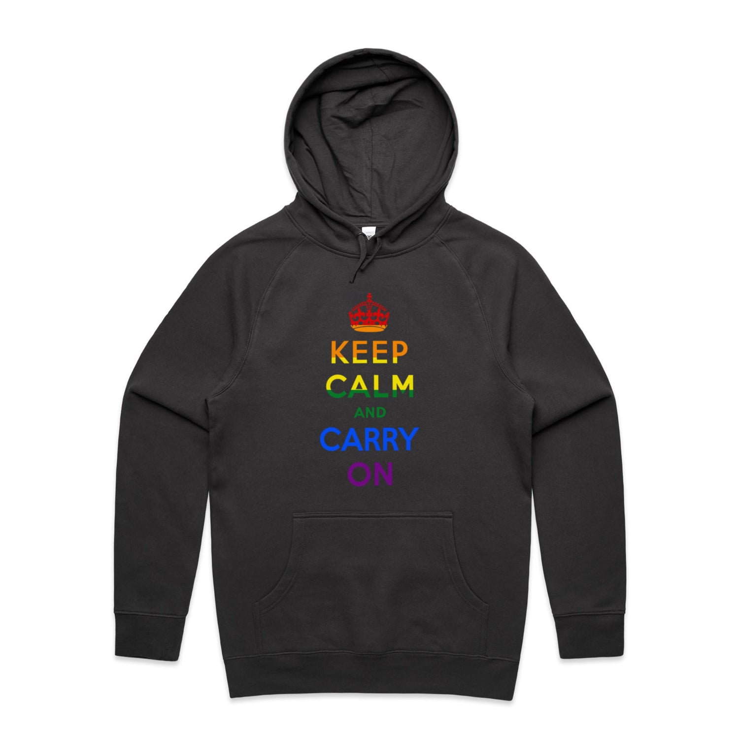 The Hoodies Keep Calm and Carry On Pride – Men's Hooded Sweatshirt is a high-quality men's hooded sweatshirt, printed with multicoloured ink on the trusted AS Colour Supply Hood 5101. With a regular fit and mid-weight feel, it's crafted from a premium blend of 80% cotton and 20% polyester anti-pill fleece, making it a durable and comfortable staple for any wardrobe. The pullover design features raglan sleeves, a lined hood with tonal drawcord, ribbed sleeve cuffs, and a roomy kangaroo pocket — all designed to keep you warm while looking effortlessly sharp.