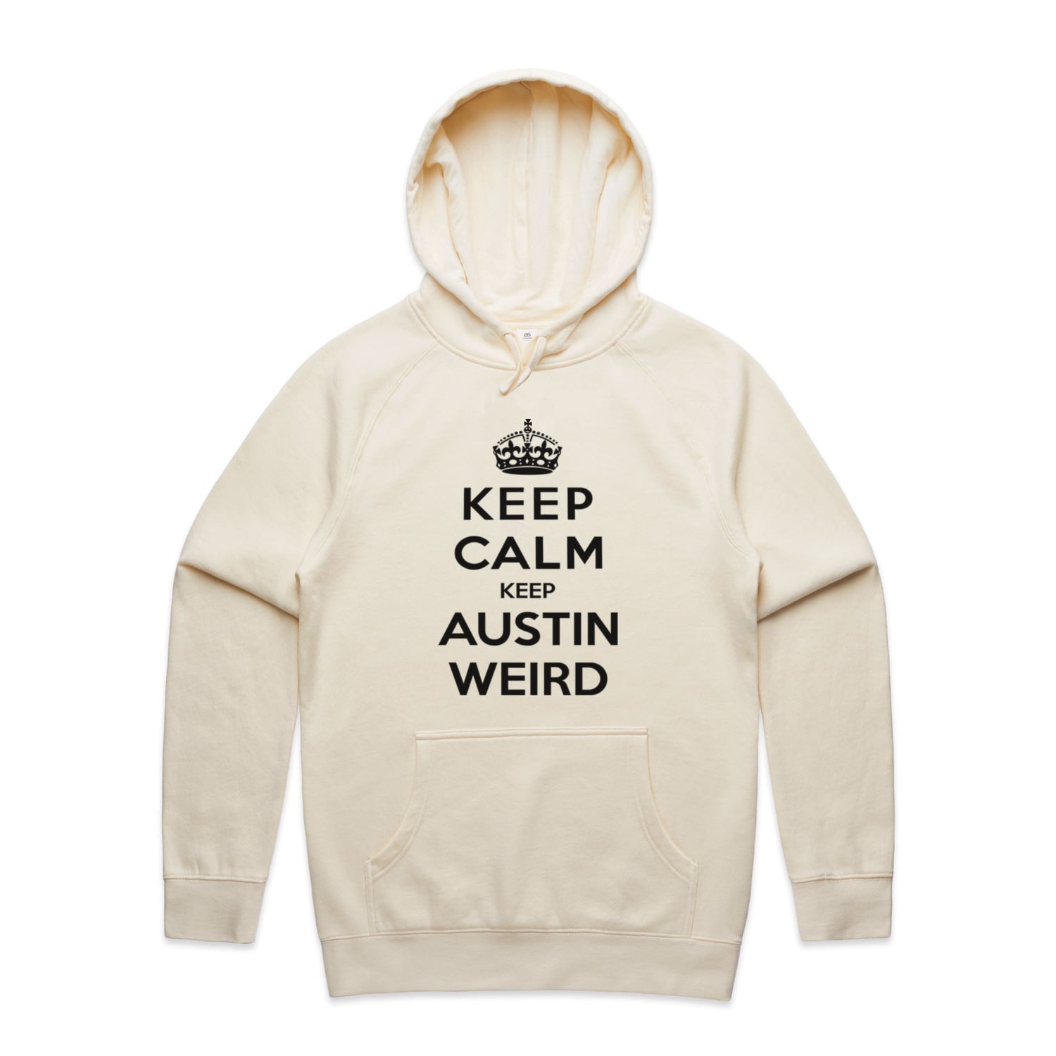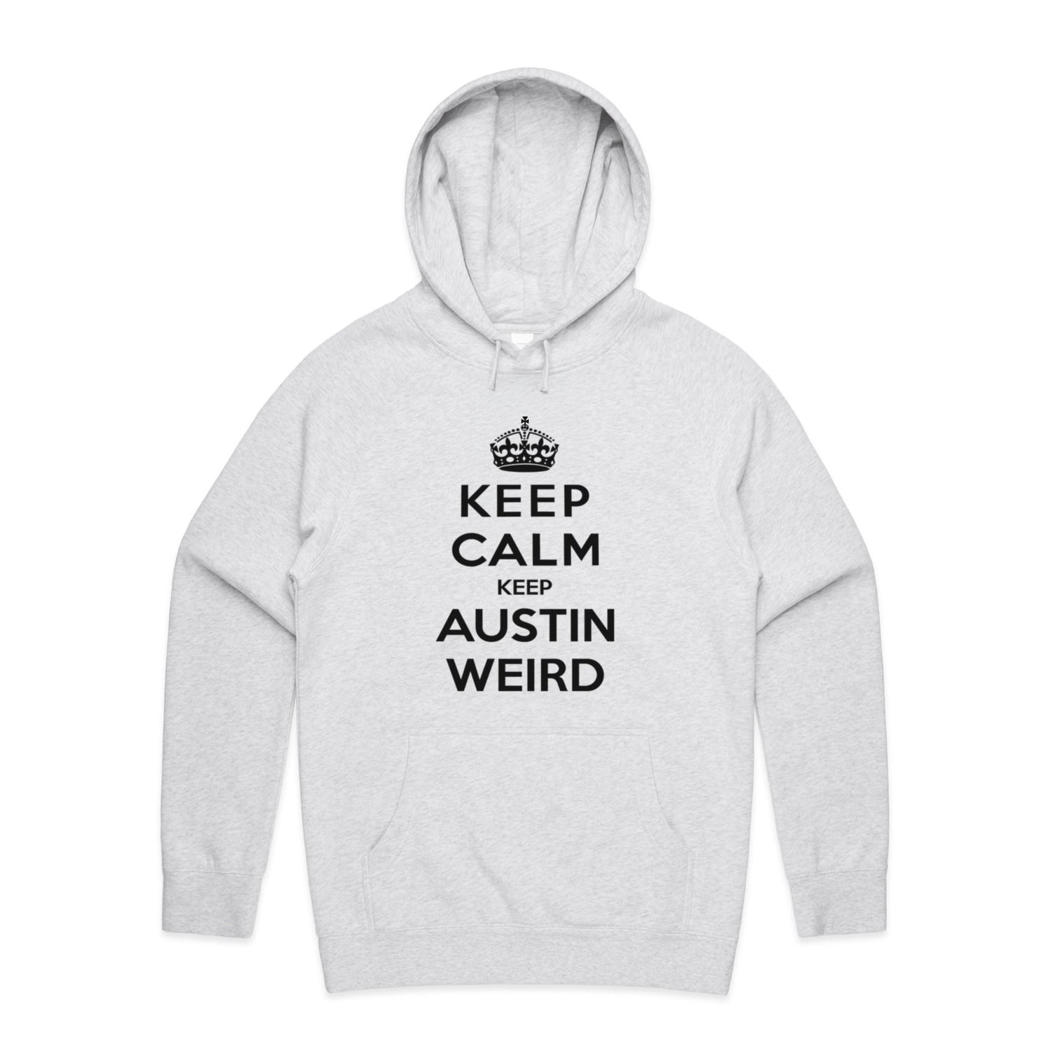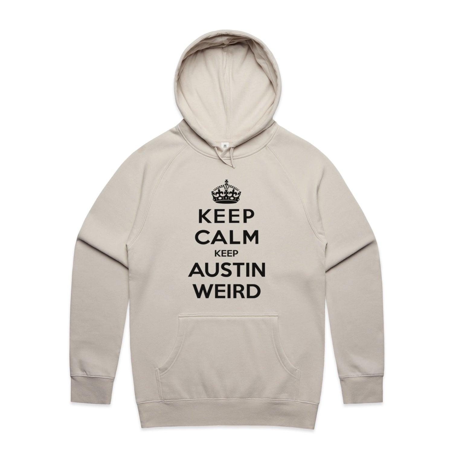 The Hoodies Keep Calm and Keep Austin Weird – Men's Hooded Sweatshirt is a high-quality men's hooded sweatshirt, printed with black ink on the trusted AS Colour Supply Hood 5101. With a regular fit and mid-weight feel, it's crafted from a premium blend of 80% cotton and 20% polyester anti-pill fleece, making it a durable and comfortable staple for any wardrobe. The pullover design features raglan sleeves, a lined hood with tonal drawcord, ribbed sleeve cuffs, and a roomy kangaroo pocket — all designed to keep you warm while looking effortlessly sharp.