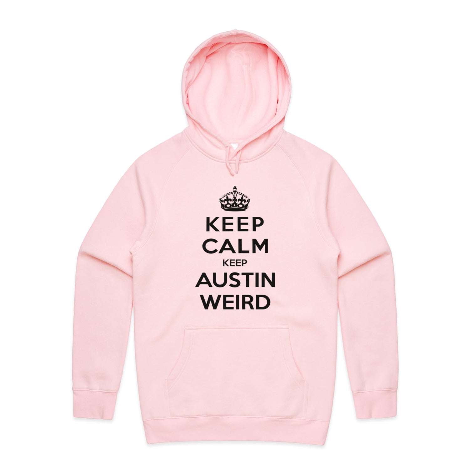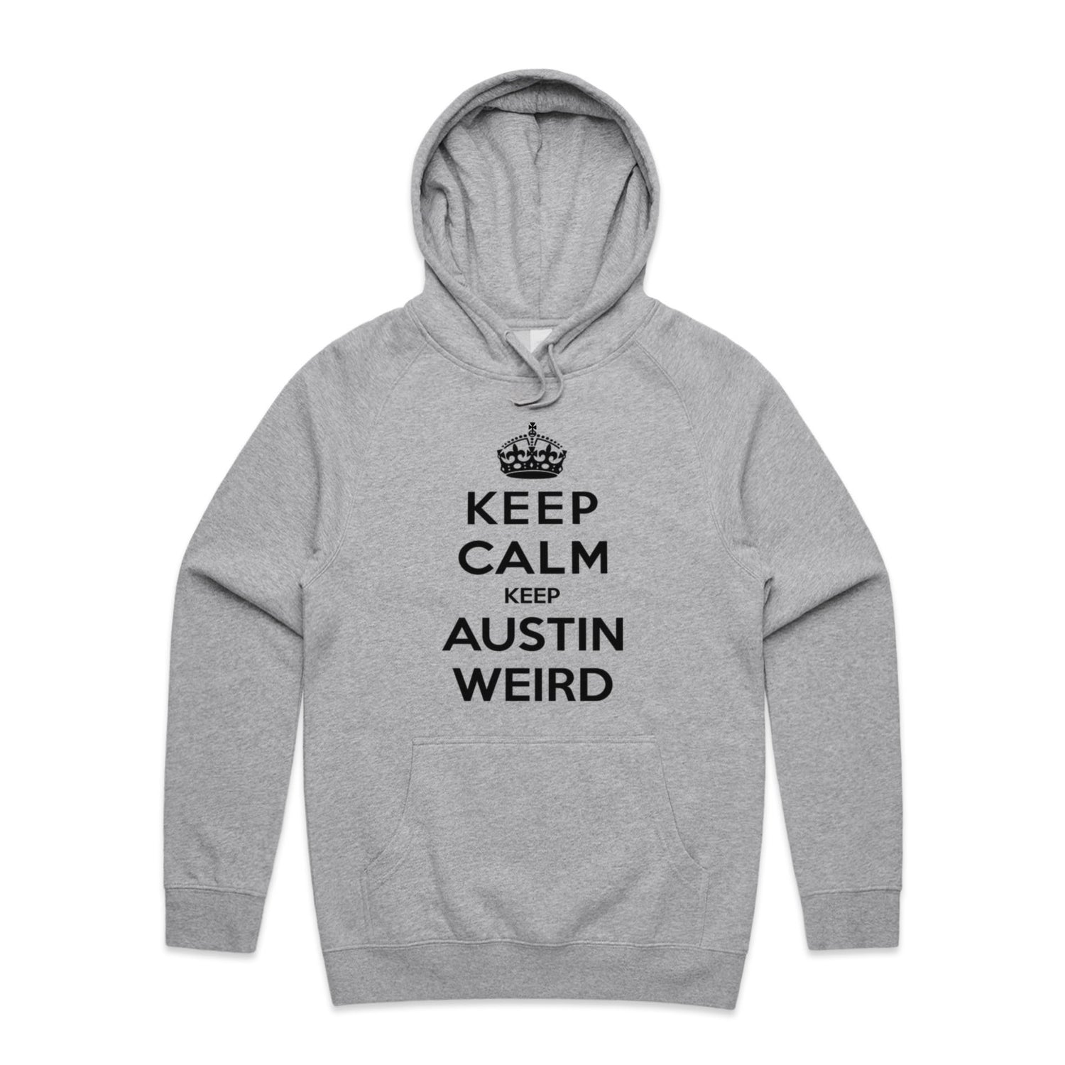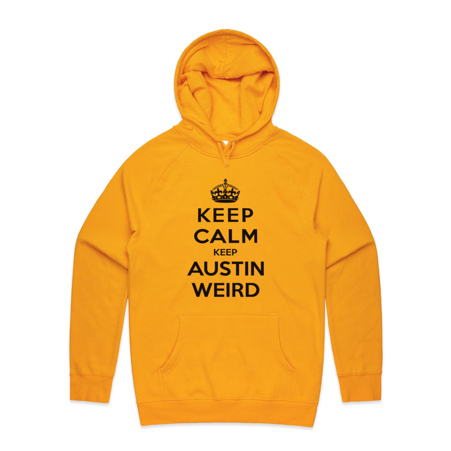 The Hoodies Keep Calm and Keep Austin Weird – Men's Hooded Sweatshirt is a high-quality men's hooded sweatshirt, printed with black ink on the trusted AS Colour Supply Hood 5101. With a regular fit and mid-weight feel, it's crafted from a premium blend of 80% cotton and 20% polyester anti-pill fleece, making it a durable and comfortable staple for any wardrobe. The pullover design features raglan sleeves, a lined hood with tonal drawcord, ribbed sleeve cuffs, and a roomy kangaroo pocket — all designed to keep you warm while looking effortlessly sharp.
