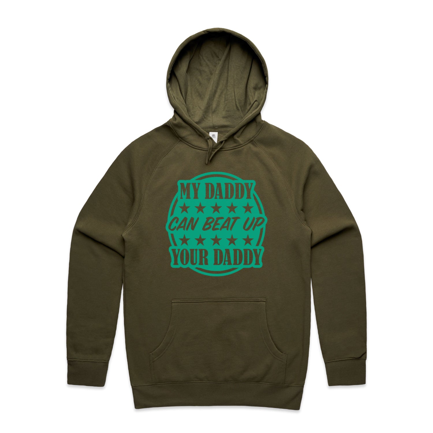 The Hoodies Kid Daddy Beats – Men's Hooded Sweatshirt is a high-quality men's hooded sweatshirt, printed with green ink on the trusted AS Colour Supply Hood 5101. With a regular fit and mid-weight feel, it's crafted from a premium blend of 80% cotton and 20% polyester anti-pill fleece, making it a durable and comfortable staple for any wardrobe. The pullover design features raglan sleeves, a lined hood with tonal drawcord, ribbed sleeve cuffs, and a roomy kangaroo pocket — all designed to keep you warm while looking effortlessly sharp.