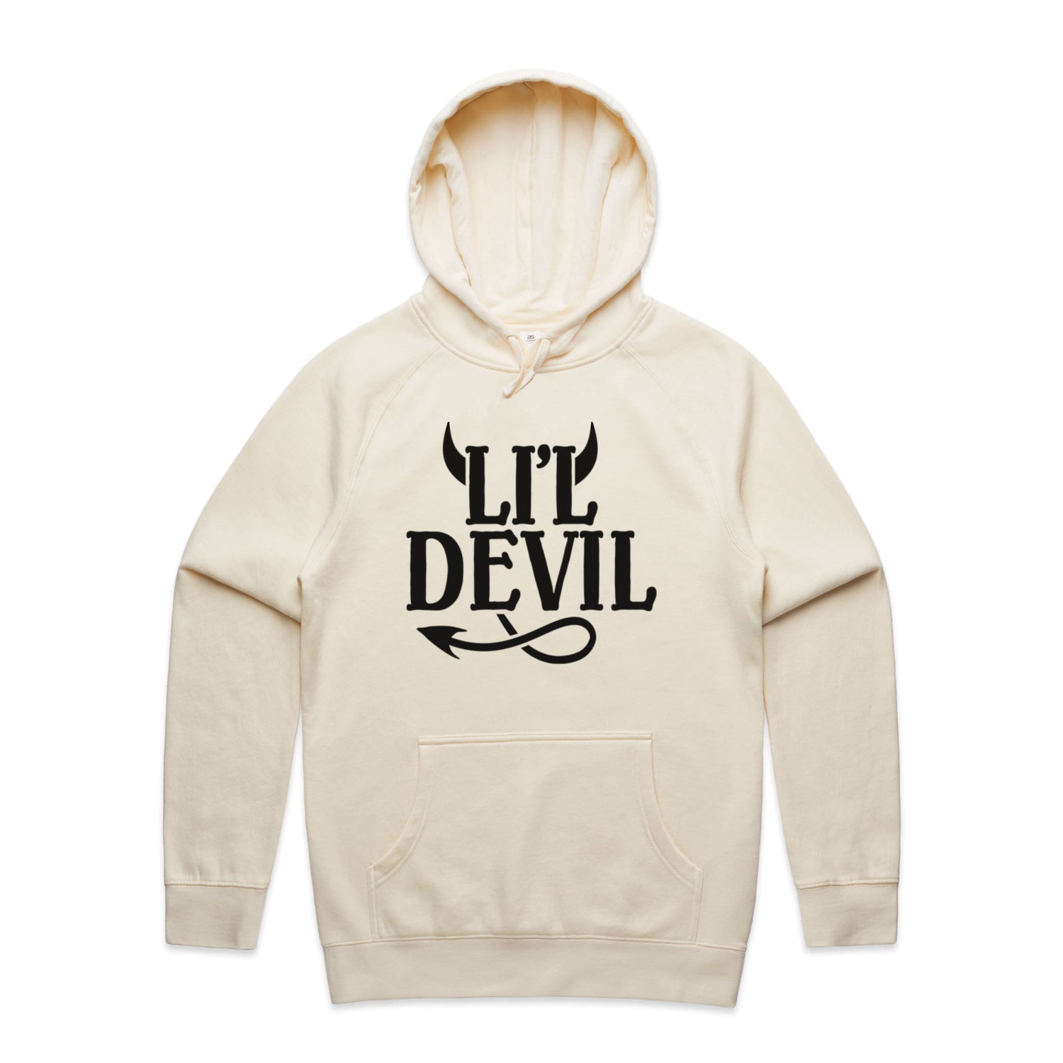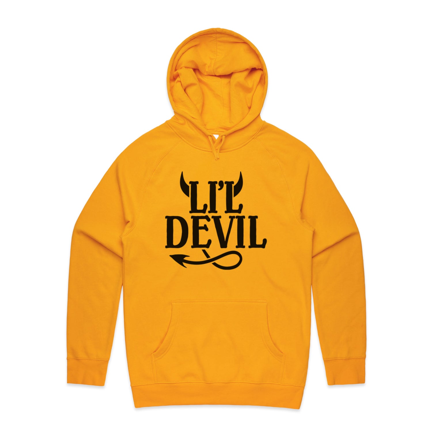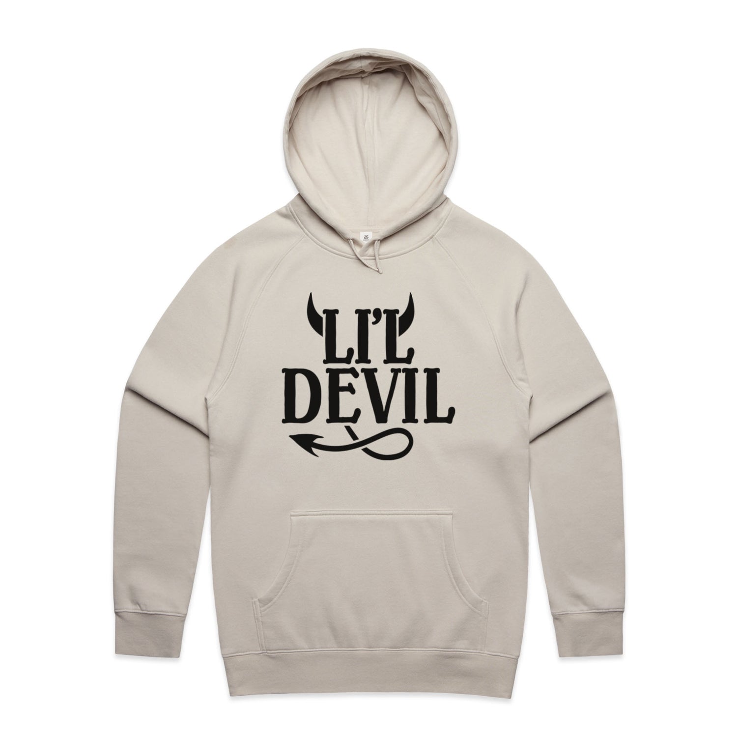 The Hoodies Kid Devil – Men's Hooded Sweatshirt is a high-quality men's hooded sweatshirt, printed with black ink on the trusted AS Colour Supply Hood 5101. With a regular fit and mid-weight feel, it's crafted from a premium blend of 80% cotton and 20% polyester anti-pill fleece, making it a durable and comfortable staple for any wardrobe. The pullover design features raglan sleeves, a lined hood with tonal drawcord, ribbed sleeve cuffs, and a roomy kangaroo pocket — all designed to keep you warm while looking effortlessly sharp.
