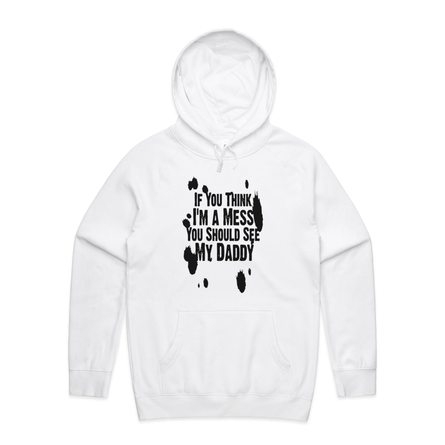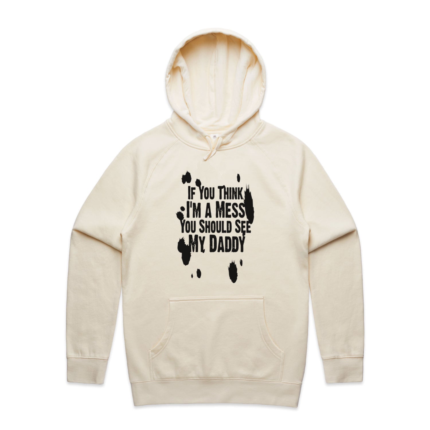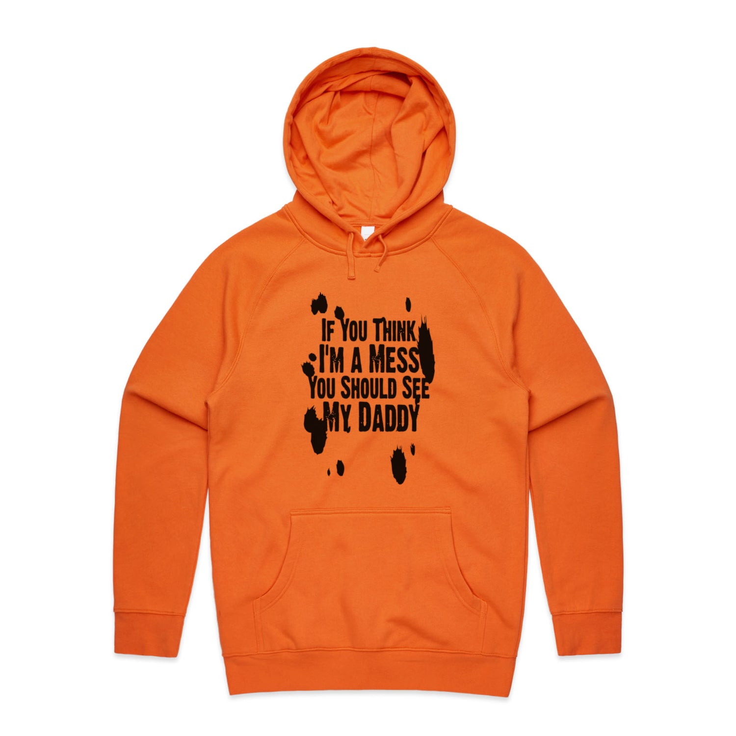 The Hoodies Kid, I'm a Mess – Men's Hooded Sweatshirt is a high-quality men's hooded sweatshirt, printed with black ink on the trusted AS Colour Supply Hood 5101. With a regular fit and mid-weight feel, it's crafted from a premium blend of 80% cotton and 20% polyester anti-pill fleece, making it a durable and comfortable staple for any wardrobe. The pullover design features raglan sleeves, a lined hood with tonal drawcord, ribbed sleeve cuffs, and a roomy kangaroo pocket — all designed to keep you warm while looking effortlessly sharp.