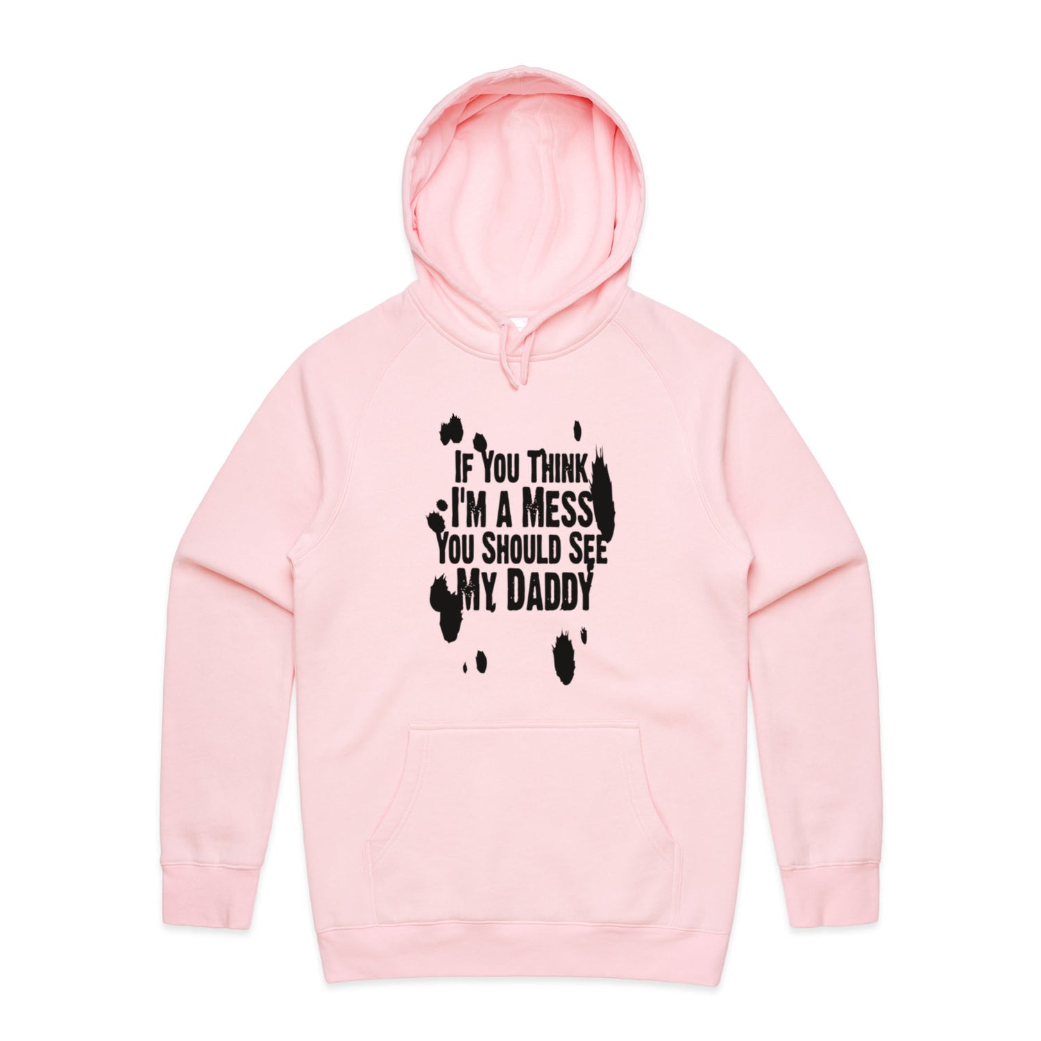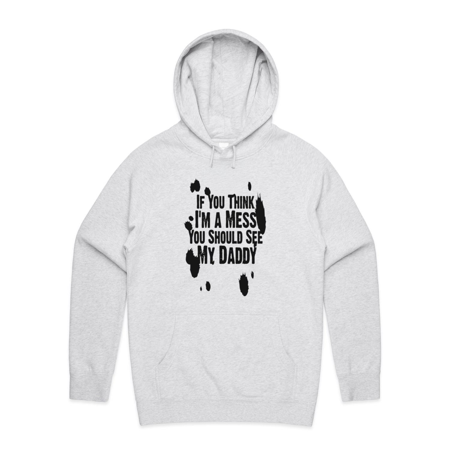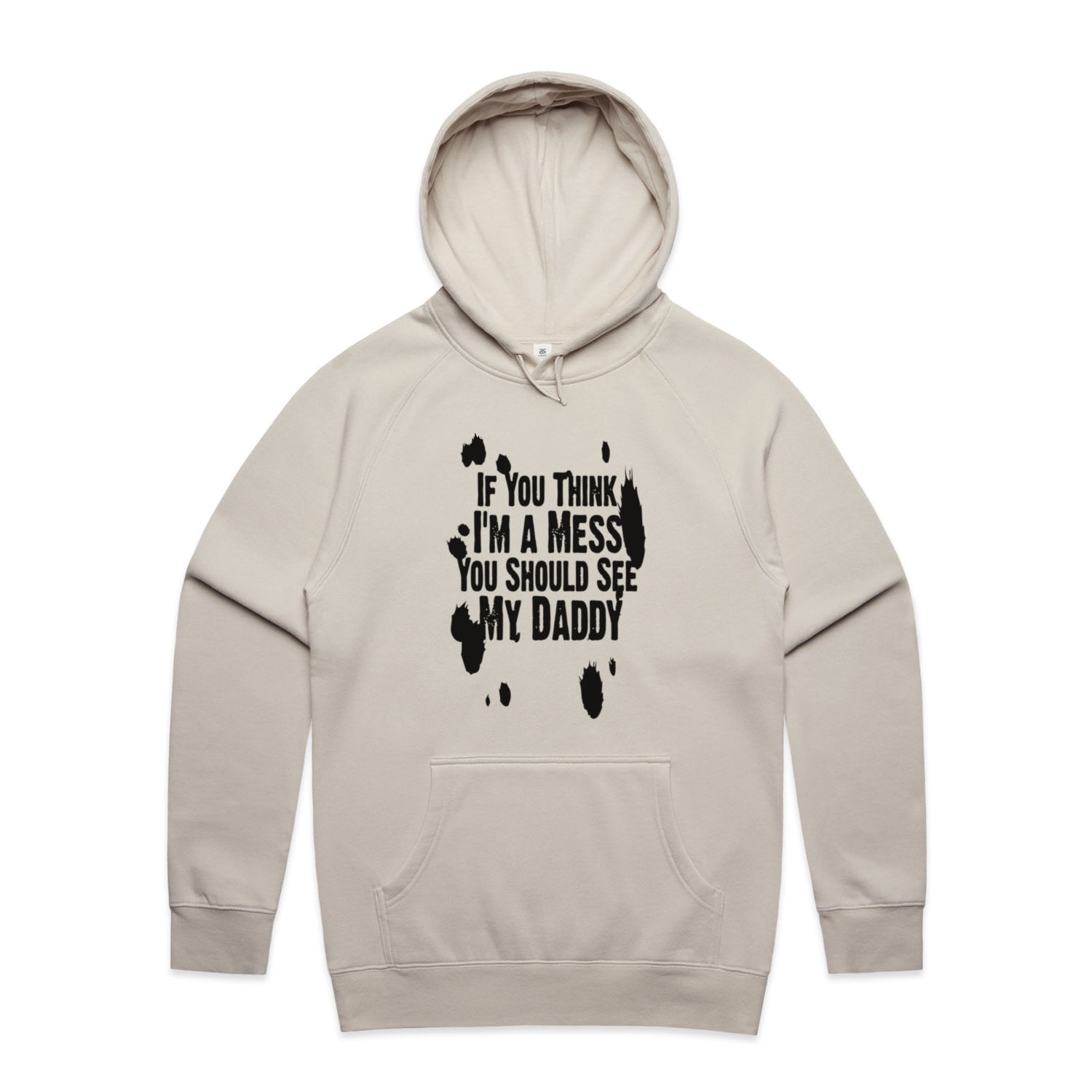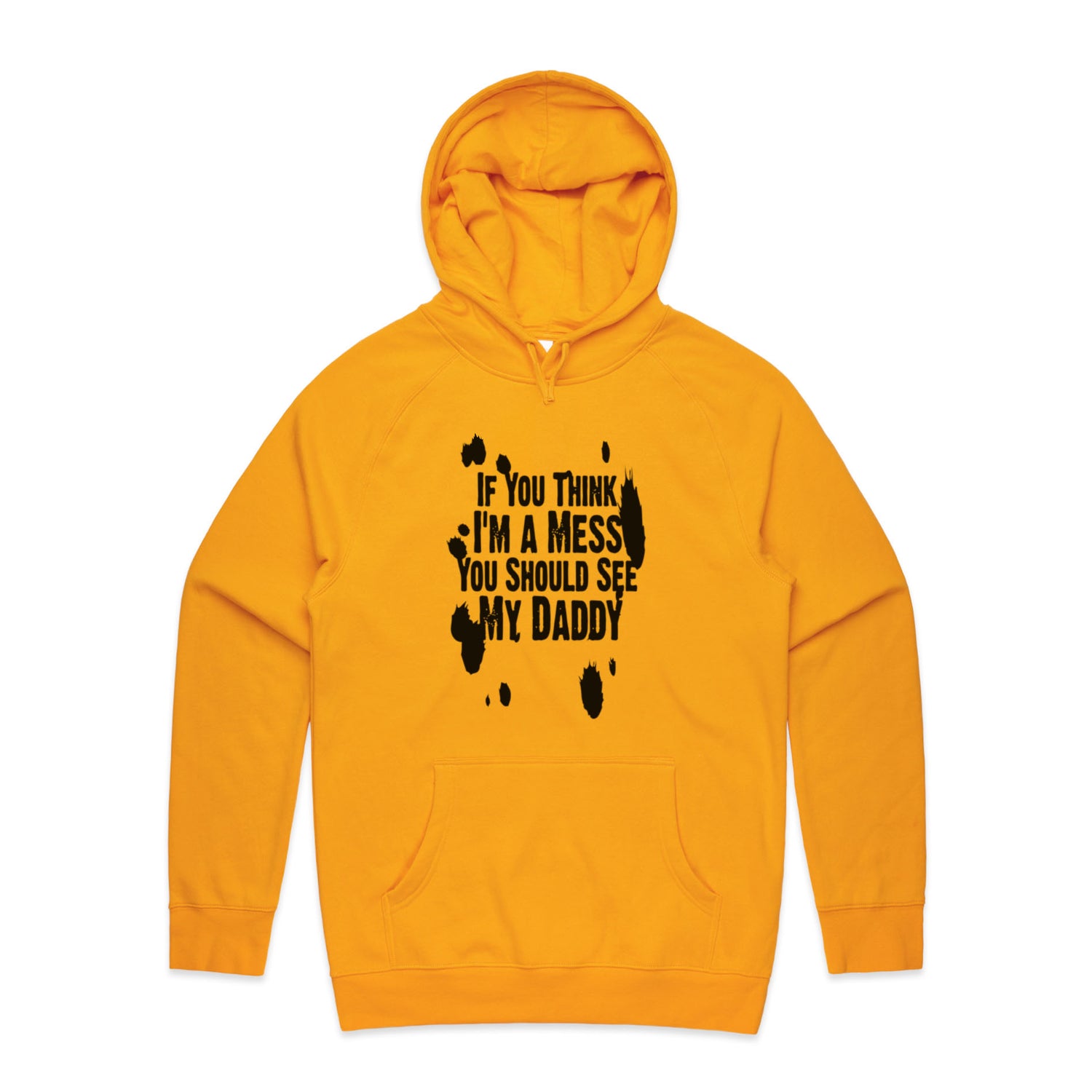 The Hoodies Kid, I'm a Mess – Men's Hooded Sweatshirt is a high-quality men's hooded sweatshirt, printed with black ink on the trusted AS Colour Supply Hood 5101. With a regular fit and mid-weight feel, it's crafted from a premium blend of 80% cotton and 20% polyester anti-pill fleece, making it a durable and comfortable staple for any wardrobe. The pullover design features raglan sleeves, a lined hood with tonal drawcord, ribbed sleeve cuffs, and a roomy kangaroo pocket — all designed to keep you warm while looking effortlessly sharp.