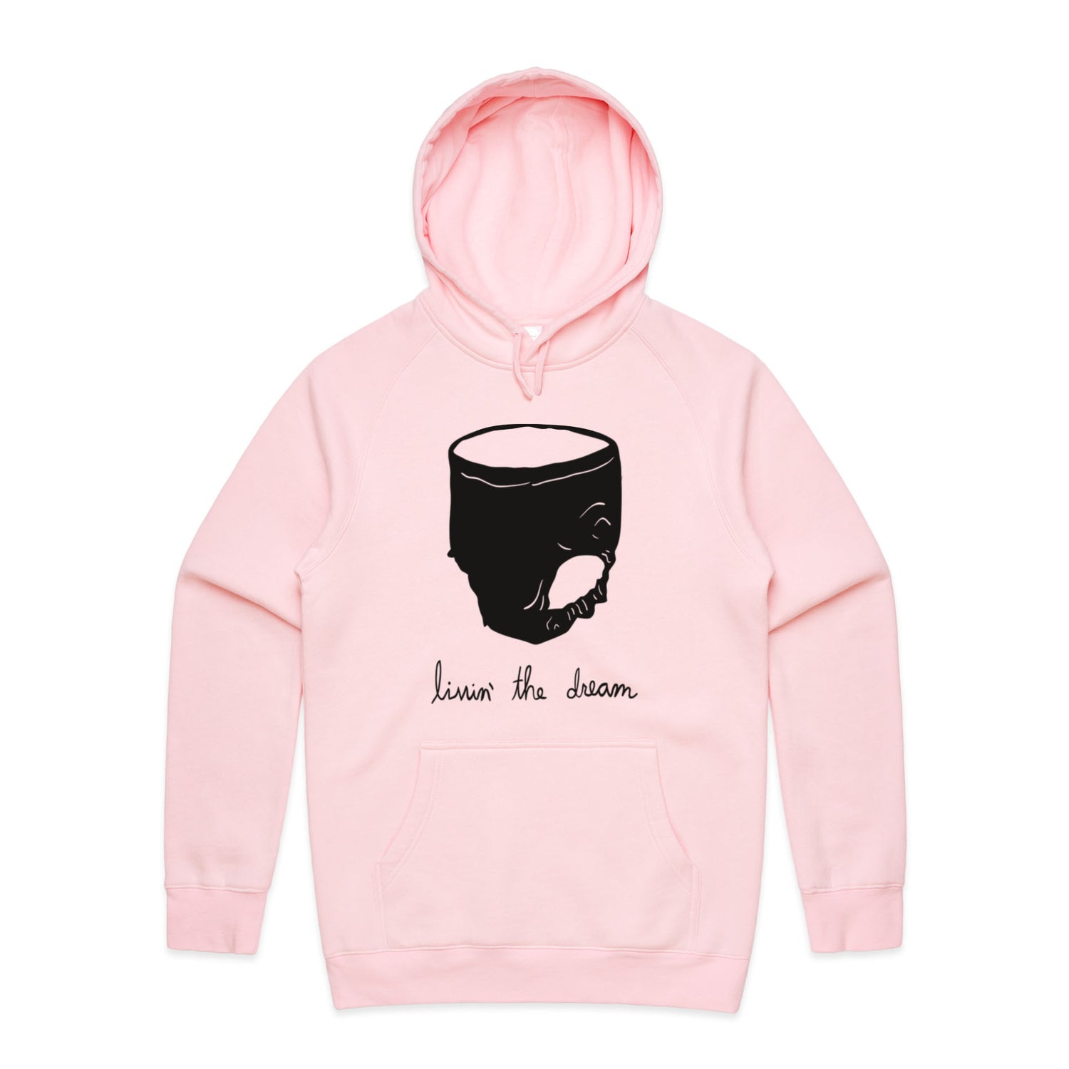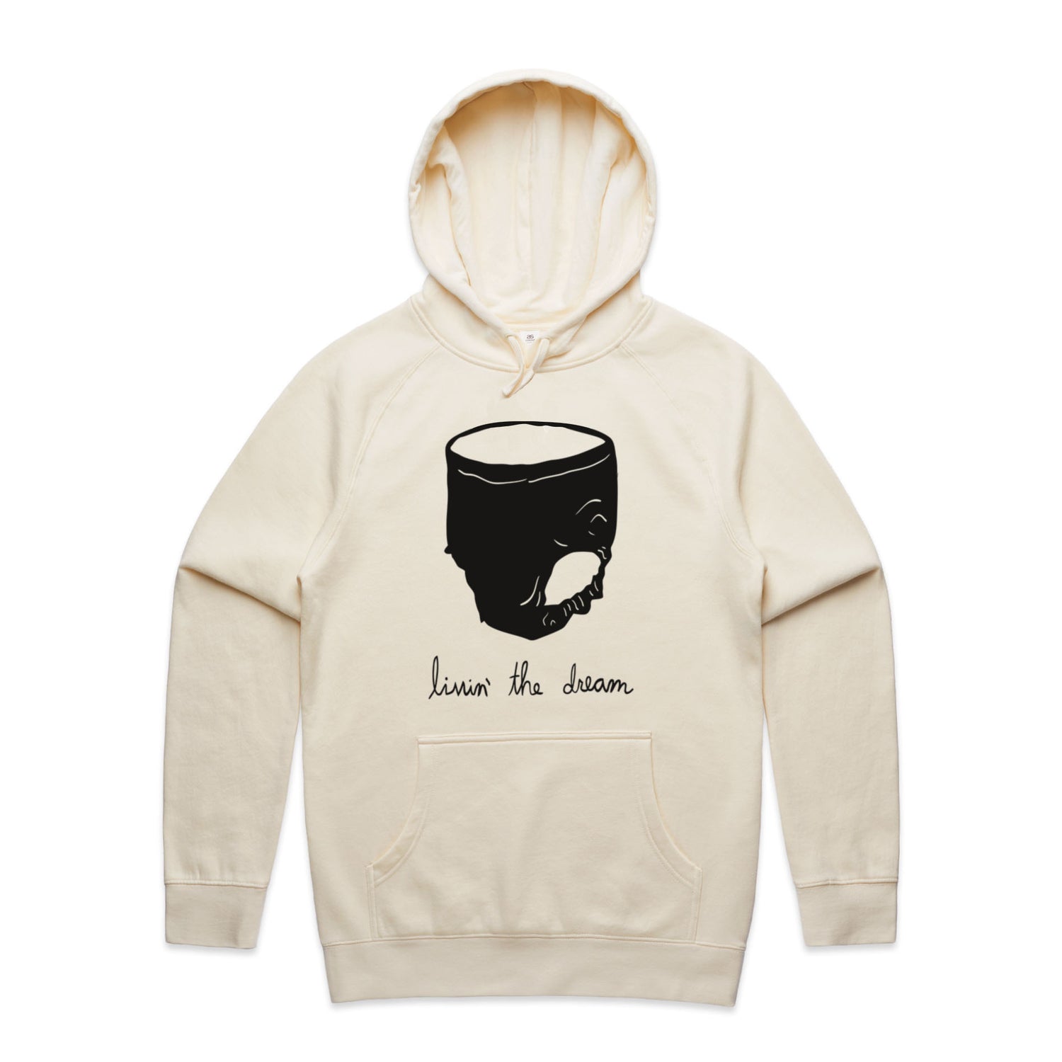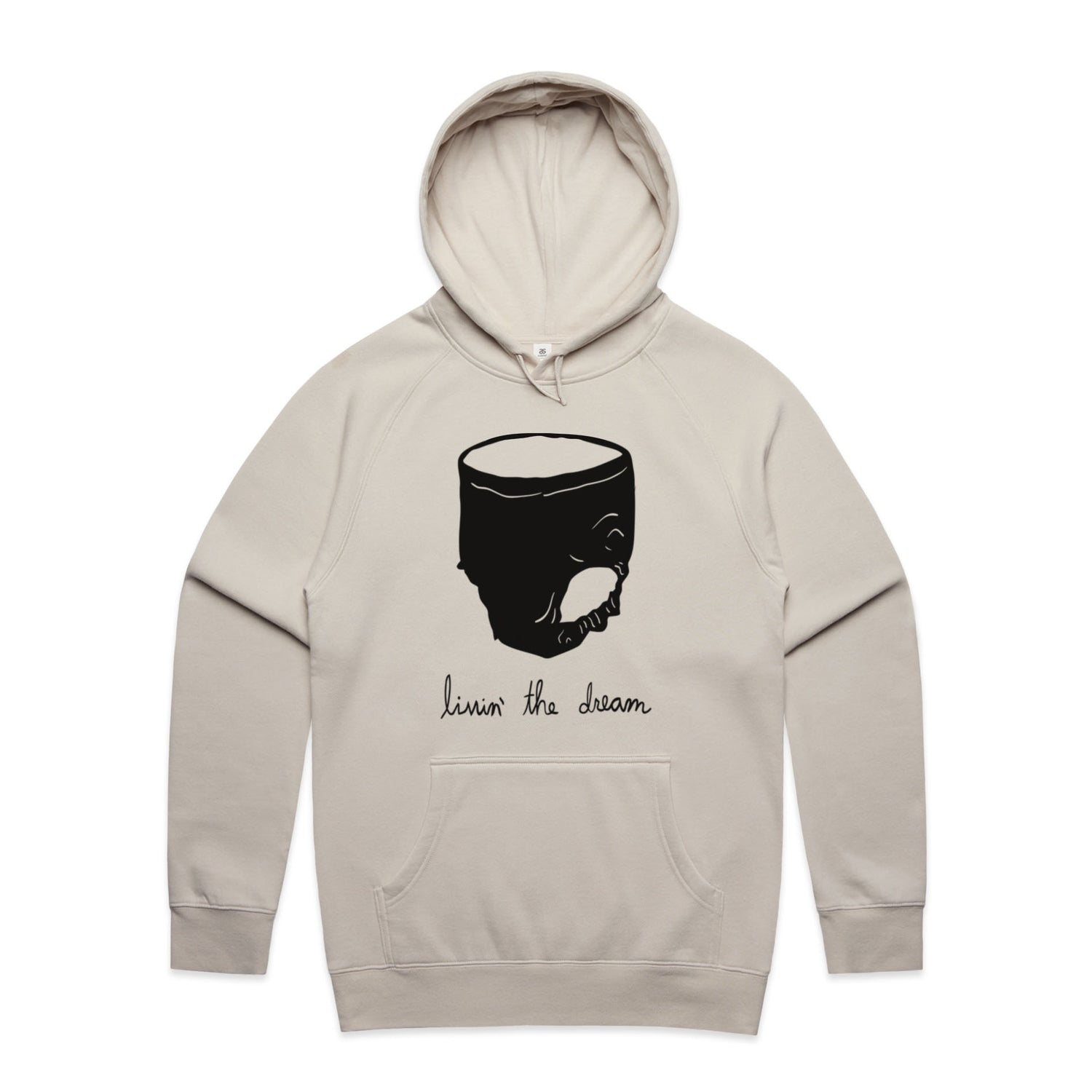 The Hoodies Livin' the Dream – Men's Hooded Sweatshirt is a high-quality men's hooded sweatshirt, printed with black ink on the trusted AS Colour Supply Hood 5101. With a regular fit and mid-weight feel, it's crafted from a premium blend of 80% cotton and 20% polyester anti-pill fleece, making it a durable and comfortable staple for any wardrobe. The pullover design features raglan sleeves, a lined hood with tonal drawcord, ribbed sleeve cuffs, and a roomy kangaroo pocket — all designed to keep you warm while looking effortlessly sharp.