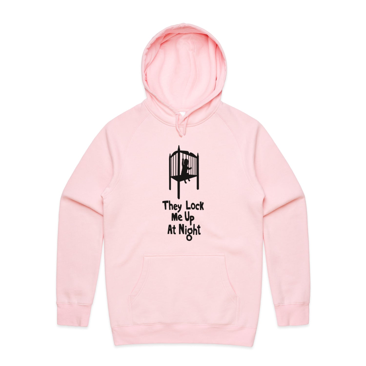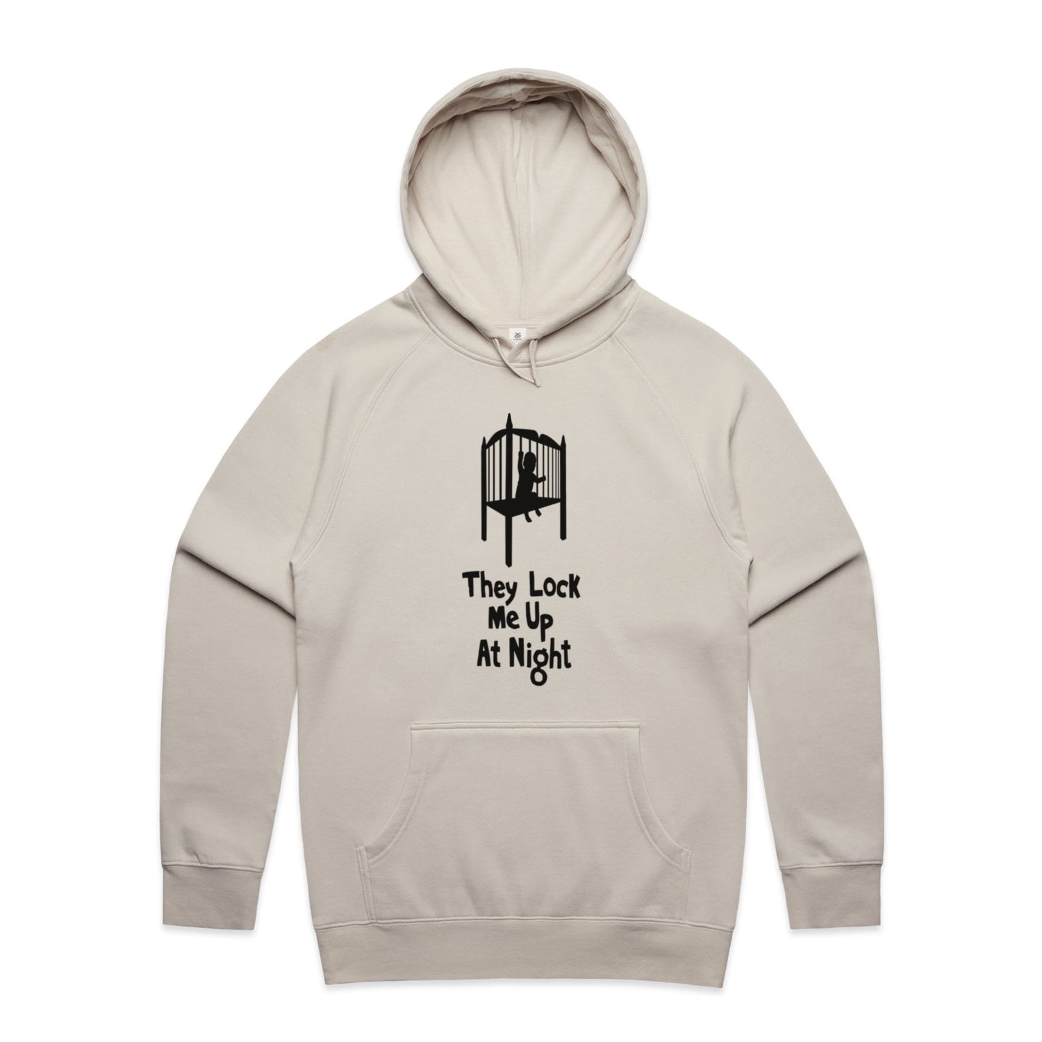 The Hoodies Lock Me Up – Men's Hooded Sweatshirt is a high-quality men's hooded sweatshirt, printed with black ink on the trusted AS Colour Supply Hood 5101. With a regular fit and mid-weight feel, it's crafted from a premium blend of 80% cotton and 20% polyester anti-pill fleece, making it a durable and comfortable staple for any wardrobe. The pullover design features raglan sleeves, a lined hood with tonal drawcord, ribbed sleeve cuffs, and a roomy kangaroo pocket — all designed to keep you warm while looking effortlessly sharp.