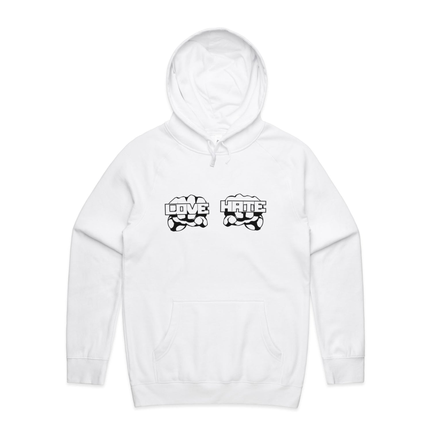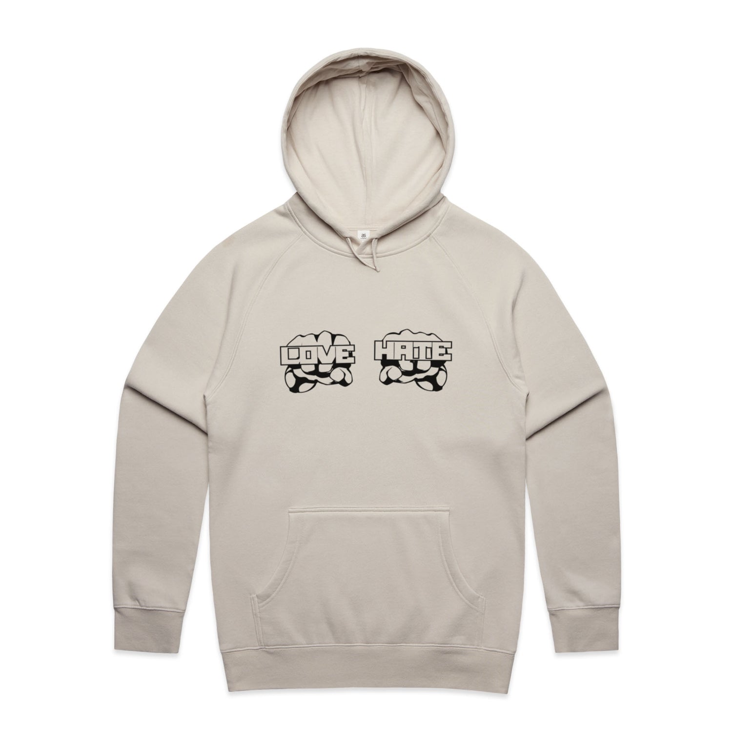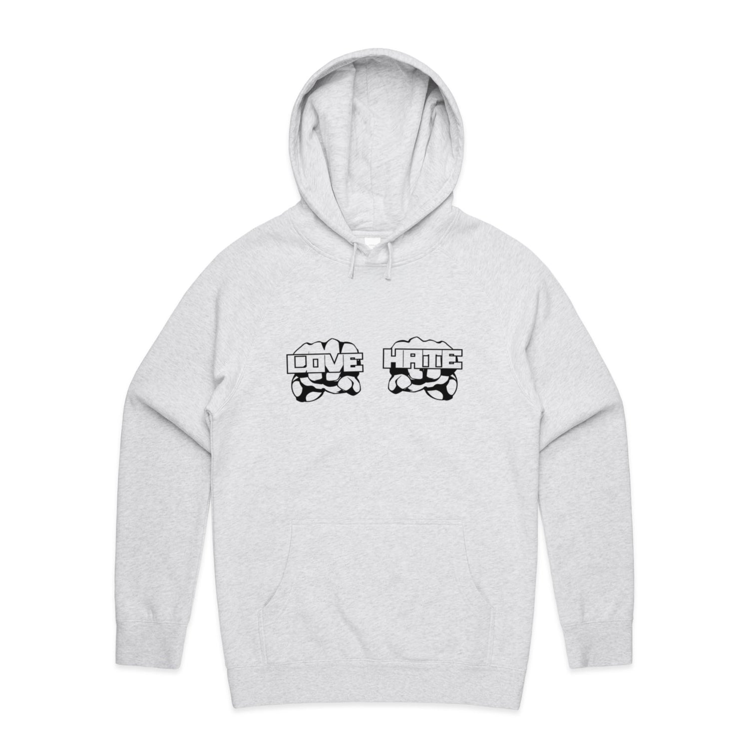 The Hoodies Love Hate – Men's Hooded Sweatshirt is a high-quality men's hooded sweatshirt, printed with black ink on the trusted AS Colour Supply Hood 5101. With a regular fit and mid-weight feel, it's crafted from a premium blend of 80% cotton and 20% polyester anti-pill fleece, making it a durable and comfortable staple for any wardrobe. The pullover design features raglan sleeves, a lined hood with tonal drawcord, ribbed sleeve cuffs, and a roomy kangaroo pocket — all designed to keep you warm while looking effortlessly sharp.