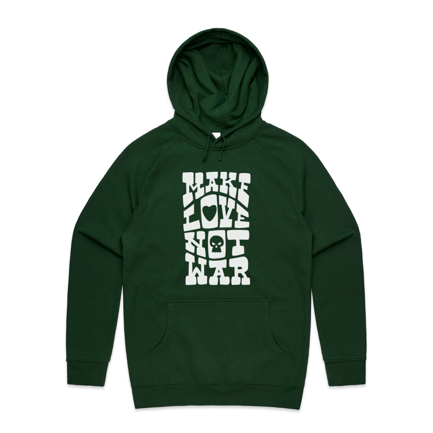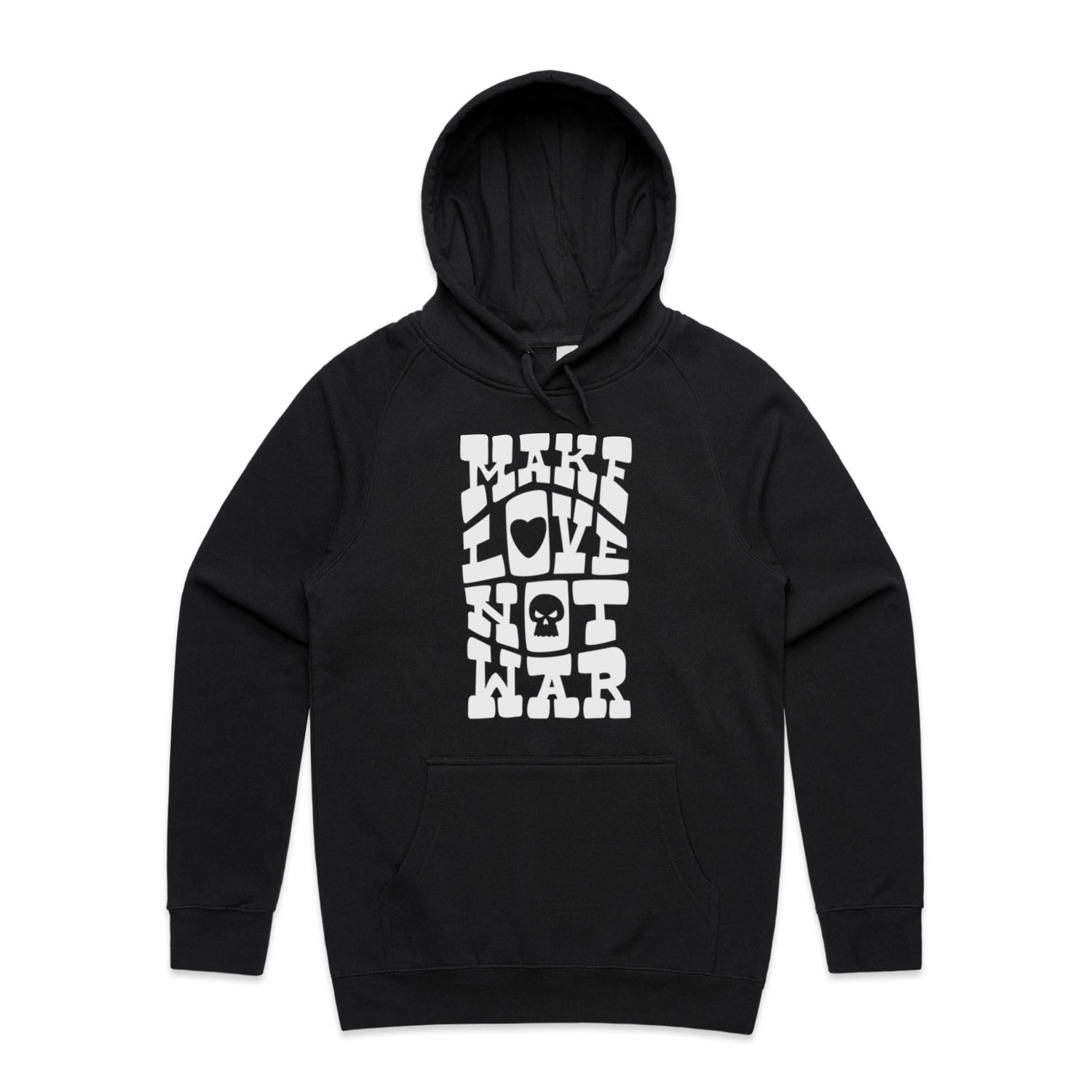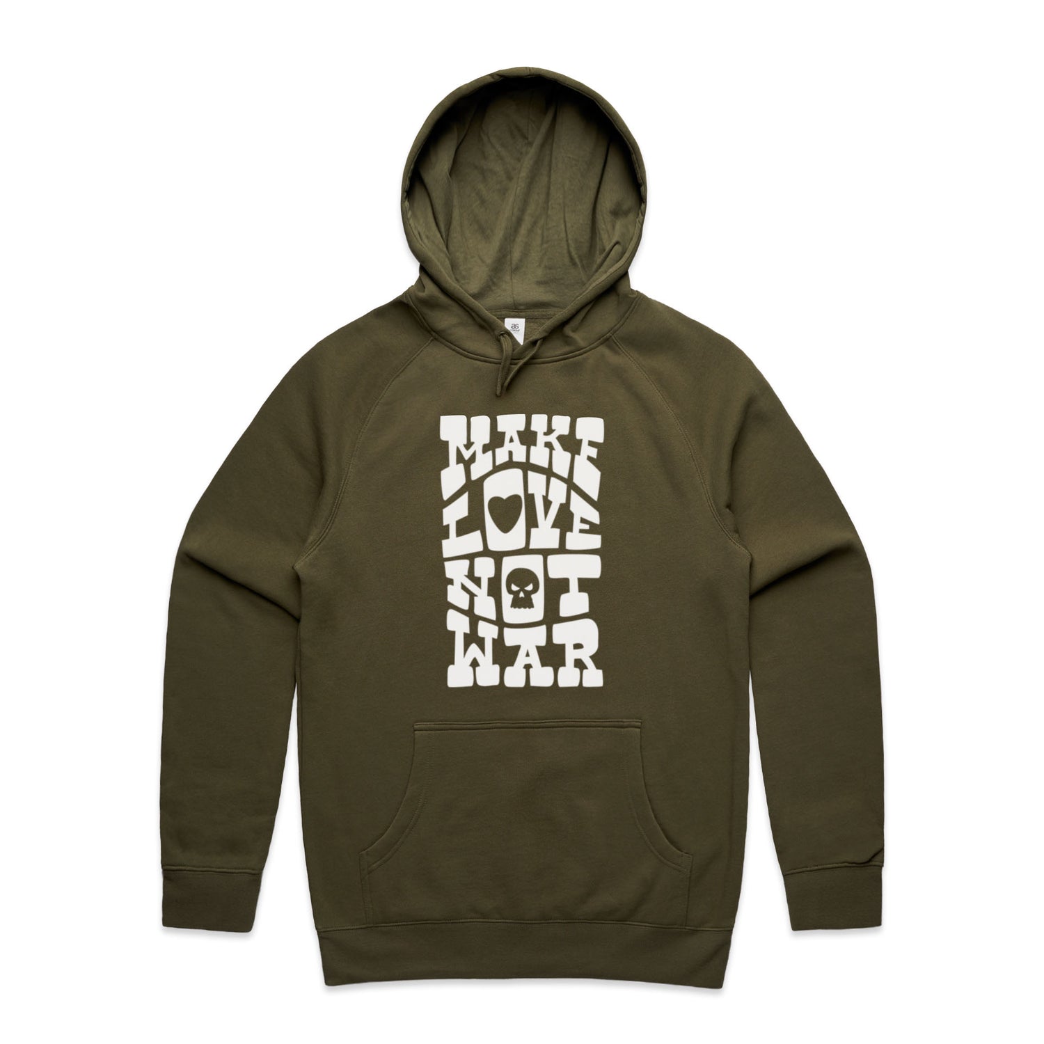 The Hoodies Make Love Not War – Men's Hooded Sweatshirt is a high-quality men's hooded sweatshirt, printed with white ink on the trusted AS Colour Supply Hood 5101. With a regular fit and mid-weight feel, it's crafted from a premium blend of 80% cotton and 20% polyester anti-pill fleece, making it a durable and comfortable staple for any wardrobe. The pullover design features raglan sleeves, a lined hood with tonal drawcord, ribbed sleeve cuffs, and a roomy kangaroo pocket — all designed to keep you warm while looking effortlessly sharp.