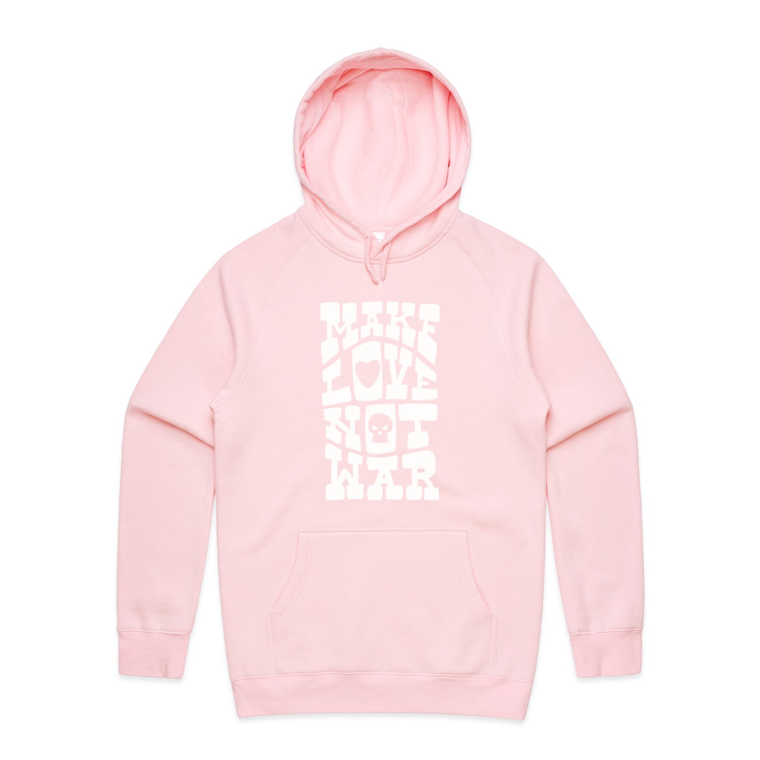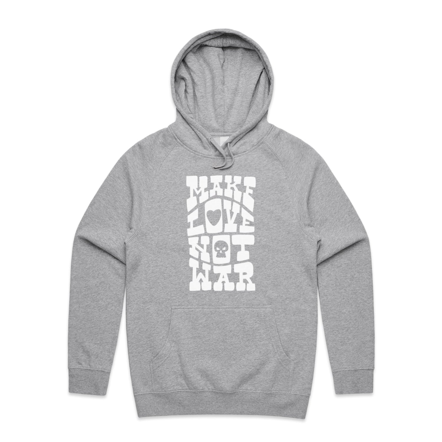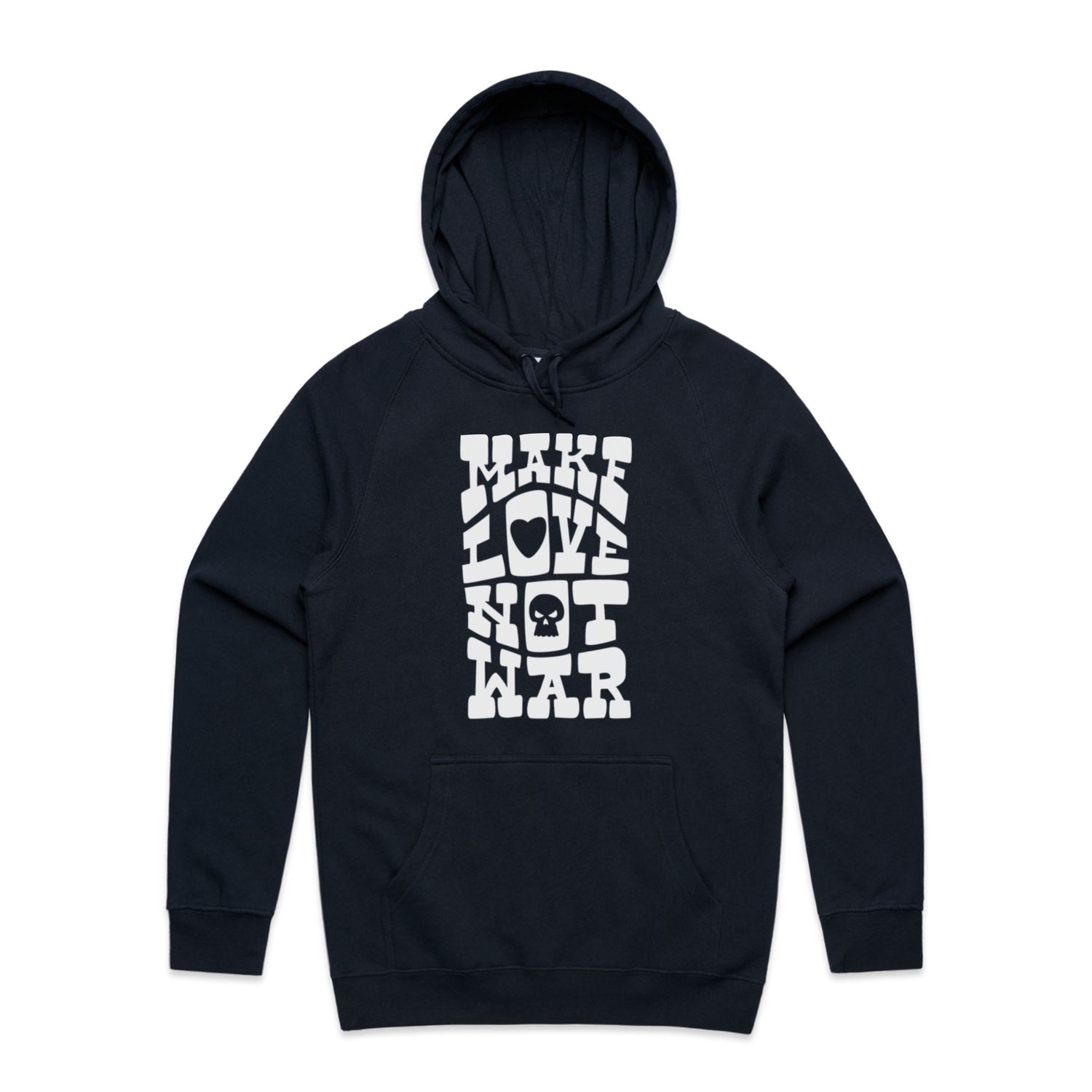 The Hoodies Make Love Not War – Men's Hooded Sweatshirt is a high-quality men's hooded sweatshirt, printed with white ink on the trusted AS Colour Supply Hood 5101. With a regular fit and mid-weight feel, it's crafted from a premium blend of 80% cotton and 20% polyester anti-pill fleece, making it a durable and comfortable staple for any wardrobe. The pullover design features raglan sleeves, a lined hood with tonal drawcord, ribbed sleeve cuffs, and a roomy kangaroo pocket — all designed to keep you warm while looking effortlessly sharp.