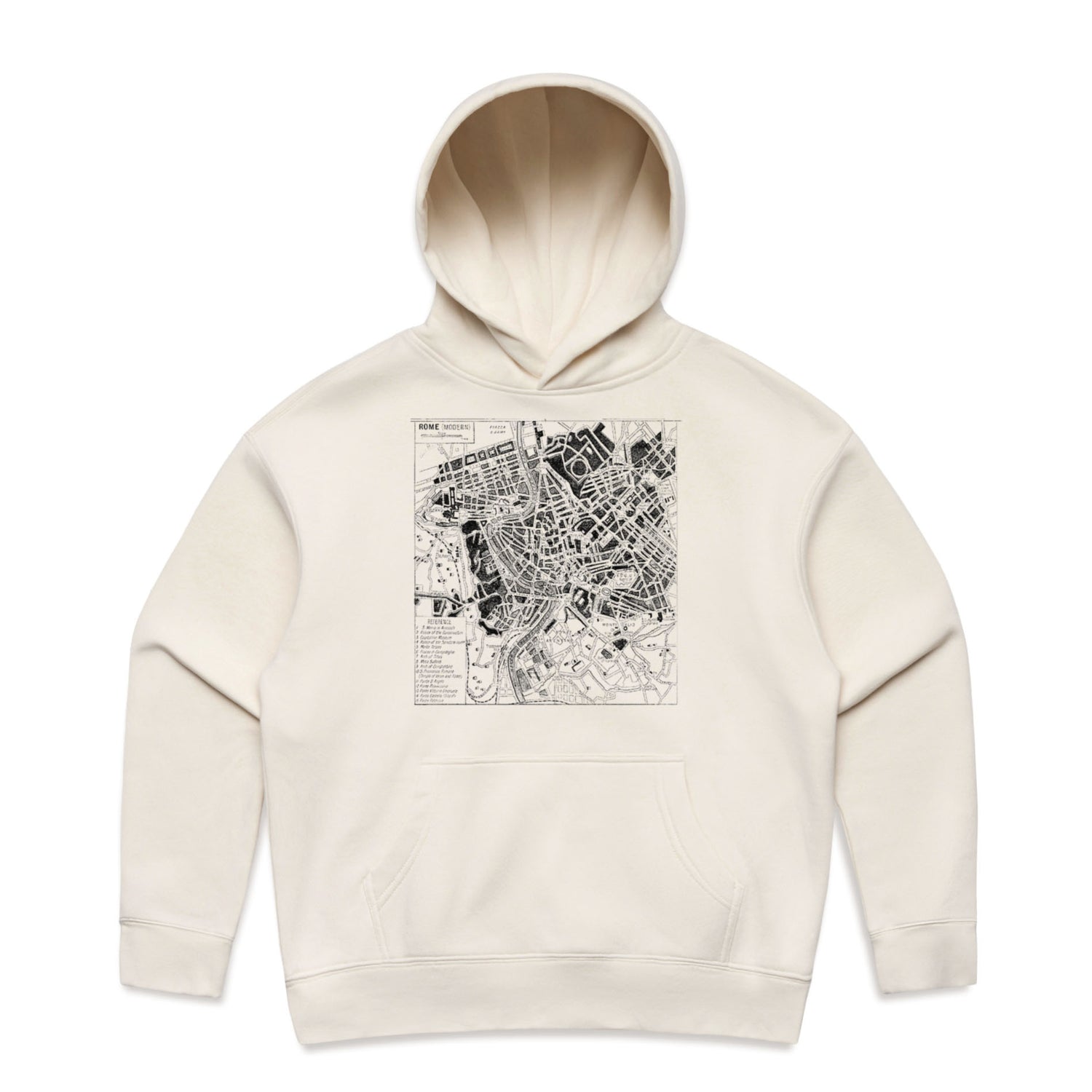 This beauty flaunts an epic map of Rome printed all over in classic black ink, so you'll always have la dolce vita close to your heart. Whether you’re lounging at home or hitting the streets, the design’s drop shoulders and kangaroo pocket are perfect for keeping you cosy and your hands warm – or stashing a cheeky snack or two. No pesky drawcord here, just a self-fabric lined hood that’s all about that clean, sleek look. And did I mention? Each hoodie saves about 7.2 plastic bottles from ending up in the dump, so you’re repping the planet while setting sartorial goals.