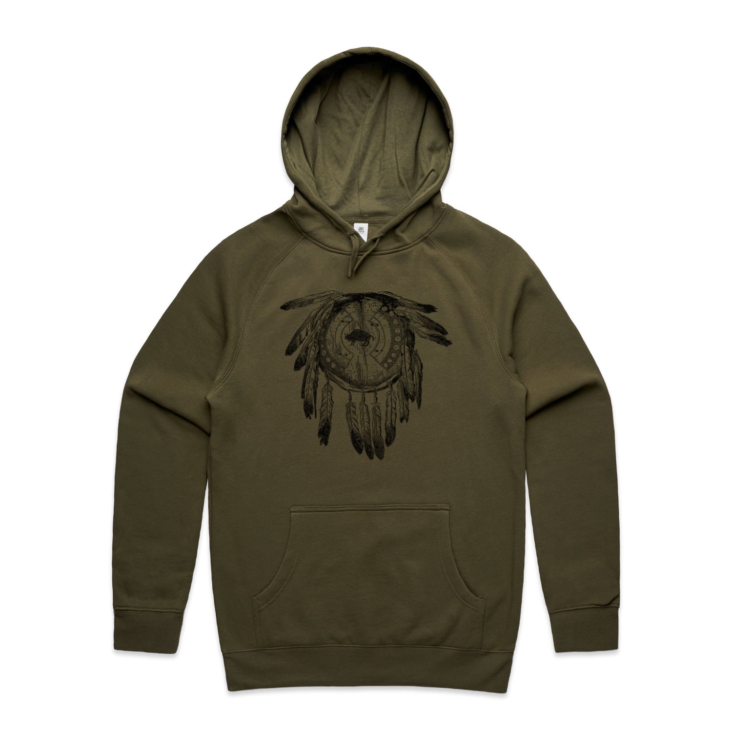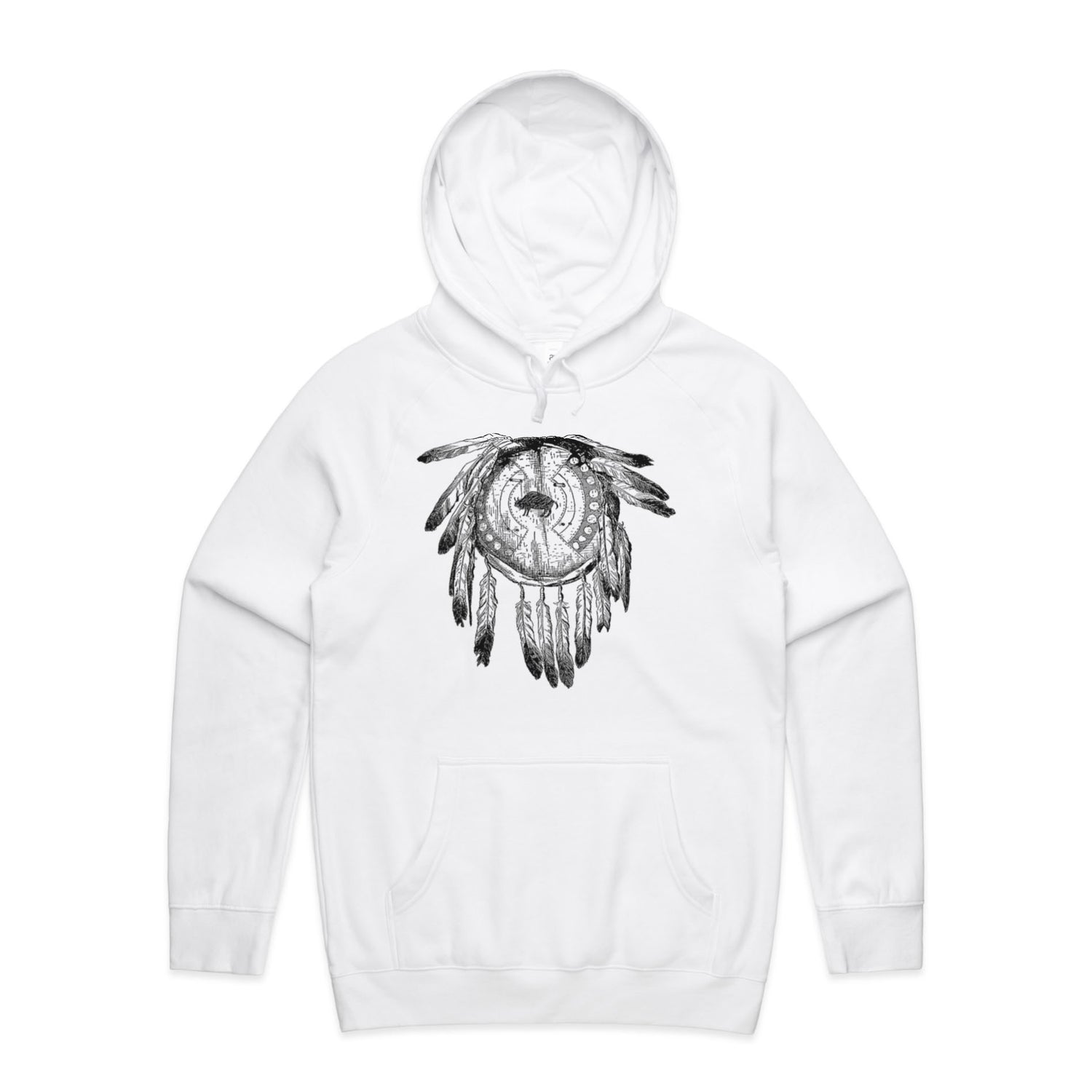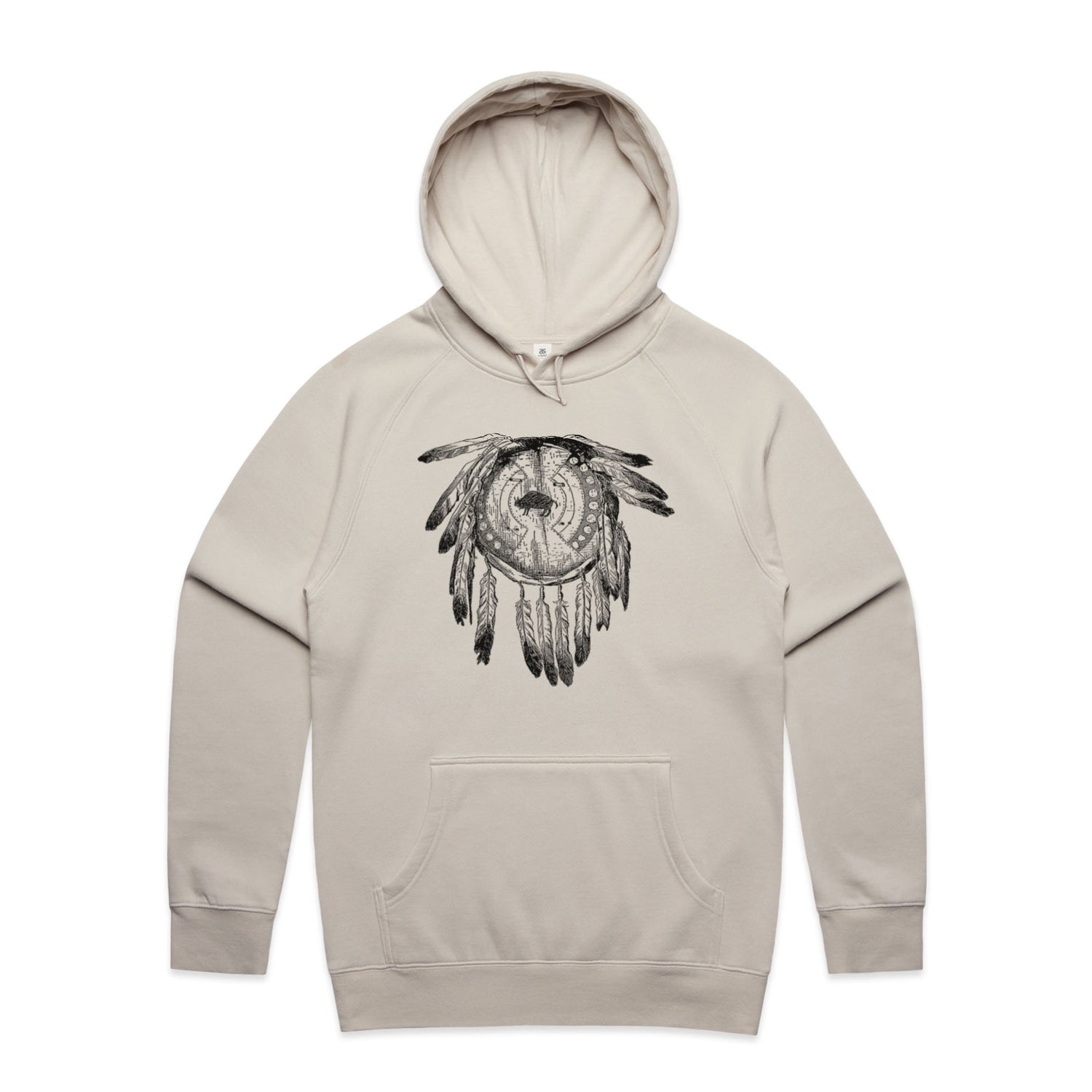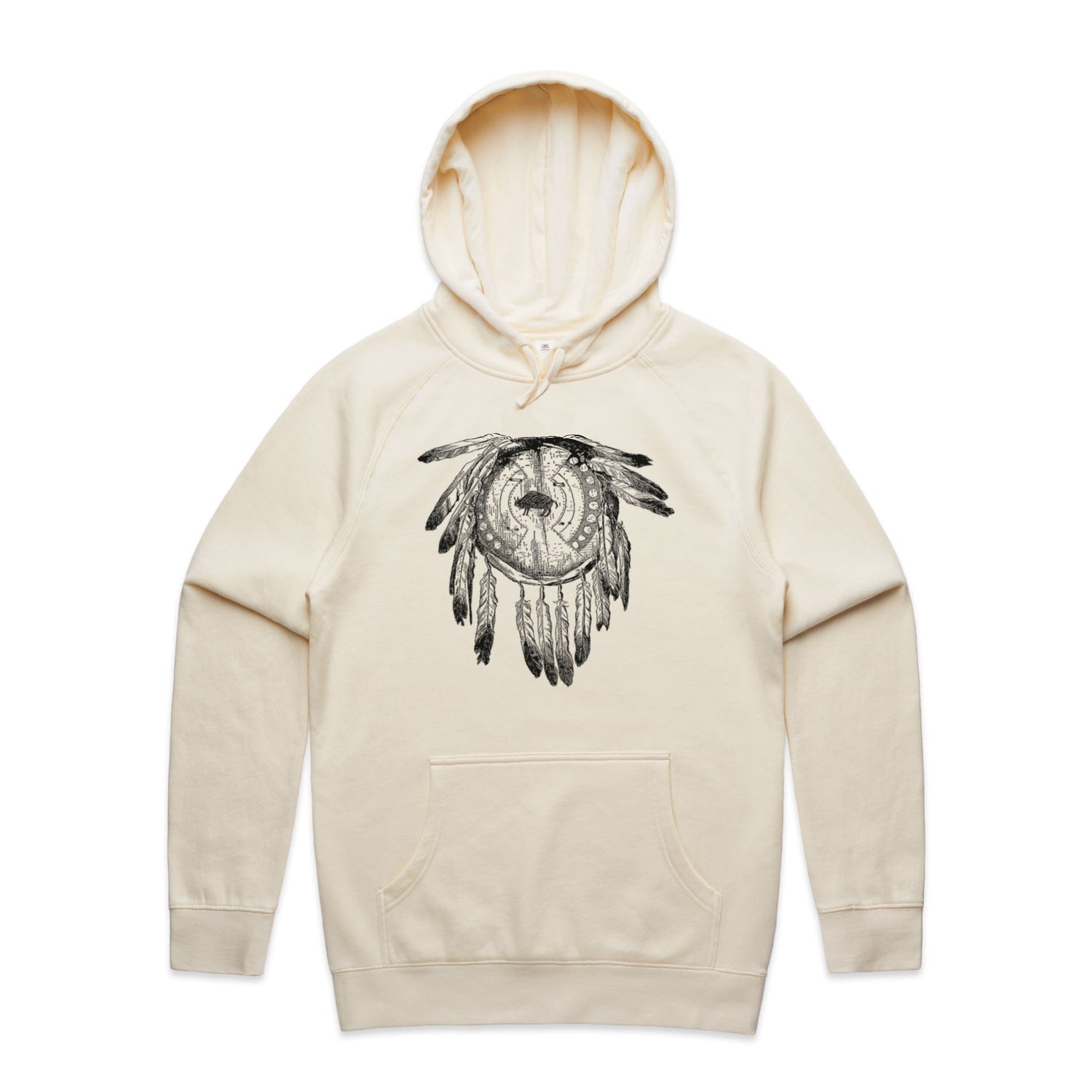 The Hoodies Northern Blackfoot Buffalo Hide Shield – Men's Hooded Sweatshirt is a high-quality men's hooded sweatshirt, printed with black ink on the trusted AS Colour Supply Hood 5101. With a regular fit and mid-weight feel, it's crafted from a premium blend of 80% cotton and 20% polyester anti-pill fleece, making it a durable and comfortable staple for any wardrobe. The pullover design features raglan sleeves, a lined hood with tonal drawcord, ribbed sleeve cuffs, and a roomy kangaroo pocket — all designed to keep you warm while looking effortlessly sharp.