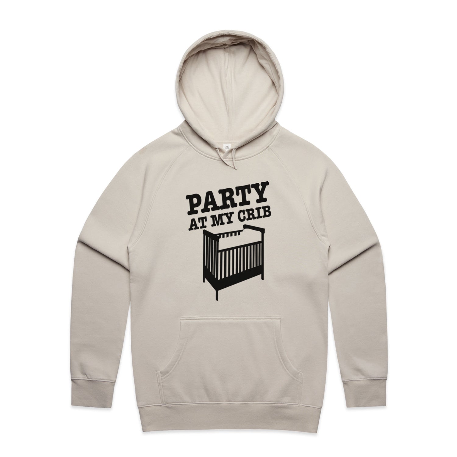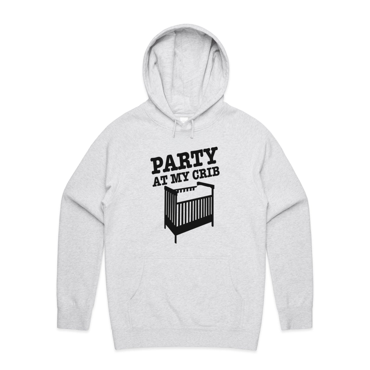 The Hoodies Party Crib – Men's Hooded Sweatshirt is a high-quality men's hooded sweatshirt, printed with black ink on the trusted AS Colour Supply Hood 5101. With a regular fit and mid-weight feel, it's crafted from a premium blend of 80% cotton and 20% polyester anti-pill fleece, making it a durable and comfortable staple for any wardrobe. The pullover design features raglan sleeves, a lined hood with tonal drawcord, ribbed sleeve cuffs, and a roomy kangaroo pocket — all designed to keep you warm while looking effortlessly sharp.