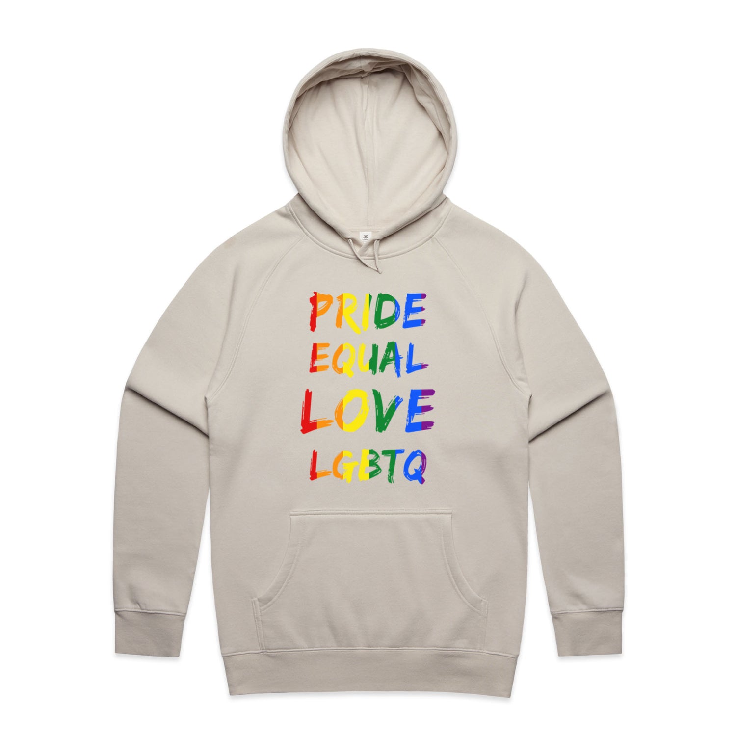 The Hoodies Pride Equals – Men's Hooded Sweatshirt is a high-quality men's hooded sweatshirt, printed with multicoloured ink on the trusted AS Colour Supply Hood 5101. With a regular fit and mid-weight feel, it's crafted from a premium blend of 80% cotton and 20% polyester anti-pill fleece, making it a durable and comfortable staple for any wardrobe. The pullover design features raglan sleeves, a lined hood with tonal drawcord, ribbed sleeve cuffs, and a roomy kangaroo pocket — all designed to keep you warm while looking effortlessly sharp.