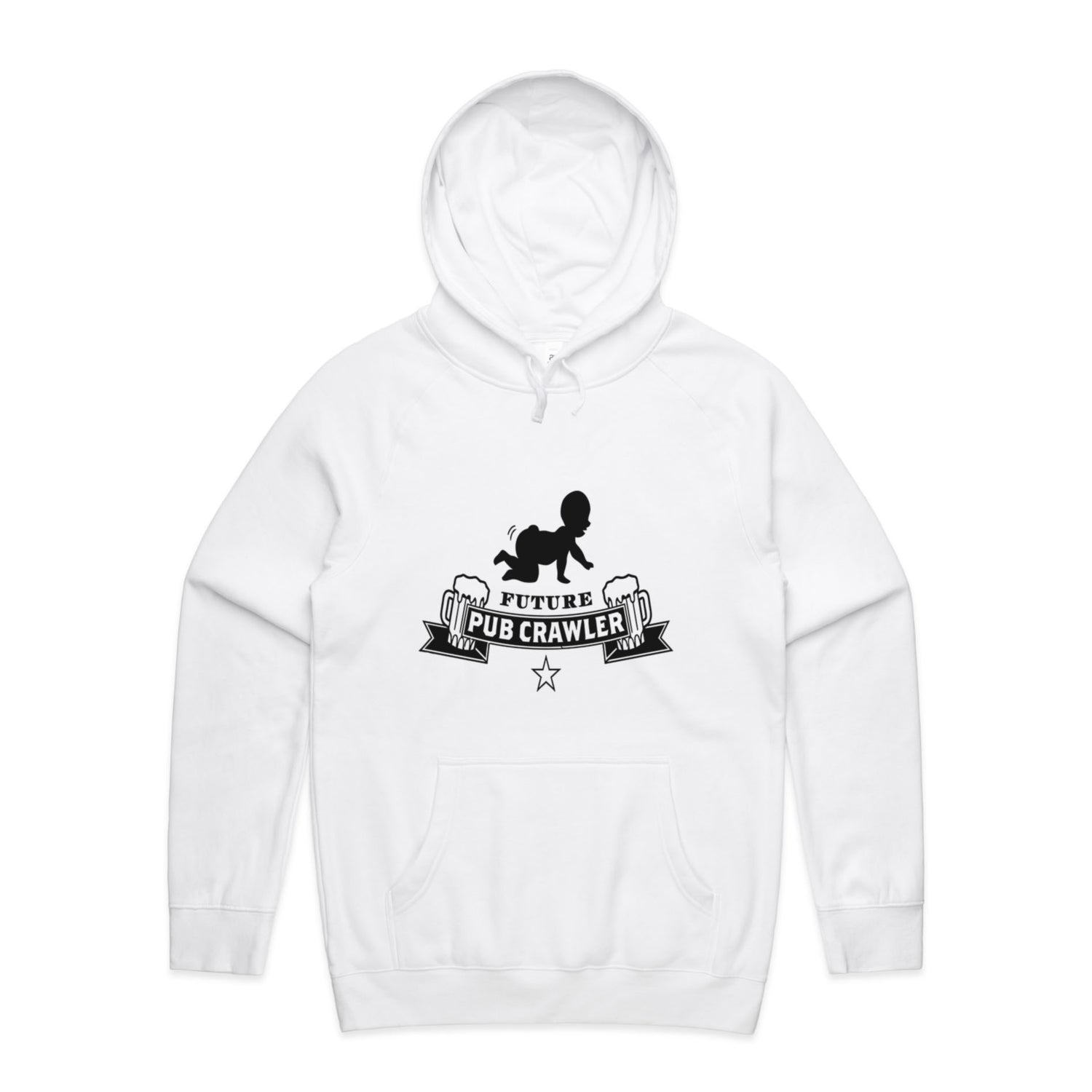 The Hoodies Pub Crawler – Men's Hooded Sweatshirt is a high-quality men's hooded sweatshirt, printed with black ink on the trusted AS Colour Supply Hood 5101. With a regular fit and mid-weight feel, it's crafted from a premium blend of 80% cotton and 20% polyester anti-pill fleece, making it a durable and comfortable staple for any wardrobe. The pullover design features raglan sleeves, a lined hood with tonal drawcord, ribbed sleeve cuffs, and a roomy kangaroo pocket — all designed to keep you warm while looking effortlessly sharp.