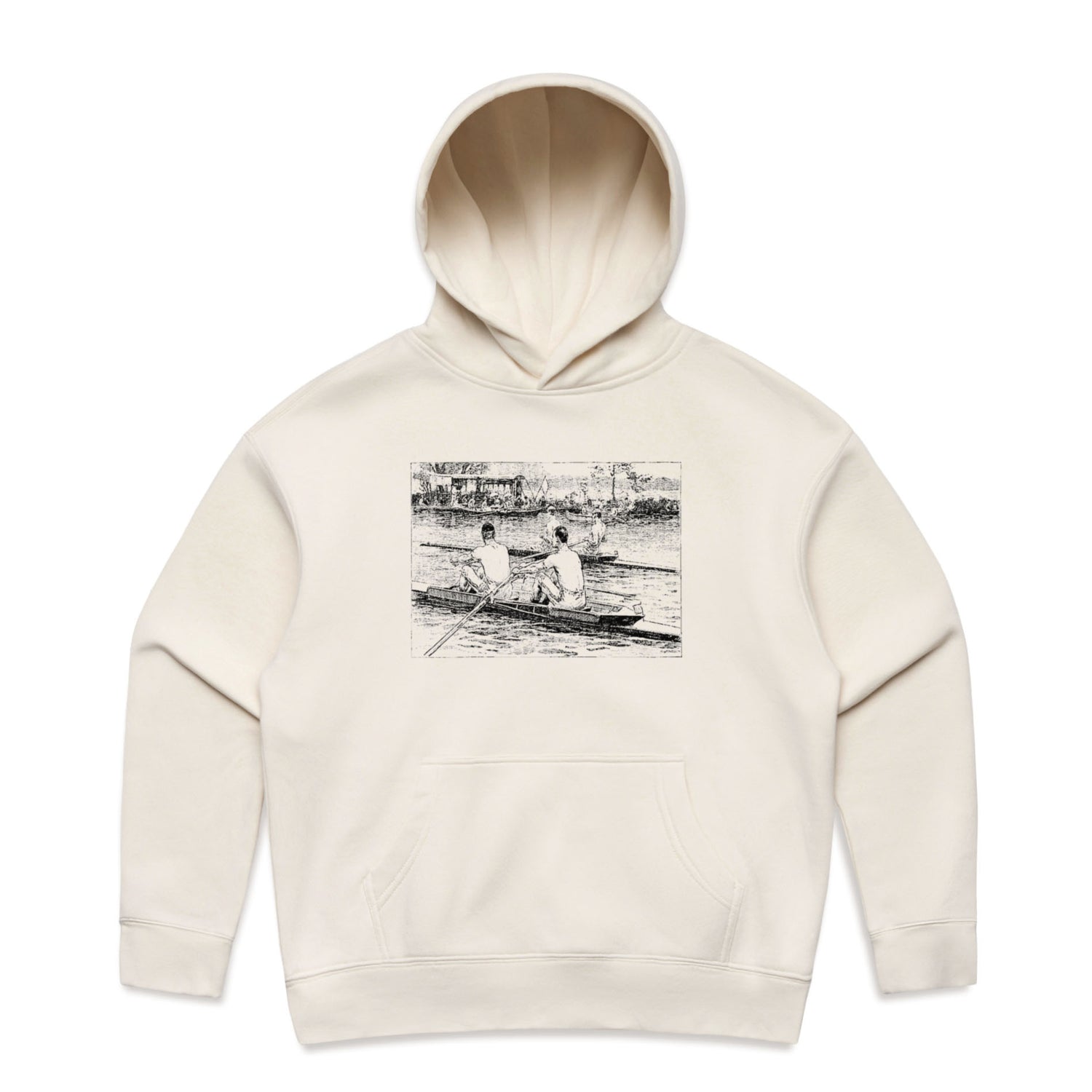 Ever fancied a paddle down the Thames without leaving your couch? Our Rowing down the Thames Women's Hoodie is your golden ticket to chill-ville with a splash of riverine adventure. Adorned in bold black ink, this hoodie is not just a piece of clothing—it's a vibe!