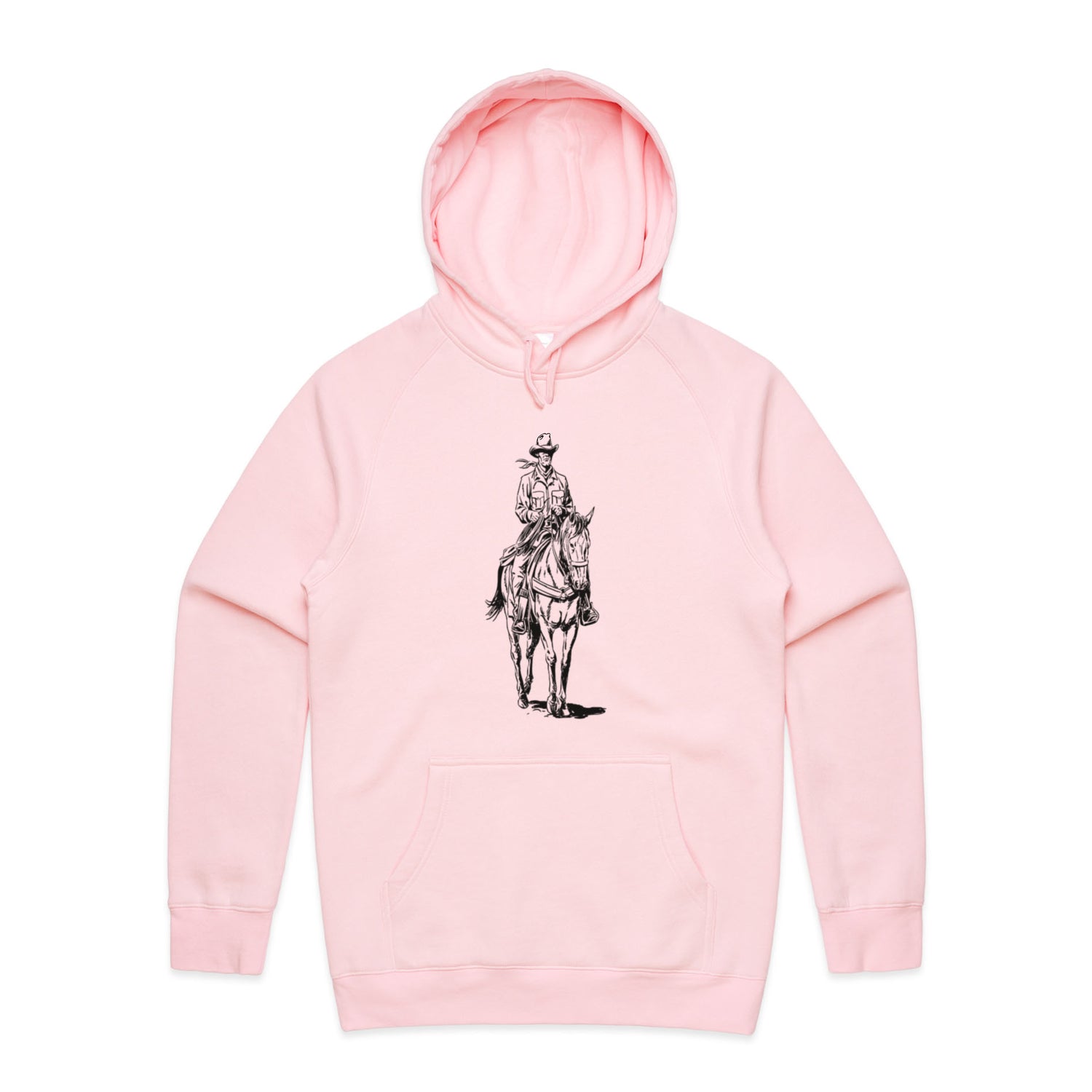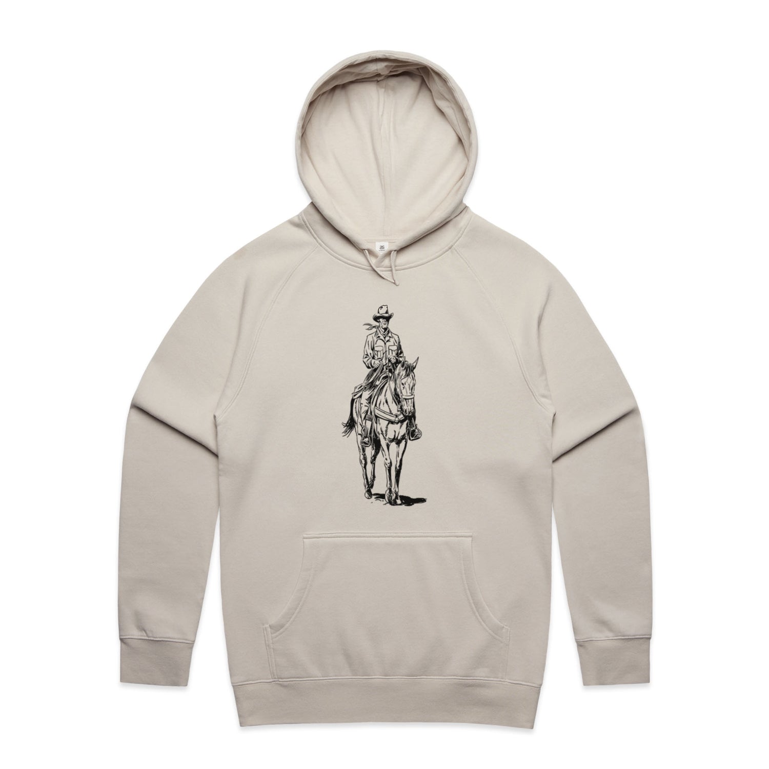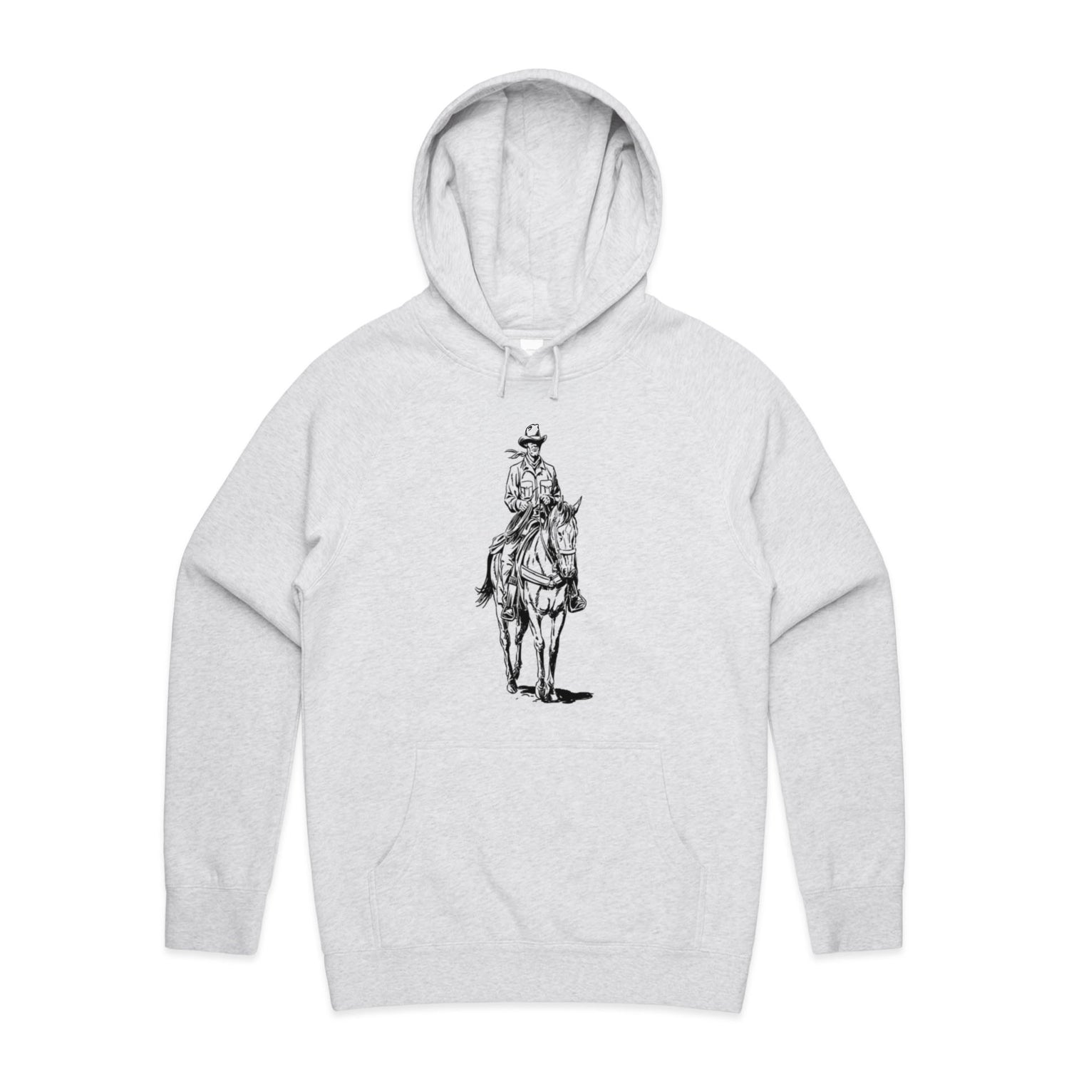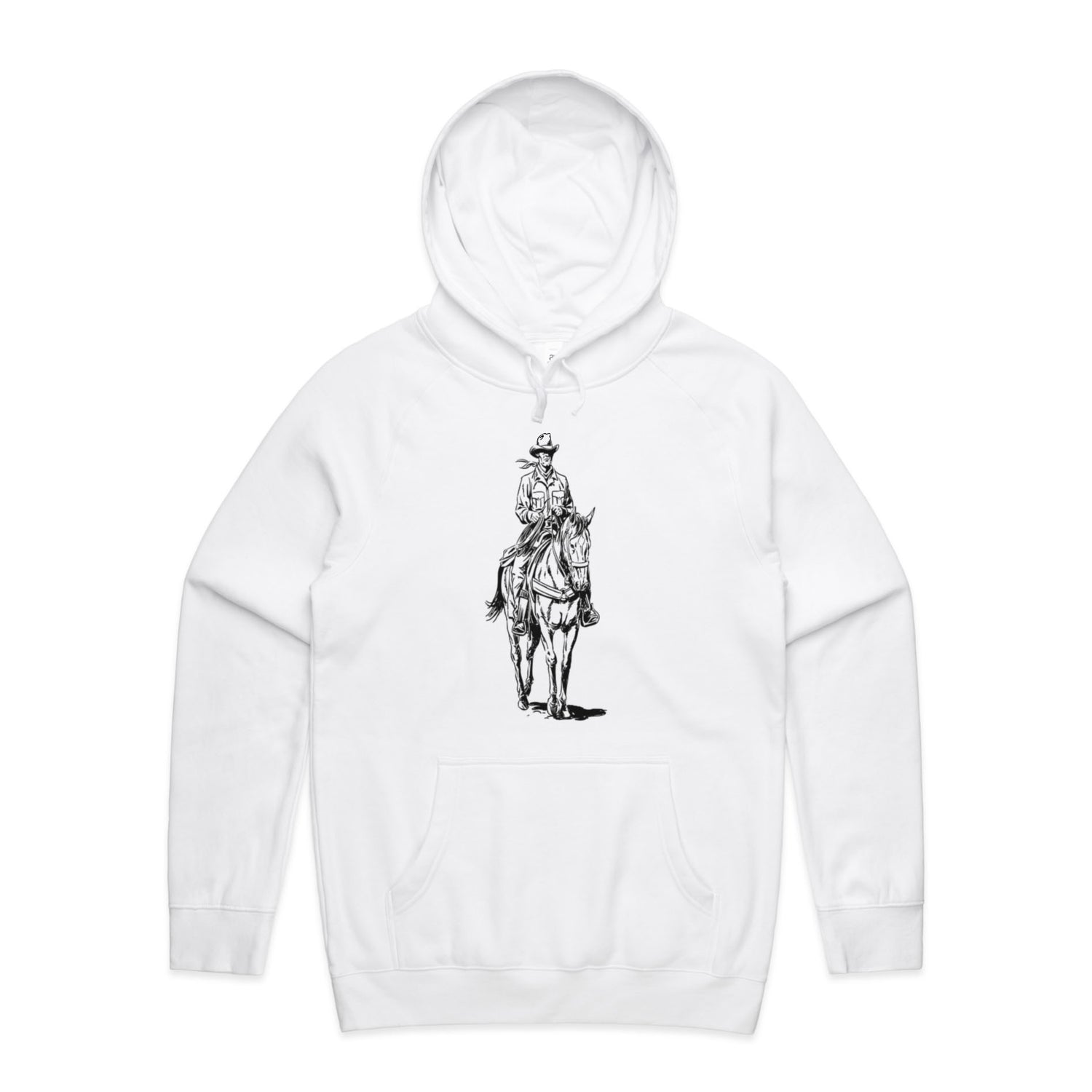 The Hoodies Rugged Cowboy Rider – Men's Hooded Sweatshirt is a high-quality men's hooded sweatshirt, printed with black ink on the trusted AS Colour Supply Hood 5101. With a regular fit and mid-weight feel, it's crafted from a premium blend of 80% cotton and 20% polyester anti-pill fleece, making it a durable and comfortable staple for any wardrobe. The pullover design features raglan sleeves, a lined hood with tonal drawcord, ribbed sleeve cuffs, and a roomy kangaroo pocket — all designed to keep you warm while looking effortlessly sharp.