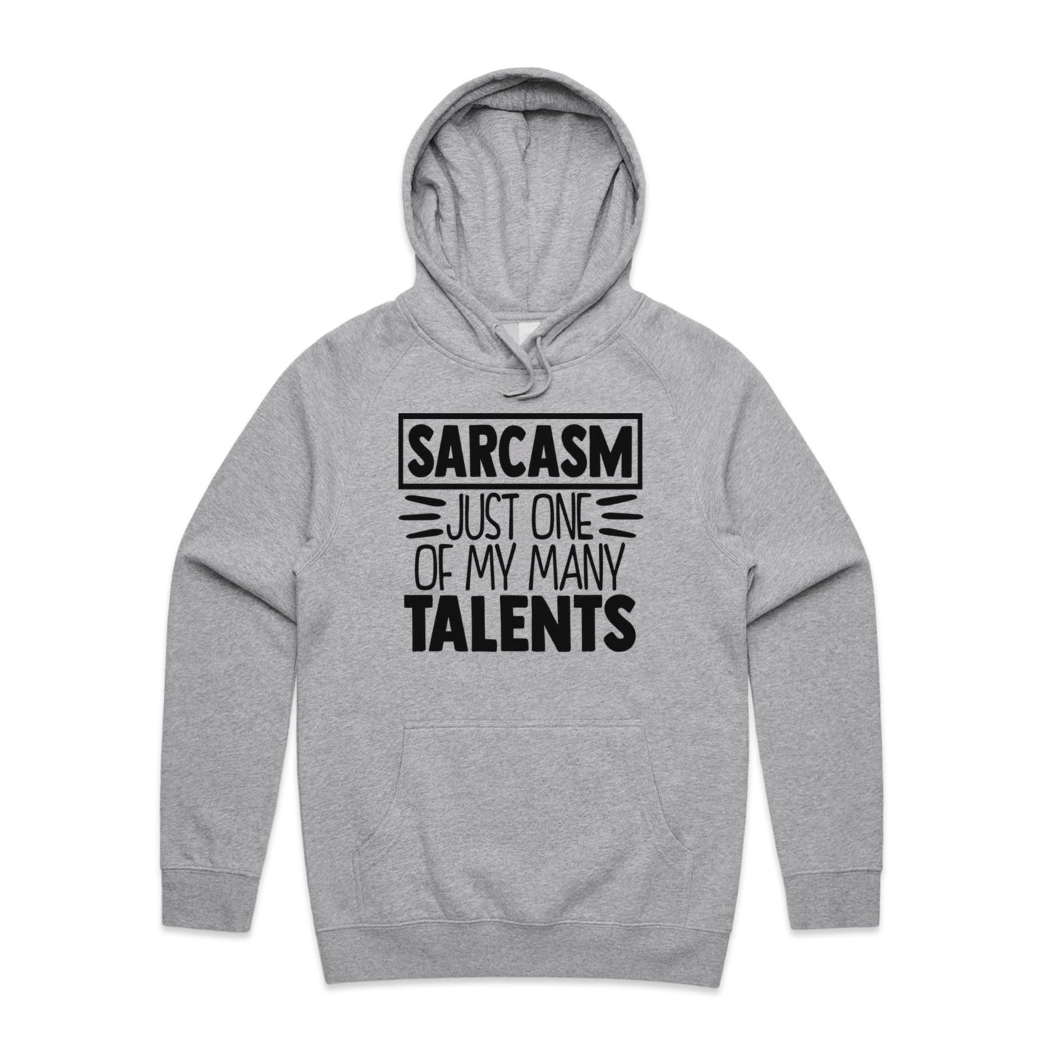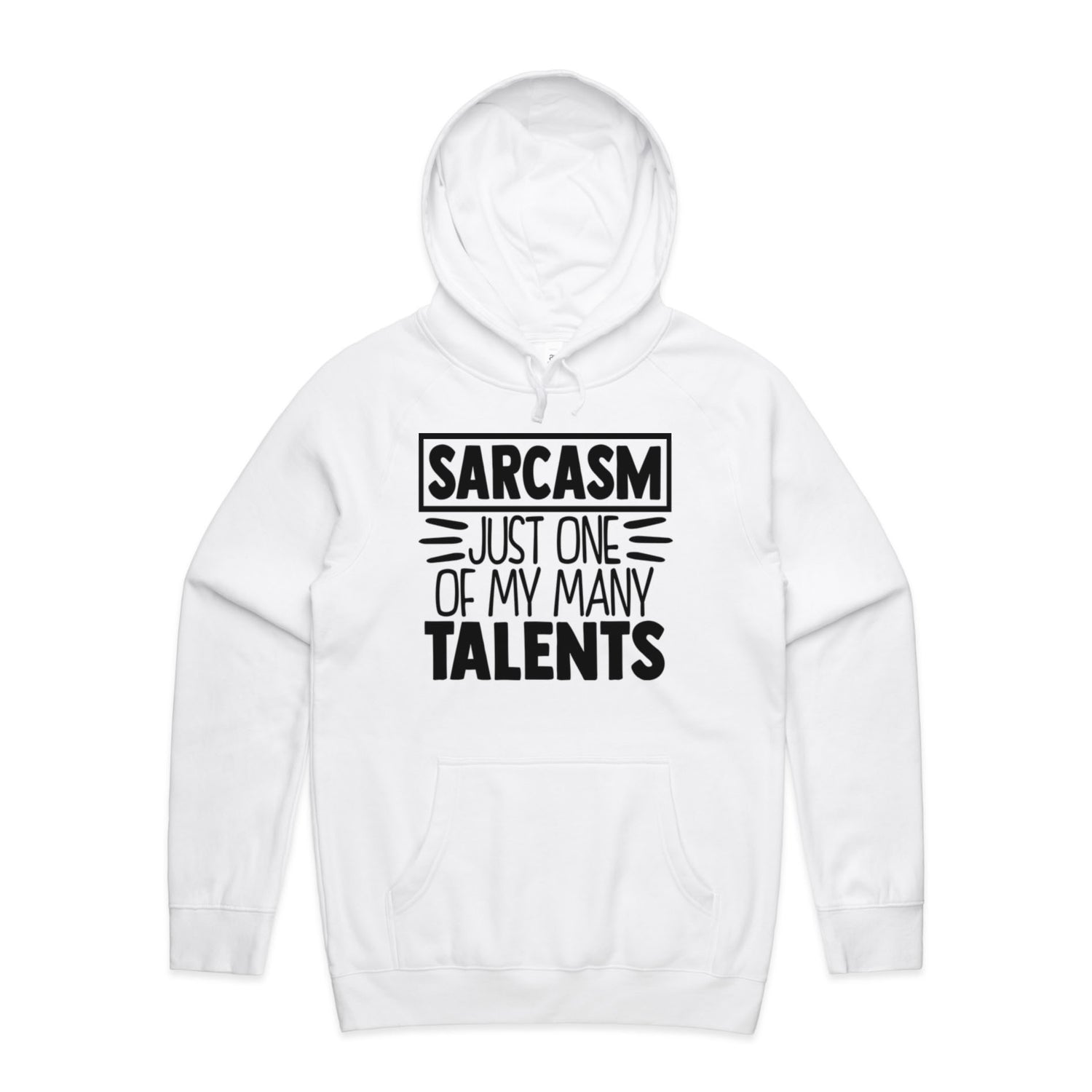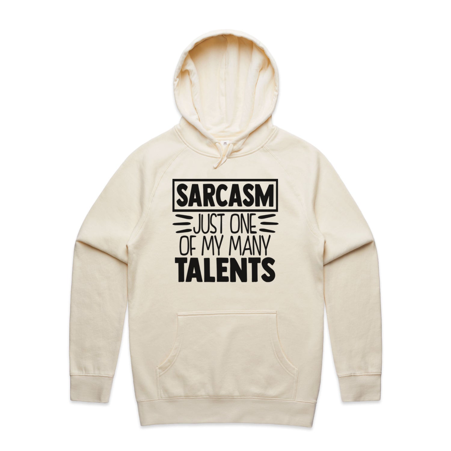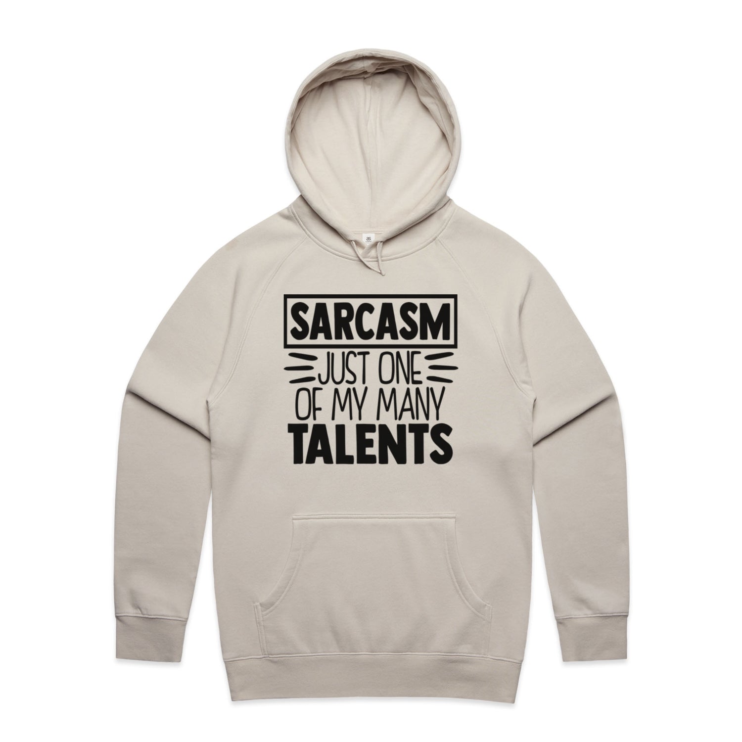 The Hoodies Sarcasm Talent Art – Men's Hooded Sweatshirt is a high-quality men's hooded sweatshirt, printed with black ink on the trusted AS Colour Supply Hood 5101. With a regular fit and mid-weight feel, it's crafted from a premium blend of 80% cotton and 20% polyester anti-pill fleece, making it a durable and comfortable staple for any wardrobe. The pullover design features raglan sleeves, a lined hood with tonal drawcord, ribbed sleeve cuffs, and a roomy kangaroo pocket — all designed to keep you warm while looking effortlessly sharp.