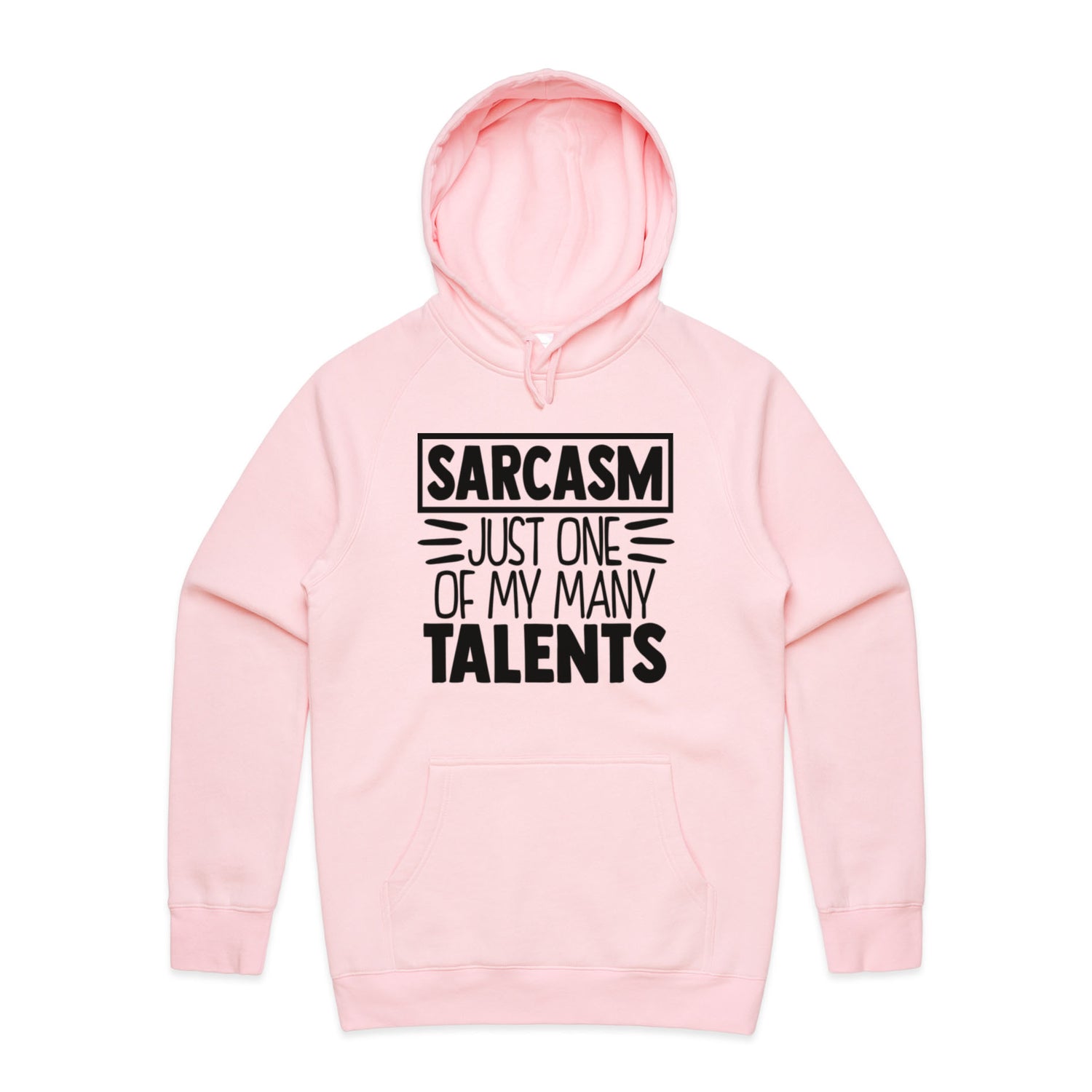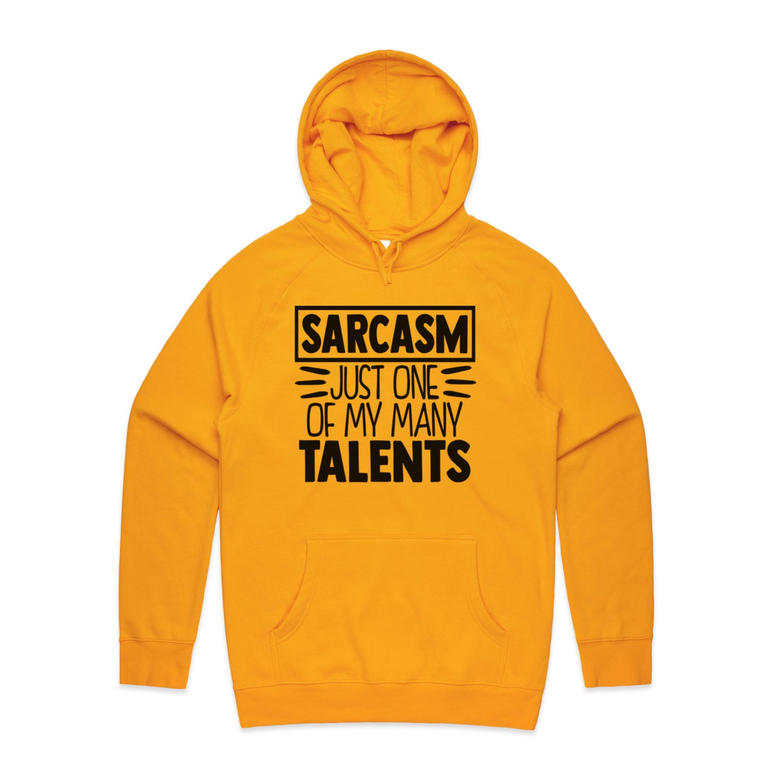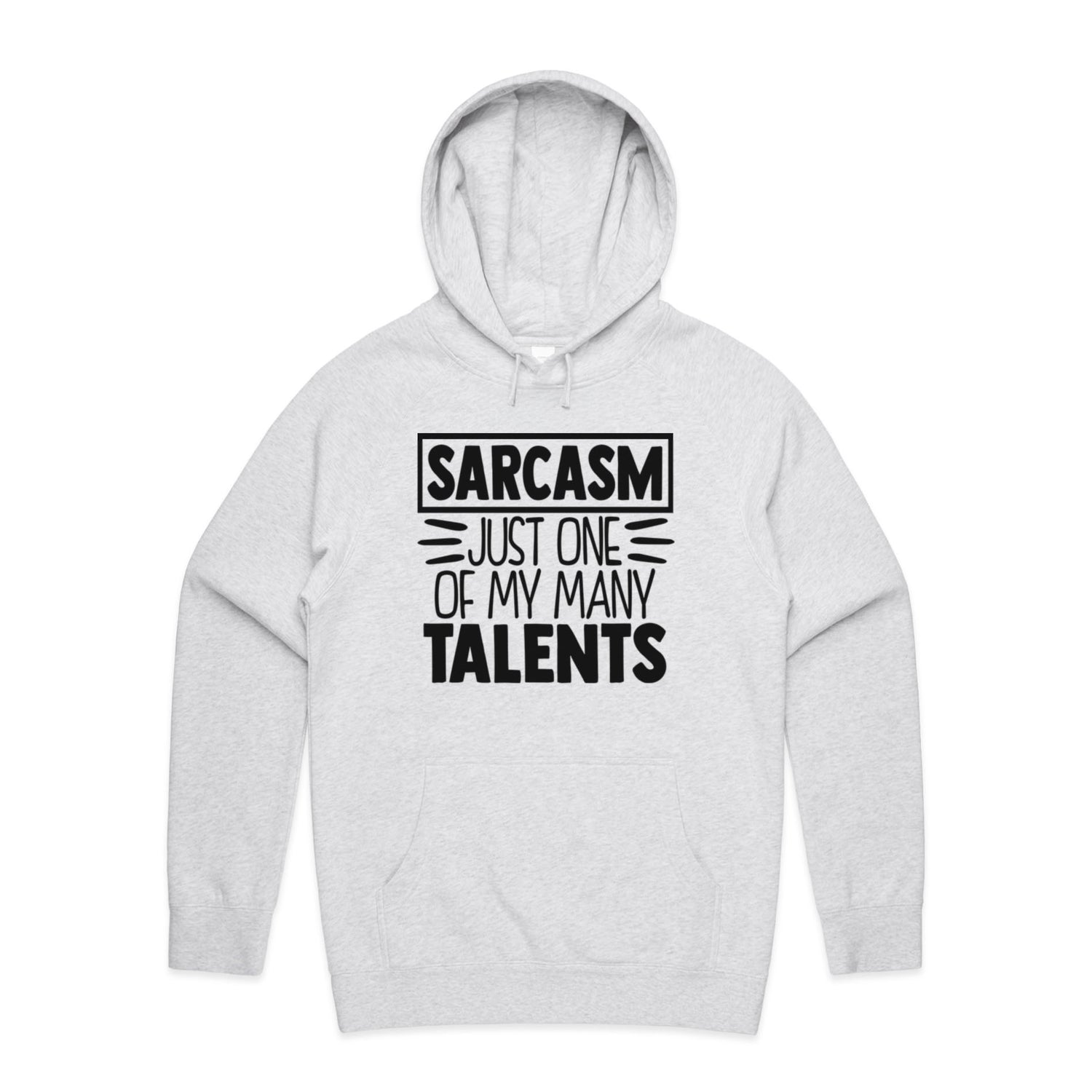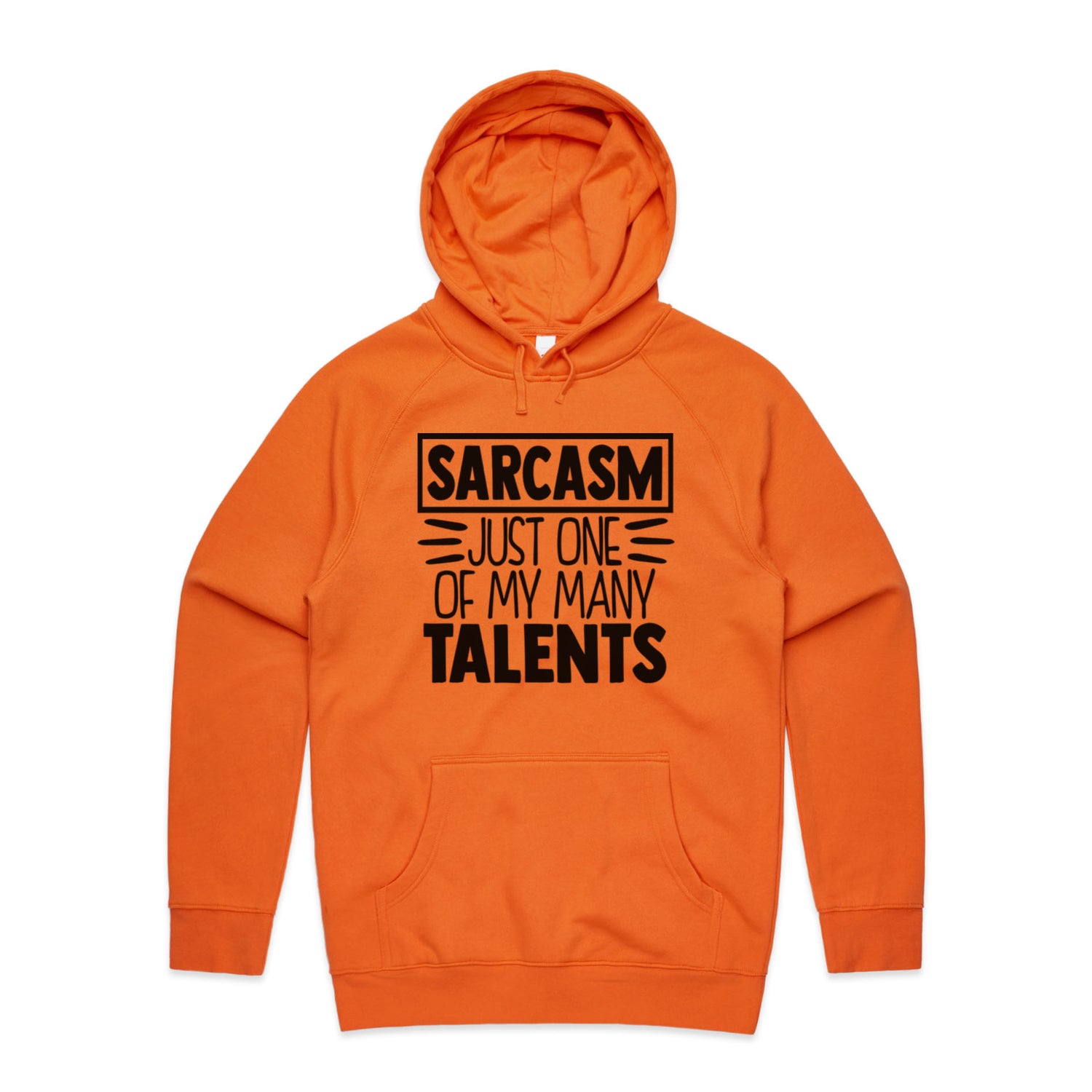 The Hoodies Sarcasm Talent Art – Men's Hooded Sweatshirt is a high-quality men's hooded sweatshirt, printed with black ink on the trusted AS Colour Supply Hood 5101. With a regular fit and mid-weight feel, it's crafted from a premium blend of 80% cotton and 20% polyester anti-pill fleece, making it a durable and comfortable staple for any wardrobe. The pullover design features raglan sleeves, a lined hood with tonal drawcord, ribbed sleeve cuffs, and a roomy kangaroo pocket — all designed to keep you warm while looking effortlessly sharp.