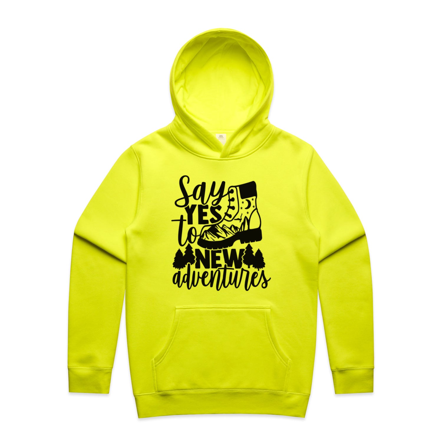 The design's all about embracing the thrill of the wild, featuring bold black typography that pops against the hoodie’s backdrop. It’s aimed at those who hear the call of the wild and are always ready to say “yes” to a new adventure. Perfect for pairing with jeans or thrown over your swimsuit, this hoodie screams fun and spontaneity.