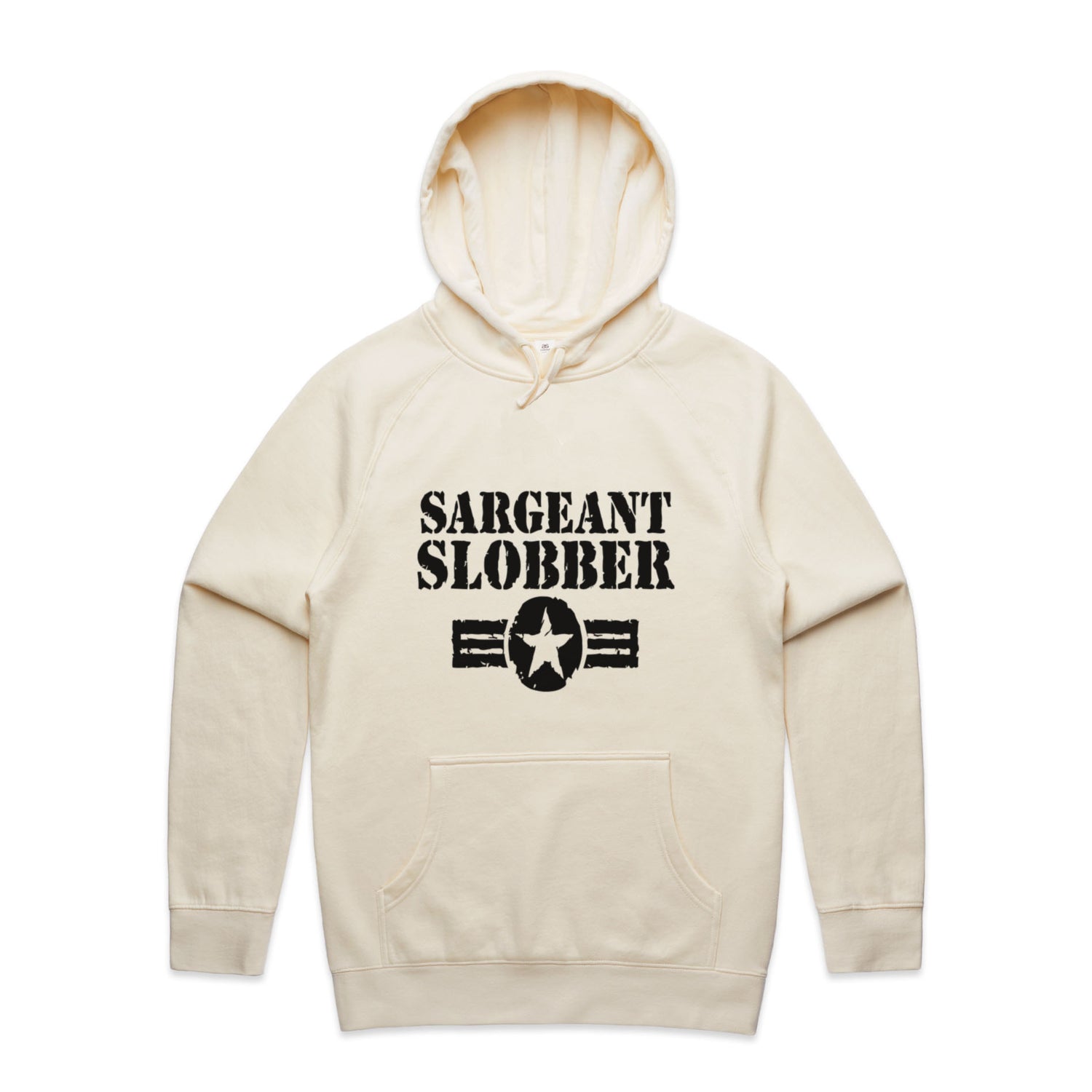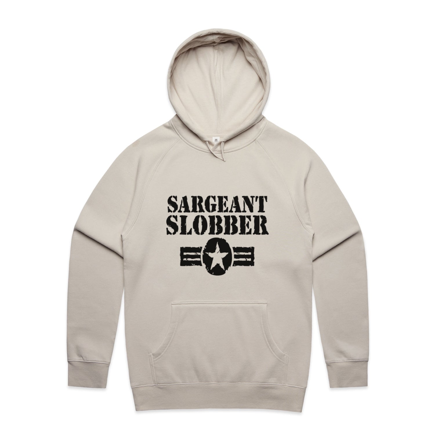 The Hoodies Sgt. Slobber – Men's Hooded Sweatshirt is a high-quality men's hooded sweatshirt, printed with black ink on the trusted AS Colour Supply Hood 5101. With a regular fit and mid-weight feel, it's crafted from a premium blend of 80% cotton and 20% polyester anti-pill fleece, making it a durable and comfortable staple for any wardrobe. The pullover design features raglan sleeves, a lined hood with tonal drawcord, ribbed sleeve cuffs, and a roomy kangaroo pocket — all designed to keep you warm while looking effortlessly sharp.