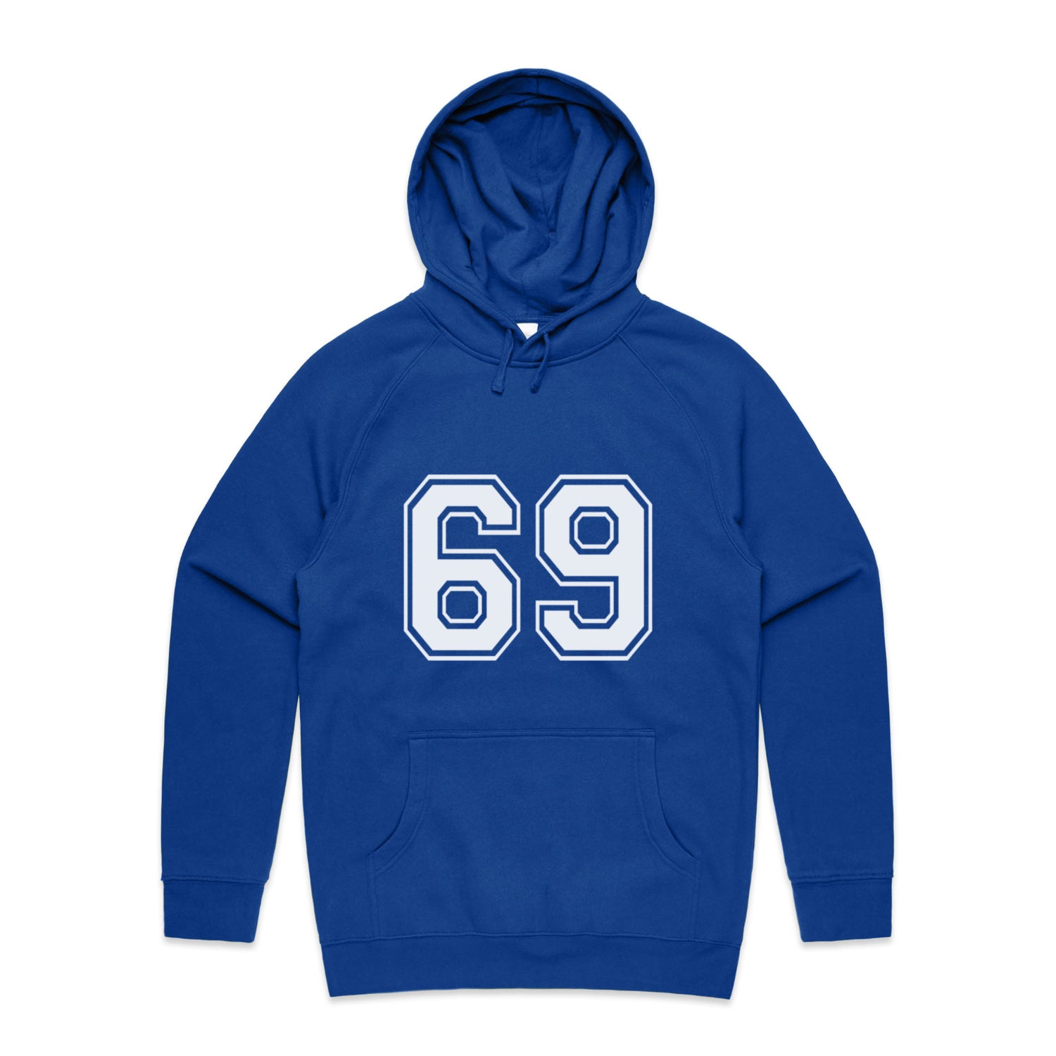 The Hoodies Sport Numbers 69 – Men's Hooded Sweatshirt is a high-quality men's hooded sweatshirt, printed with white ink on the trusted AS Colour Supply Hood 5101. With a regular fit and mid-weight feel, it's crafted from a premium blend of 80% cotton and 20% polyester anti-pill fleece, making it a durable and comfortable staple for any wardrobe. The pullover design features raglan sleeves, a lined hood with tonal drawcord, ribbed sleeve cuffs, and a roomy kangaroo pocket — all designed to keep you warm while looking effortlessly sharp.