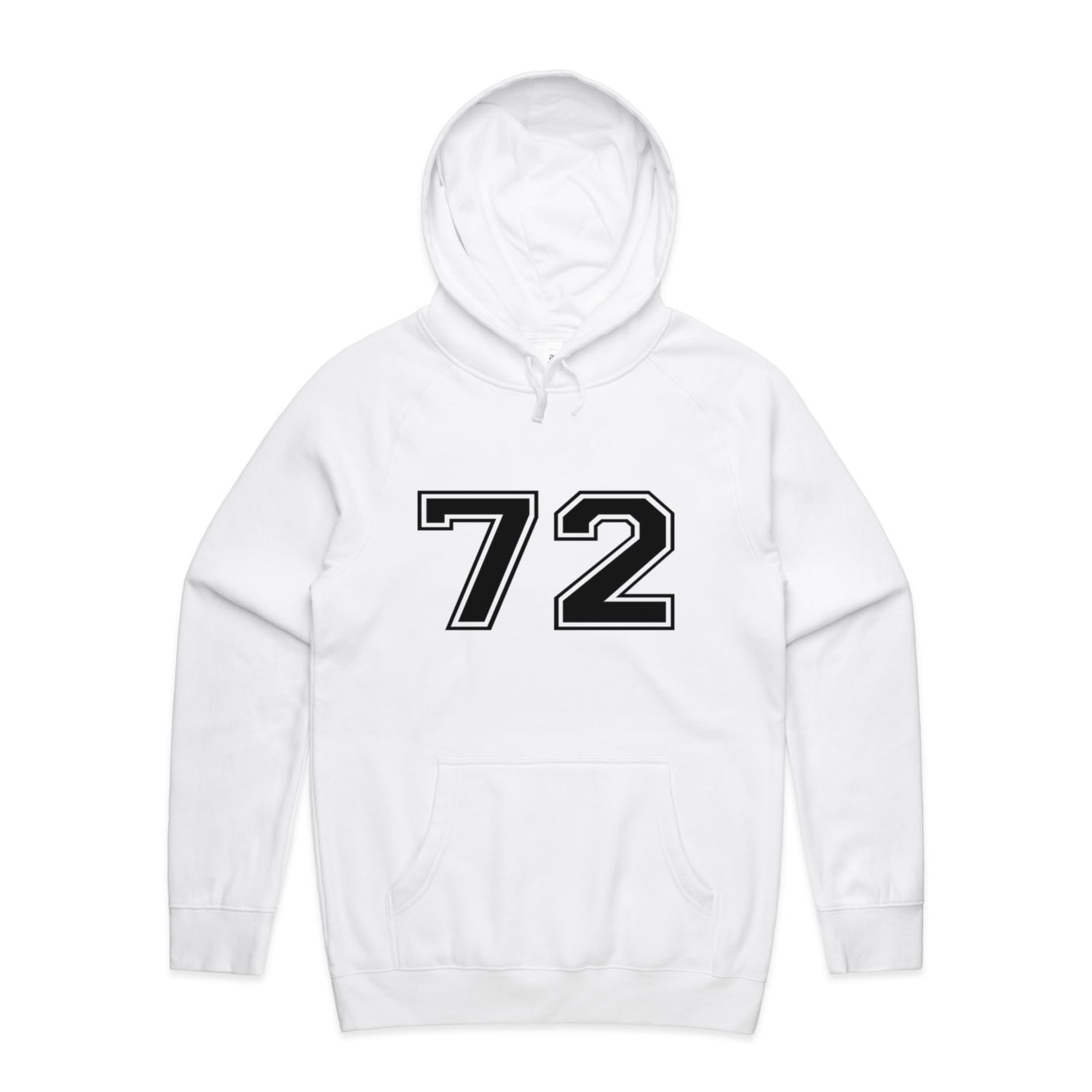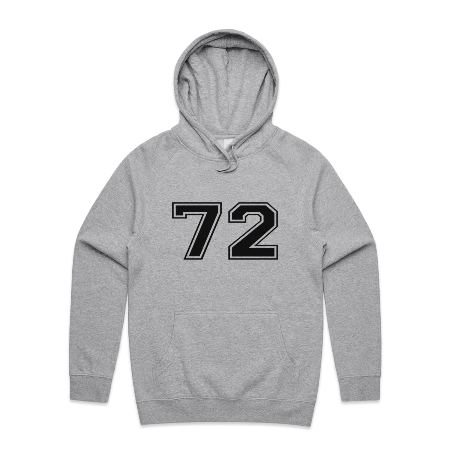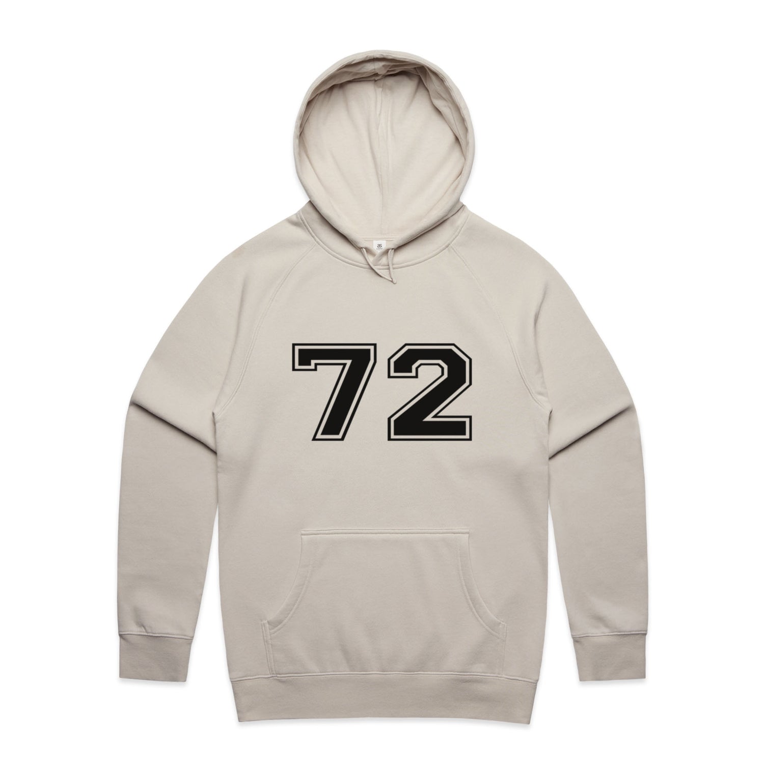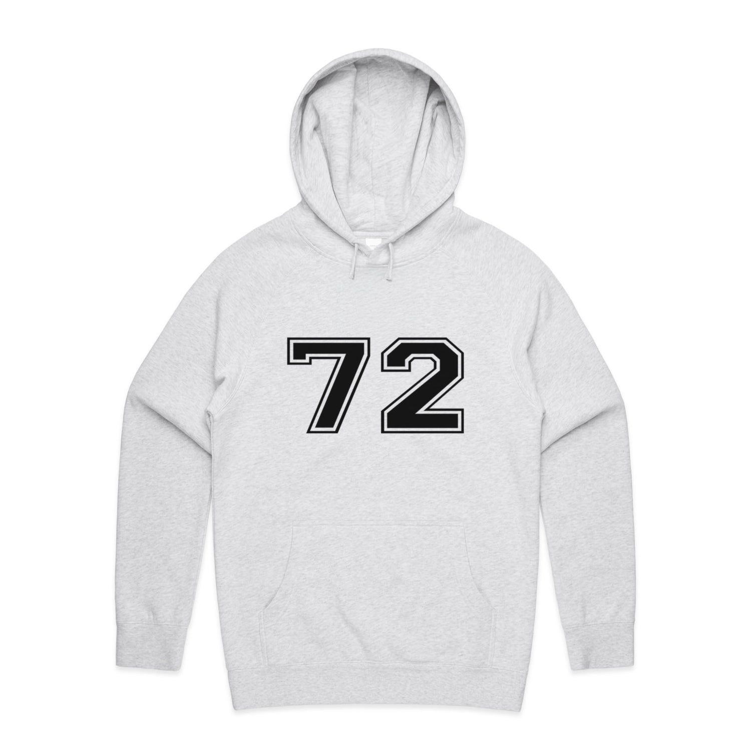 The Hoodies Sport Numbers 72 – Men's Hooded Sweatshirt is a high-quality men's hooded sweatshirt, printed with black ink on the trusted AS Colour Supply Hood 5101. With a regular fit and mid-weight feel, it's crafted from a premium blend of 80% cotton and 20% polyester anti-pill fleece, making it a durable and comfortable staple for any wardrobe. The pullover design features raglan sleeves, a lined hood with tonal drawcord, ribbed sleeve cuffs, and a roomy kangaroo pocket — all designed to keep you warm while looking effortlessly sharp.