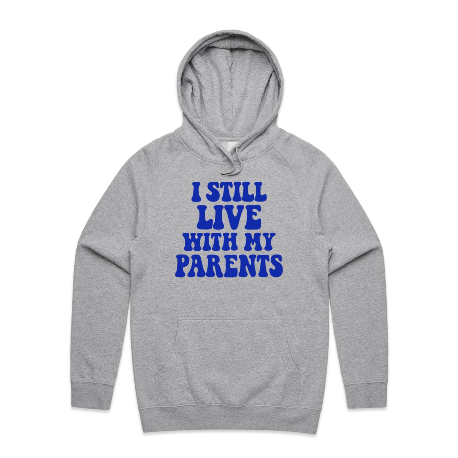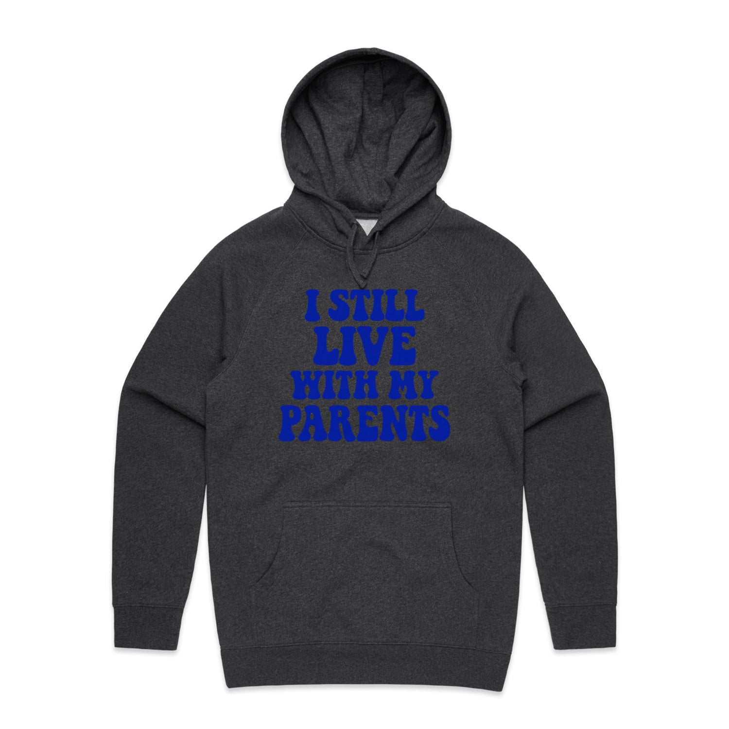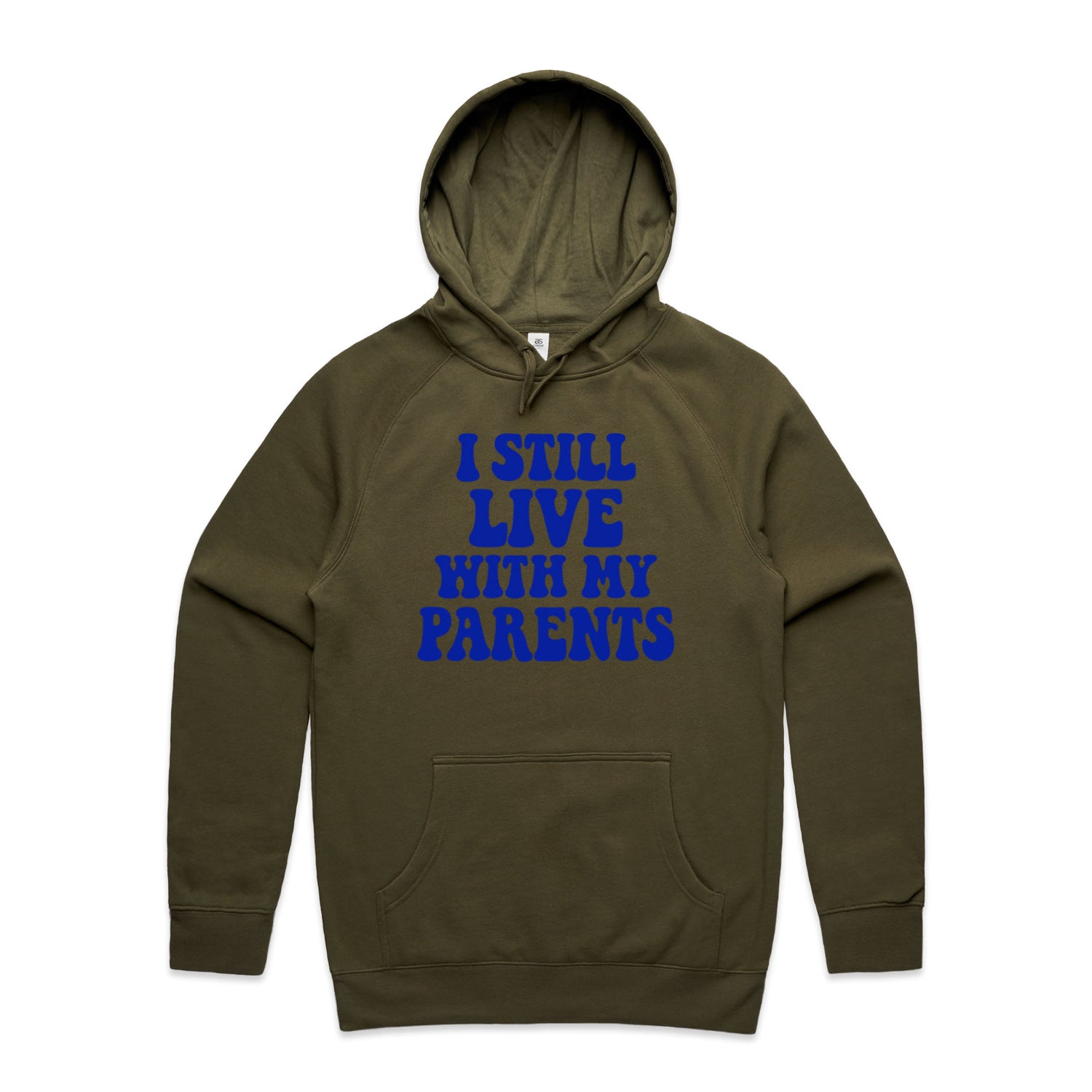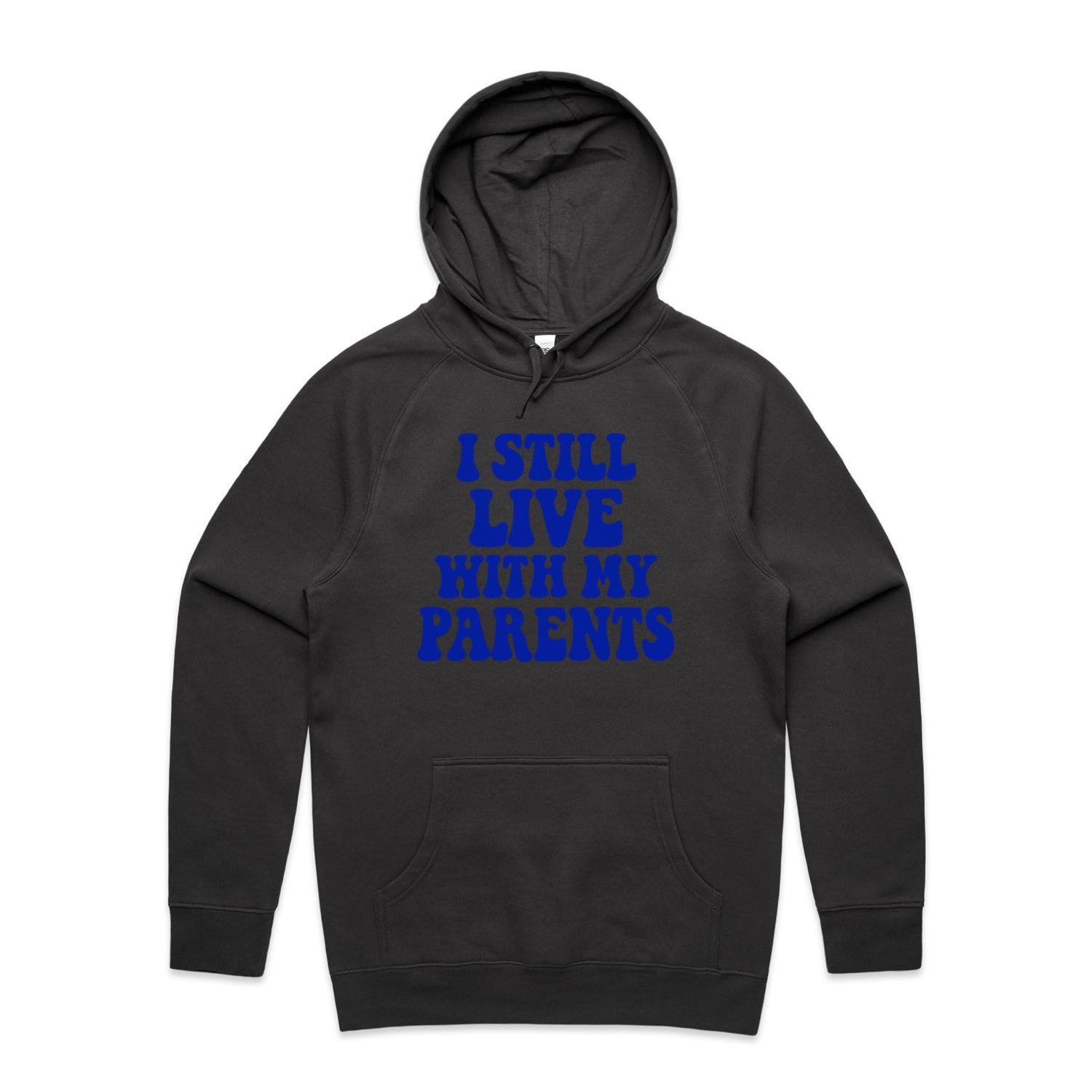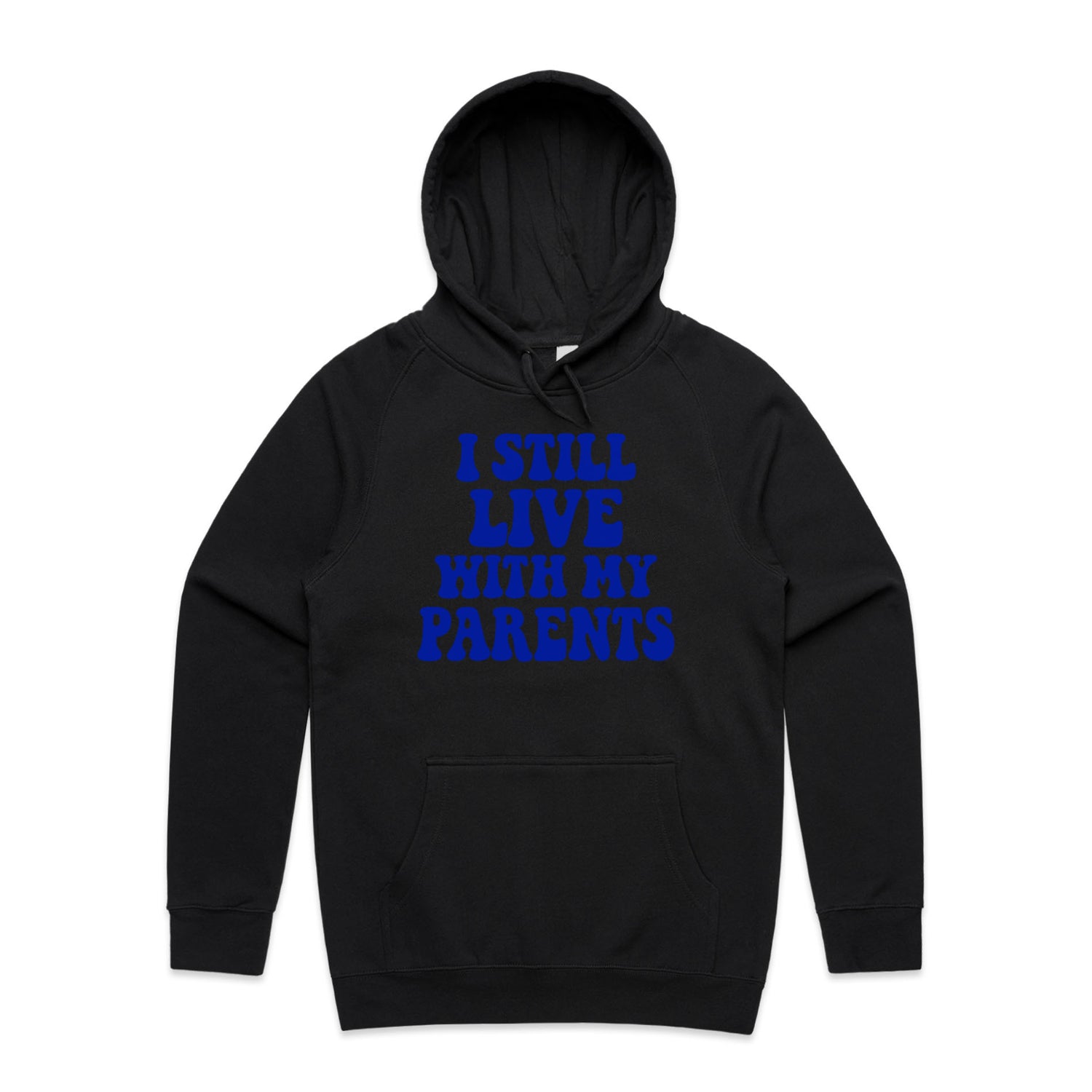 The Hoodies Still Living with Parents – Men's Hooded Sweatshirt is a high-quality men's hooded sweatshirt, printed with blue ink on the trusted AS Colour Supply Hood 5101. With a regular fit and mid-weight feel, it's crafted from a premium blend of 80% cotton and 20% polyester anti-pill fleece, making it a durable and comfortable staple for any wardrobe. The pullover design features raglan sleeves, a lined hood with tonal drawcord, ribbed sleeve cuffs, and a roomy kangaroo pocket — all designed to keep you warm while looking effortlessly sharp.