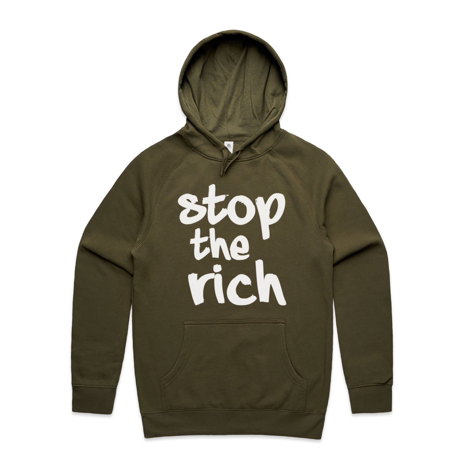 The Hoodies stop the rich – Men's Hooded Sweatshirt is a high-quality men's hooded sweatshirt, printed with white ink on the trusted AS Colour Supply Hood 5101. With a regular fit and mid-weight feel, it's crafted from a premium blend of 80% cotton and 20% polyester anti-pill fleece, making it a durable and comfortable staple for any wardrobe. The pullover design features raglan sleeves, a lined hood with tonal drawcord, ribbed sleeve cuffs, and a roomy kangaroo pocket — all designed to keep you warm while looking effortlessly sharp.