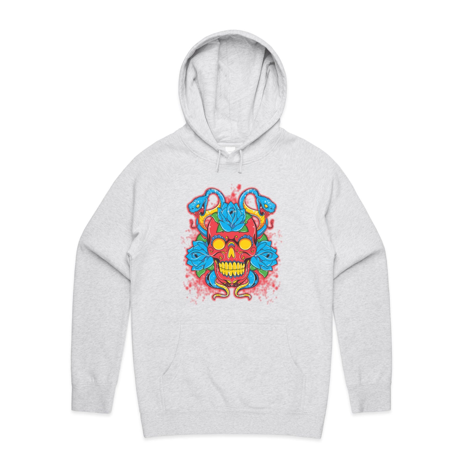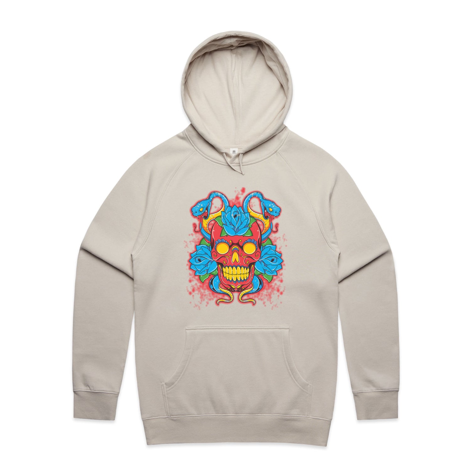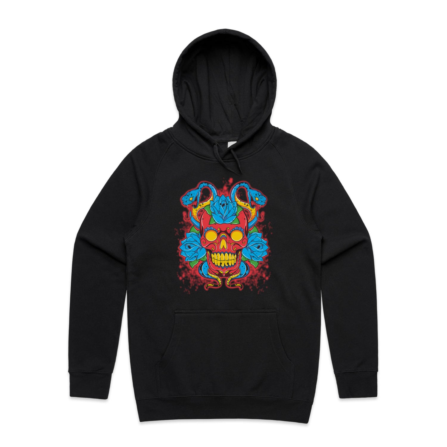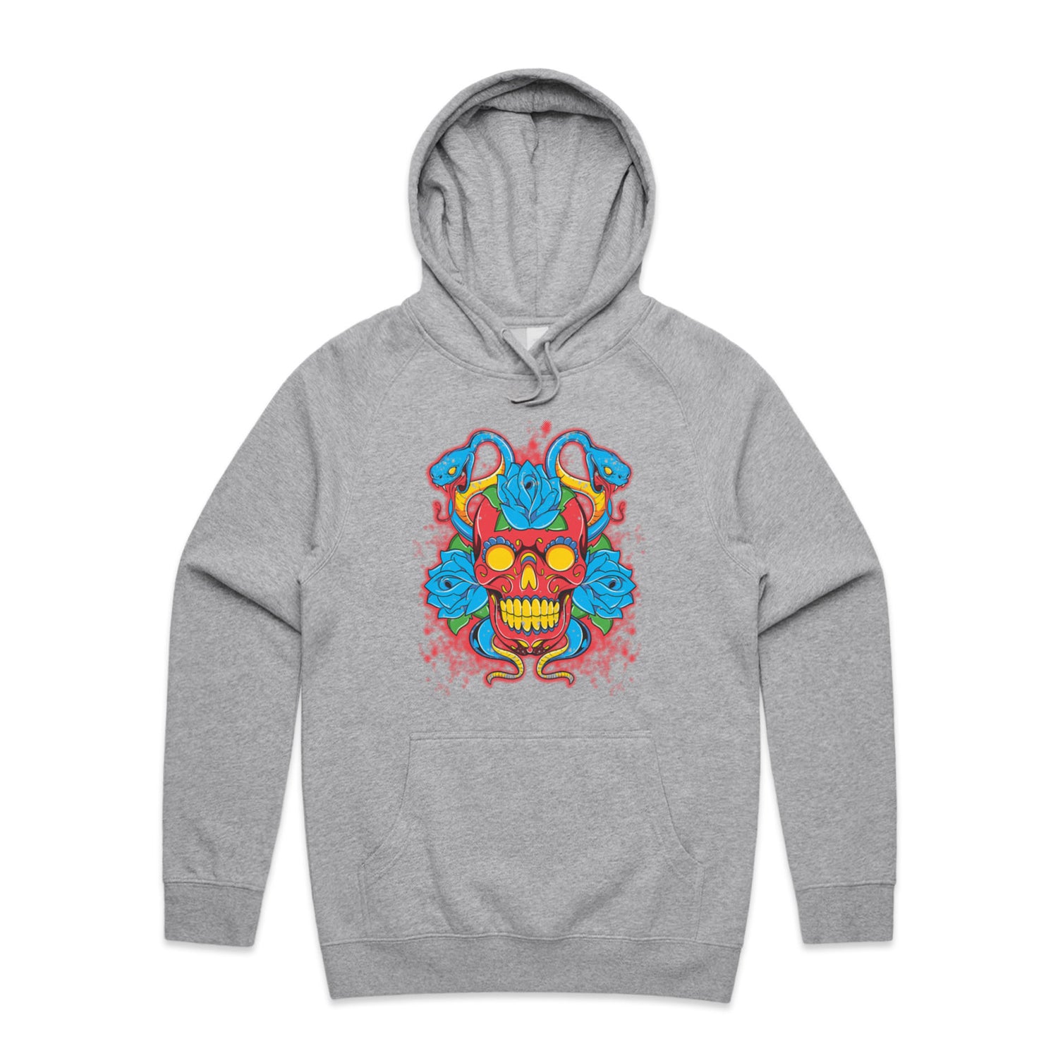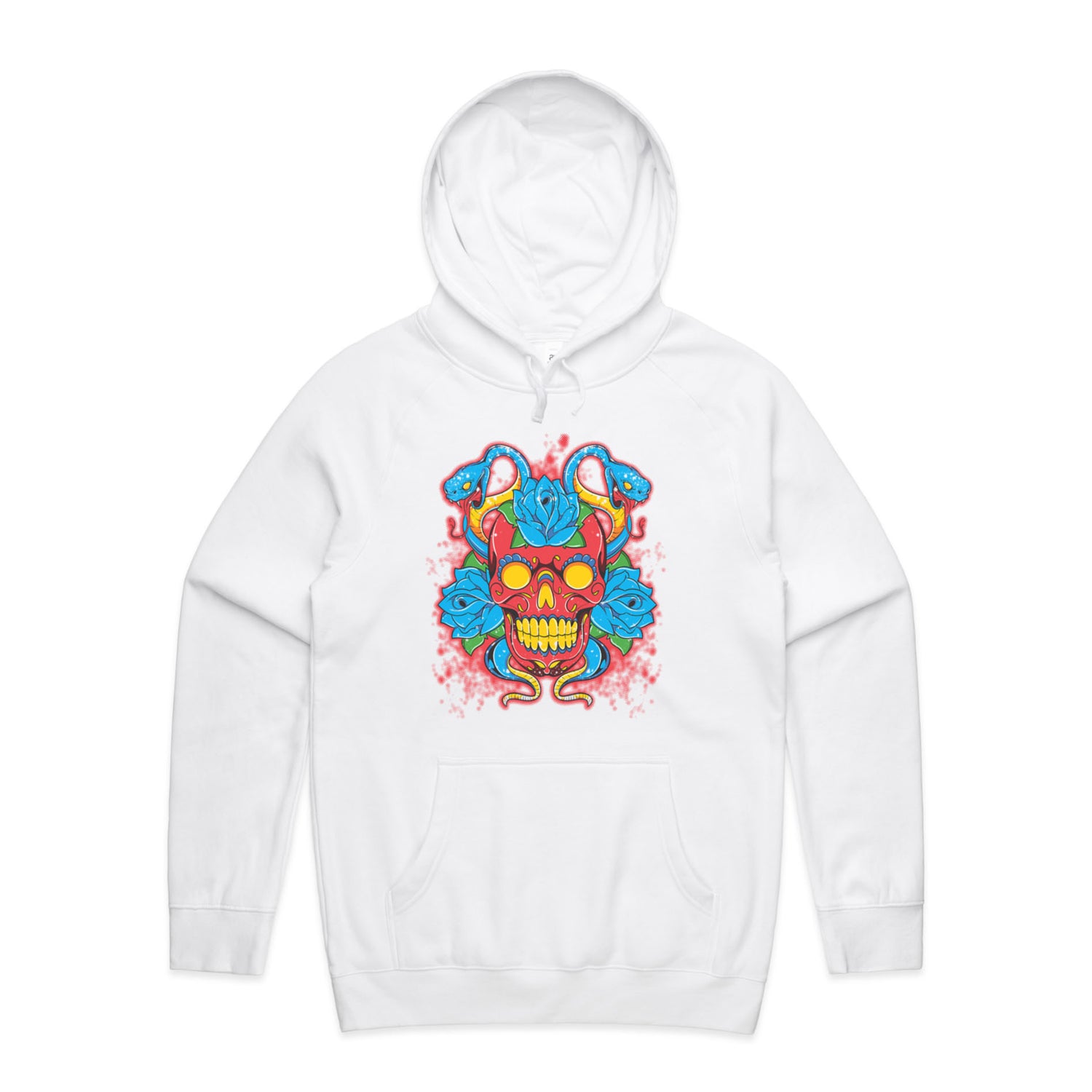 The Hoodies SugarSkull Vipers – Men's Hooded Sweatshirt is a high-quality men's hooded sweatshirt, printed with multicoloured ink on the trusted AS Colour Supply Hood 5101. With a regular fit and mid-weight feel, it's crafted from a premium blend of 80% cotton and 20% polyester anti-pill fleece, making it a durable and comfortable staple for any wardrobe. The pullover design features raglan sleeves, a lined hood with tonal drawcord, ribbed sleeve cuffs, and a roomy kangaroo pocket — all designed to keep you warm while looking effortlessly sharp.