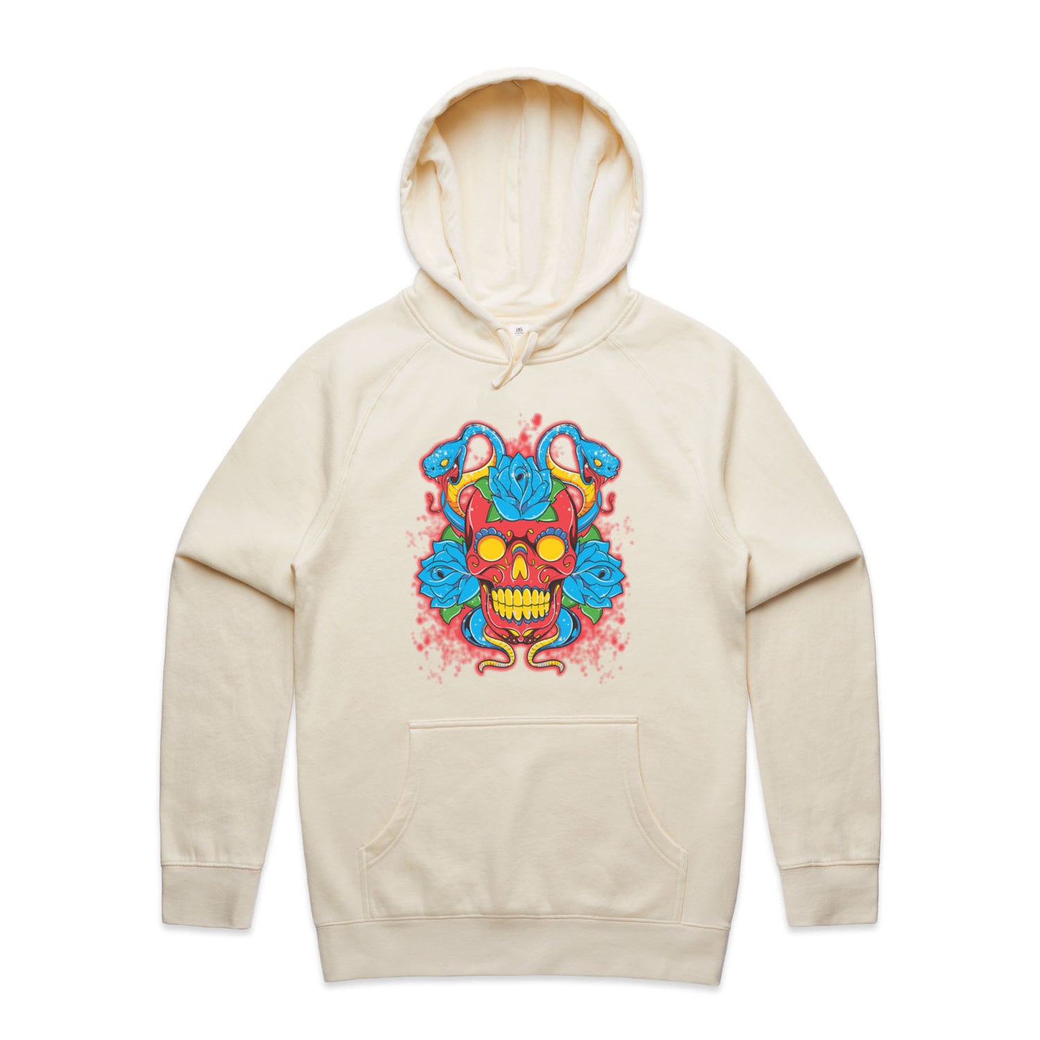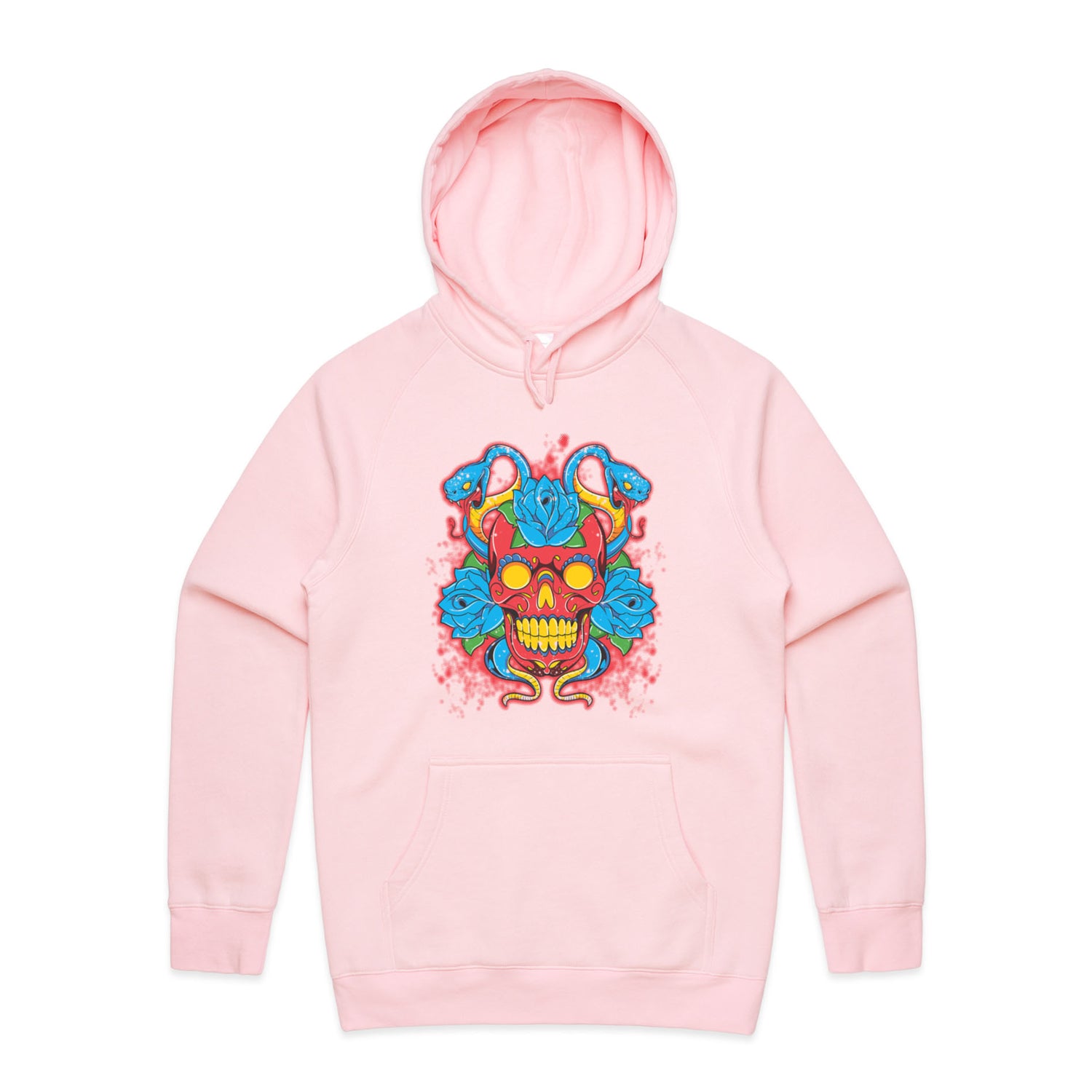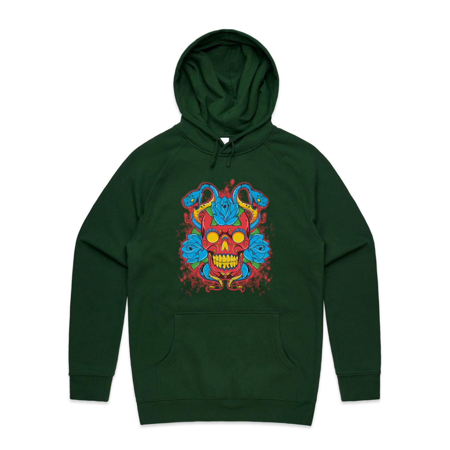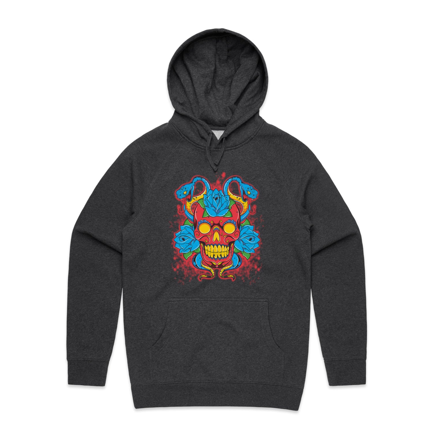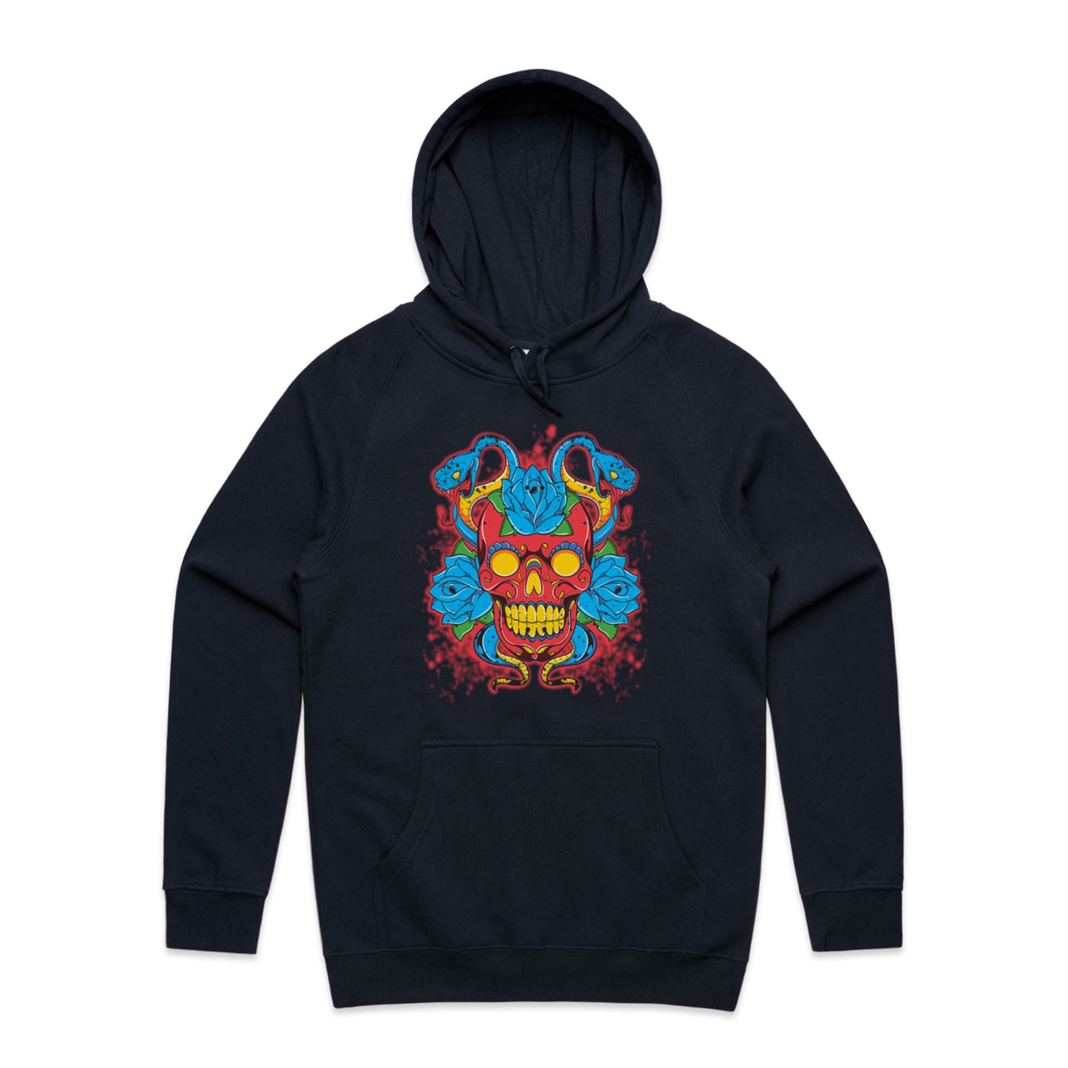 The Hoodies SugarSkull Vipers – Men's Hooded Sweatshirt is a high-quality men's hooded sweatshirt, printed with multicoloured ink on the trusted AS Colour Supply Hood 5101. With a regular fit and mid-weight feel, it's crafted from a premium blend of 80% cotton and 20% polyester anti-pill fleece, making it a durable and comfortable staple for any wardrobe. The pullover design features raglan sleeves, a lined hood with tonal drawcord, ribbed sleeve cuffs, and a roomy kangaroo pocket — all designed to keep you warm while looking effortlessly sharp.