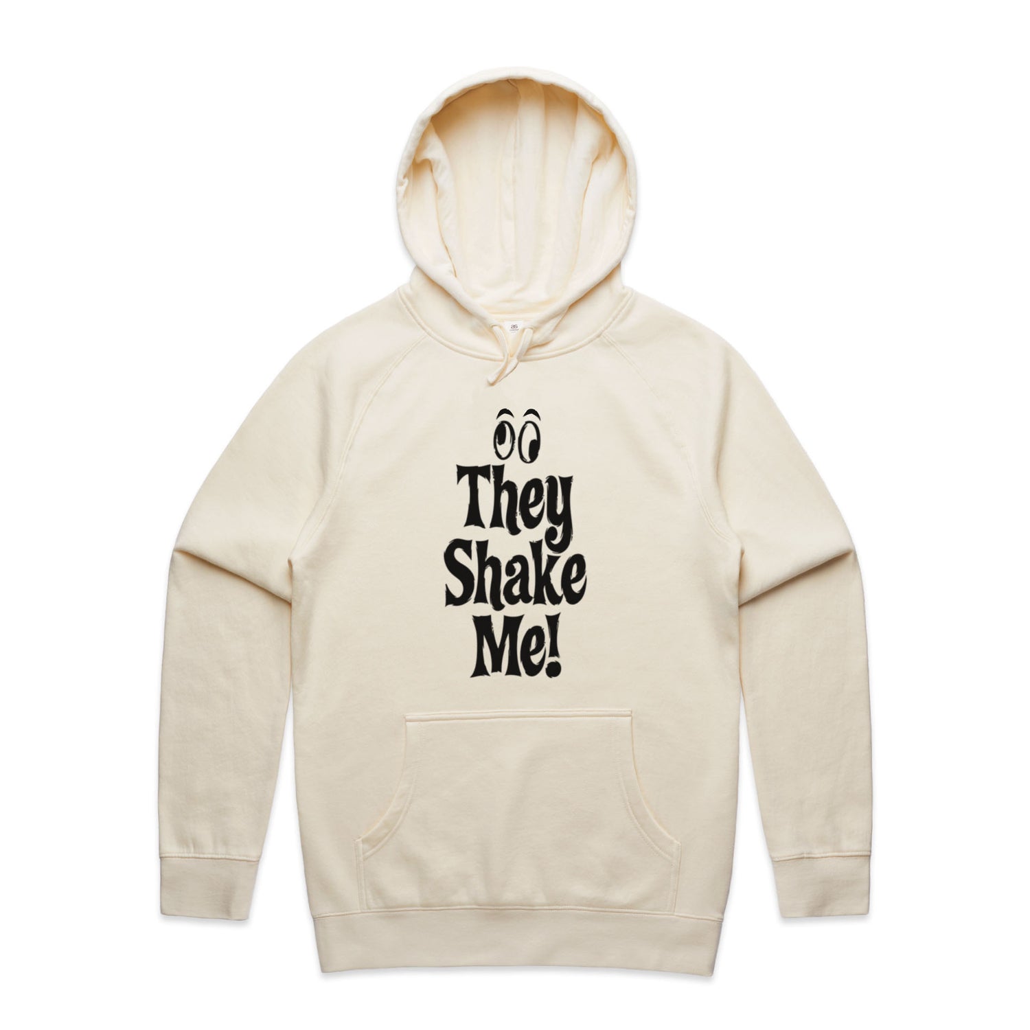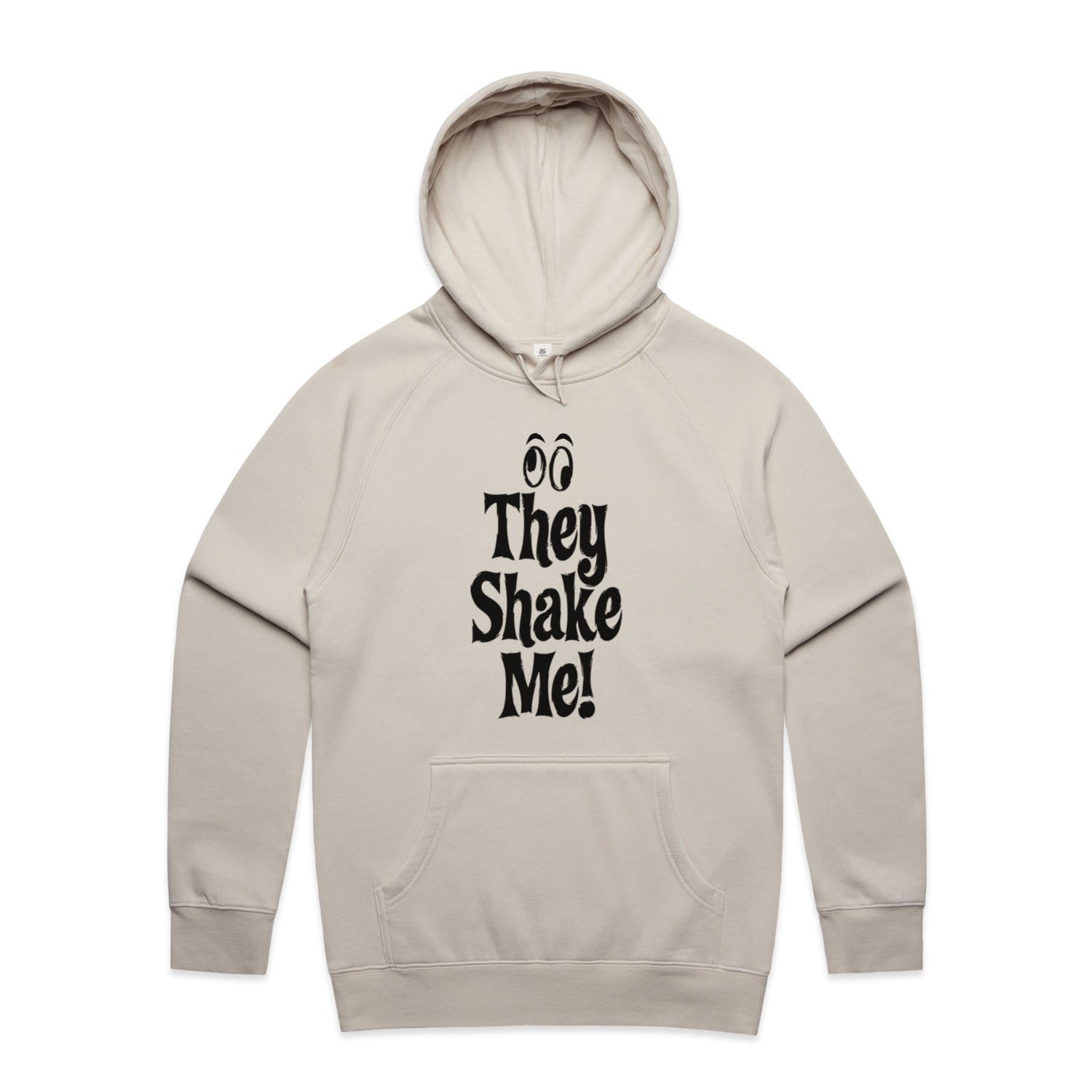 The Hoodies They Shake Me – Men's Hooded Sweatshirt is a high-quality men's hooded sweatshirt, printed with black ink on the trusted AS Colour Supply Hood 5101. With a regular fit and mid-weight feel, it's crafted from a premium blend of 80% cotton and 20% polyester anti-pill fleece, making it a durable and comfortable staple for any wardrobe. The pullover design features raglan sleeves, a lined hood with tonal drawcord, ribbed sleeve cuffs, and a roomy kangaroo pocket — all designed to keep you warm while looking effortlessly sharp.