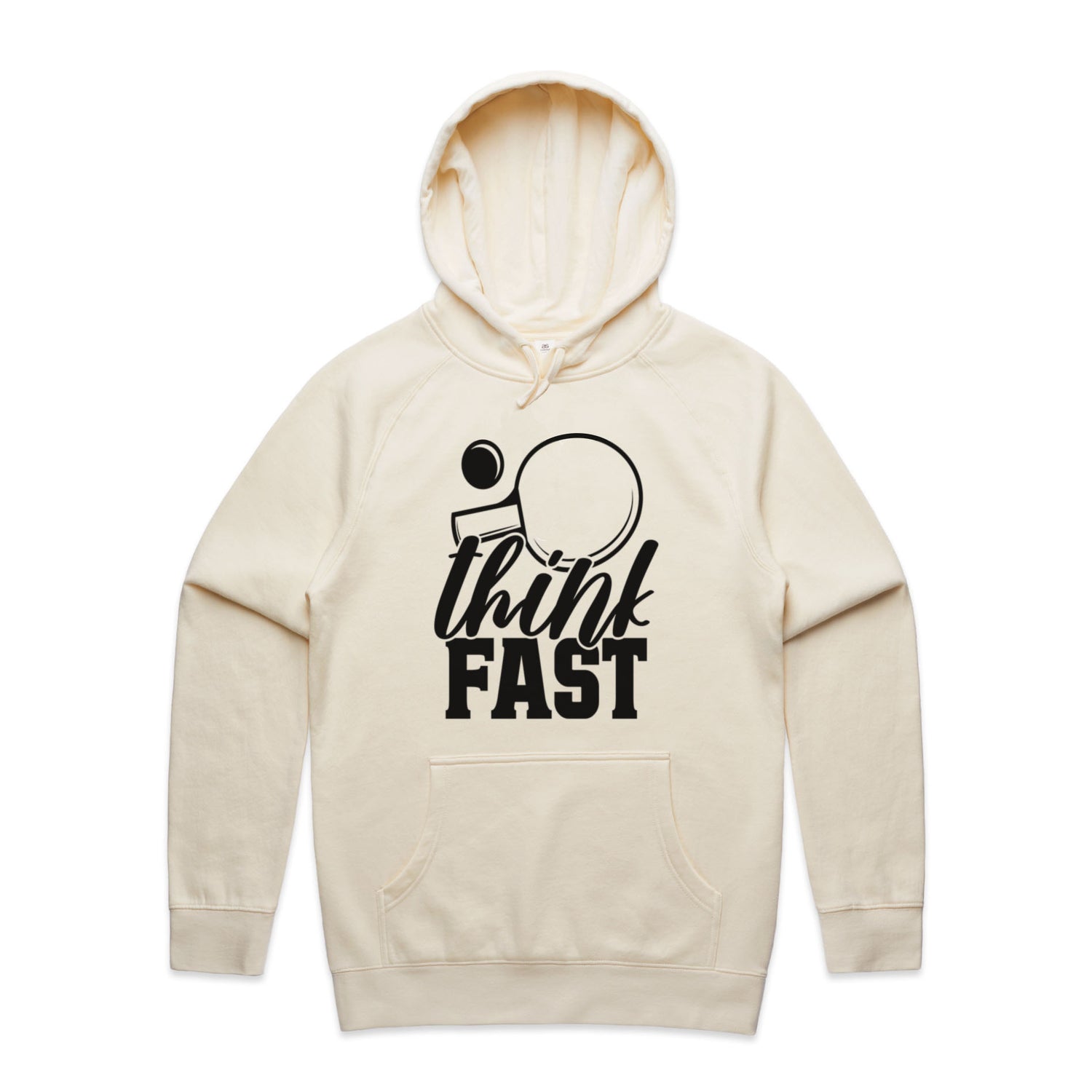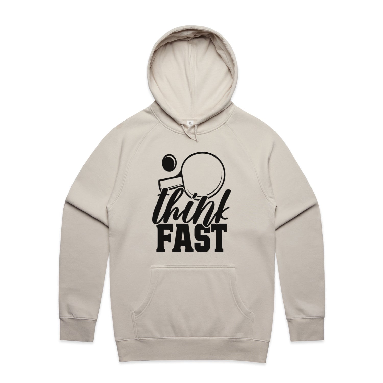 The Hoodies Think Ping Pong – Men's Hooded Sweatshirt is a high-quality men's hooded sweatshirt, printed with black ink on the trusted AS Colour Supply Hood 5101. With a regular fit and mid-weight feel, it's crafted from a premium blend of 80% cotton and 20% polyester anti-pill fleece, making it a durable and comfortable staple for any wardrobe. The pullover design features raglan sleeves, a lined hood with tonal drawcord, ribbed sleeve cuffs, and a roomy kangaroo pocket — all designed to keep you warm while looking effortlessly sharp.