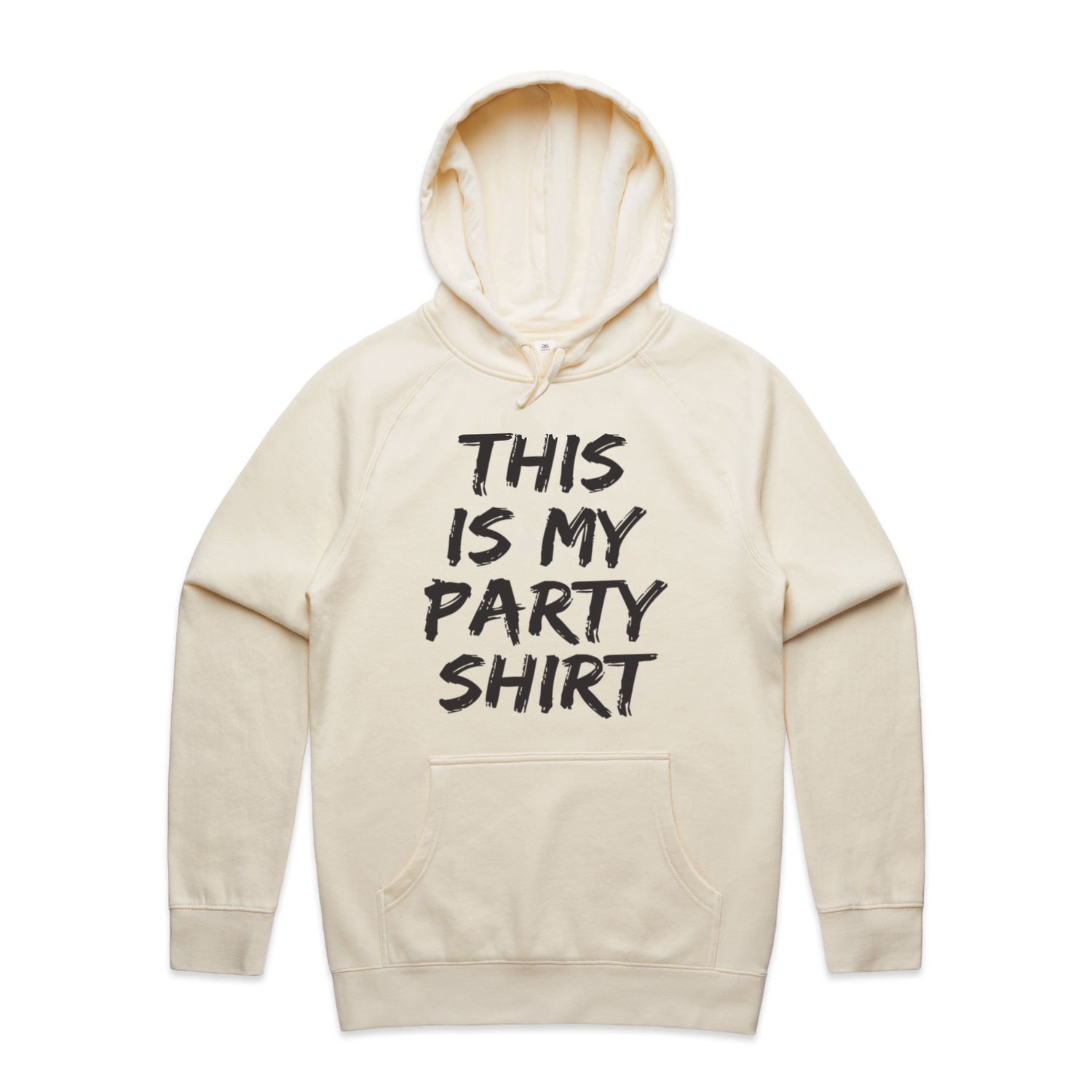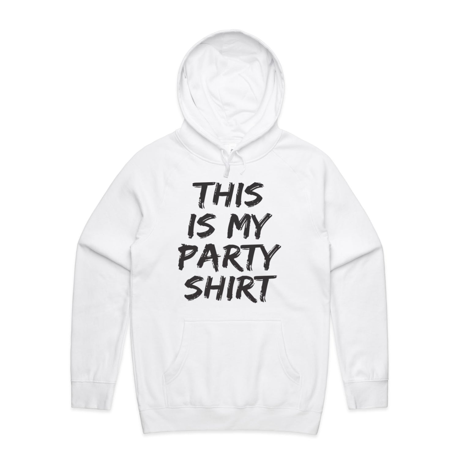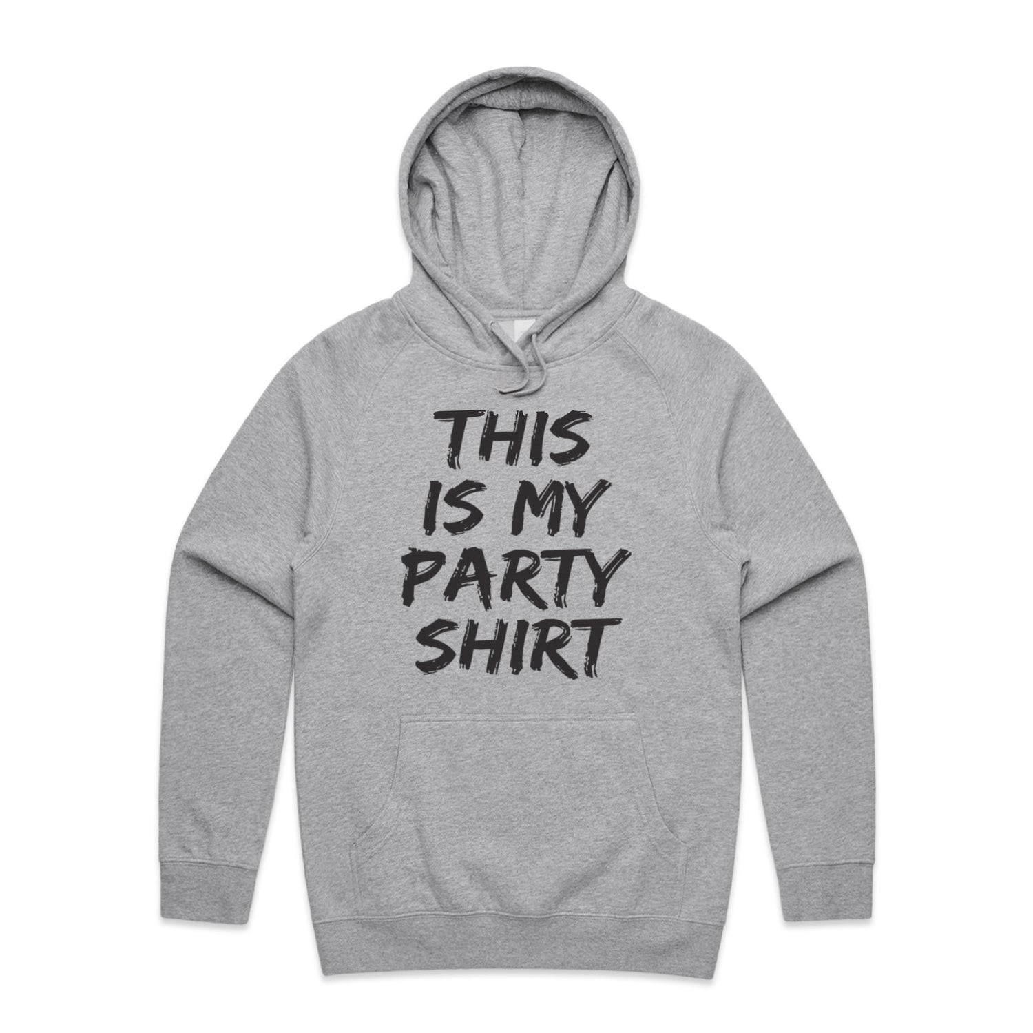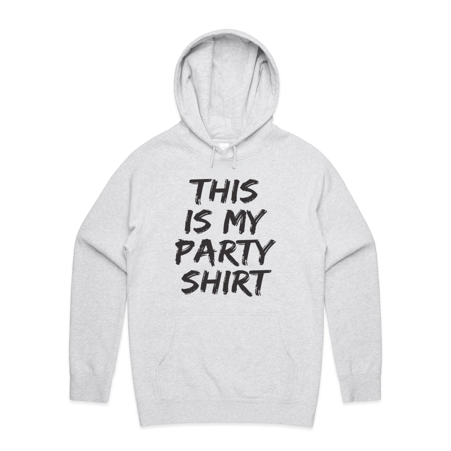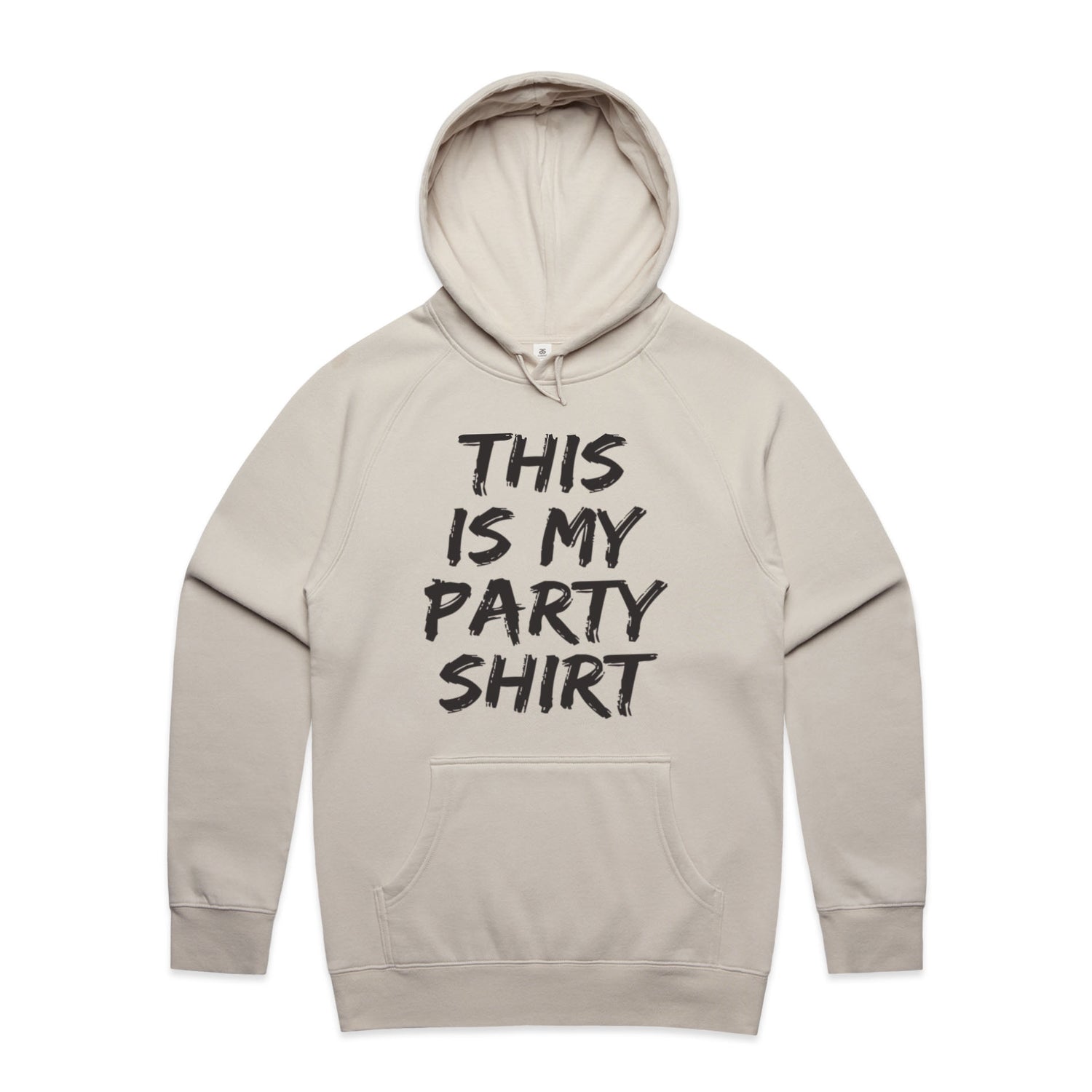 The Hoodies This is My Party Shirt – Men's Hooded Sweatshirt is a high-quality men's hooded sweatshirt, printed with black ink on the trusted AS Colour Supply Hood 5101. With a regular fit and mid-weight feel, it's crafted from a premium blend of 80% cotton and 20% polyester anti-pill fleece, making it a durable and comfortable staple for any wardrobe. The pullover design features raglan sleeves, a lined hood with tonal drawcord, ribbed sleeve cuffs, and a roomy kangaroo pocket — all designed to keep you warm while looking effortlessly sharp.
