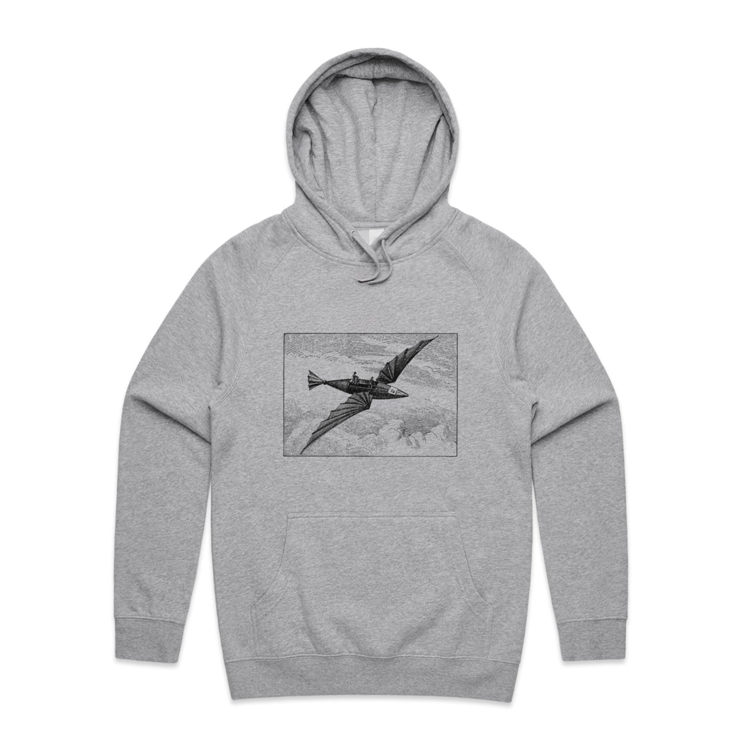 The Hoodies Thomas Edison's Flying Canoe – Men's Hooded Sweatshirt is a high-quality men's hooded sweatshirt, printed with black ink on the trusted AS Colour Supply Hood 5101. With a regular fit and mid-weight feel, it's crafted from a premium blend of 80% cotton and 20% polyester anti-pill fleece, making it a durable and comfortable staple for any wardrobe. The pullover design features raglan sleeves, a lined hood with tonal drawcord, ribbed sleeve cuffs, and a roomy kangaroo pocket — all designed to keep you warm while looking effortlessly sharp.