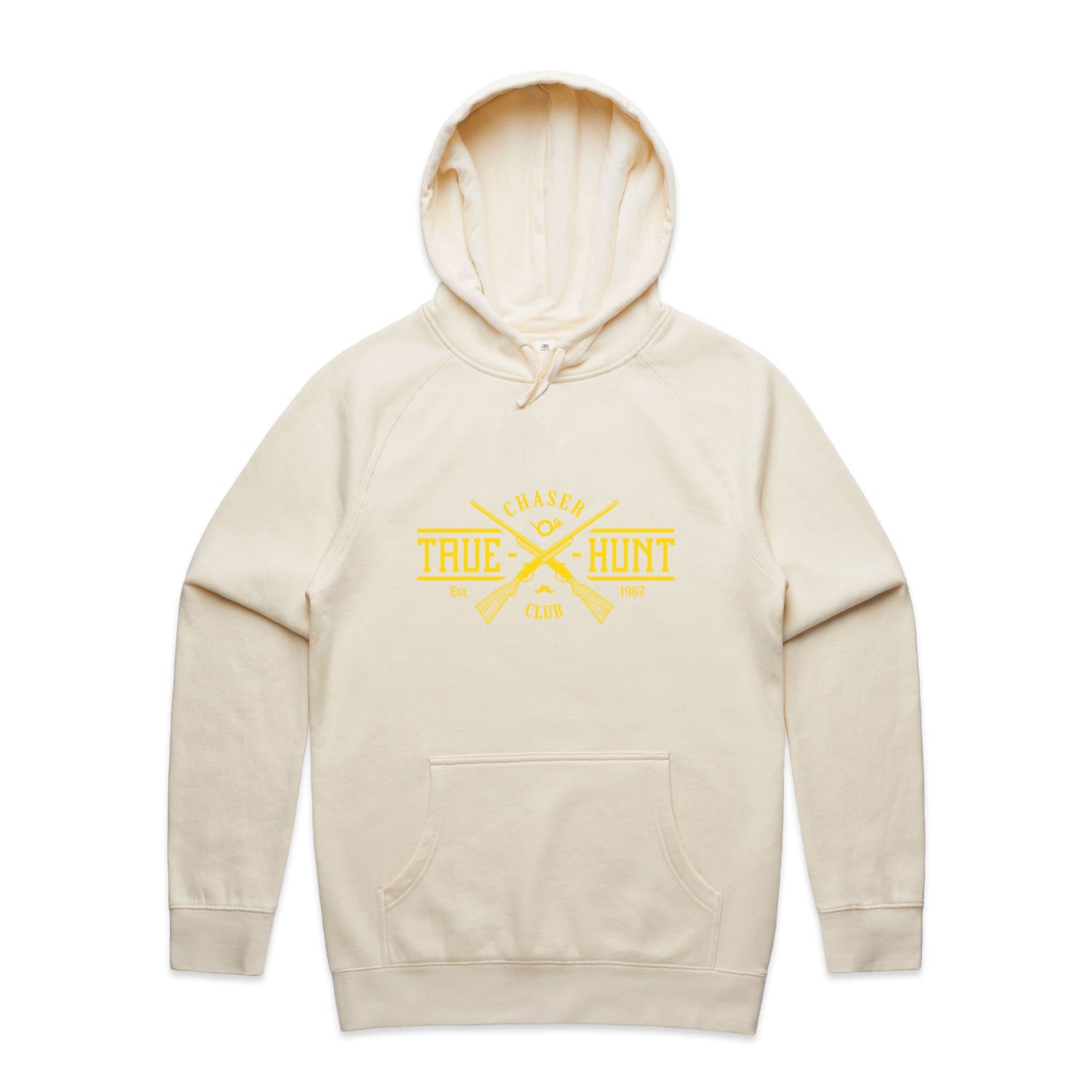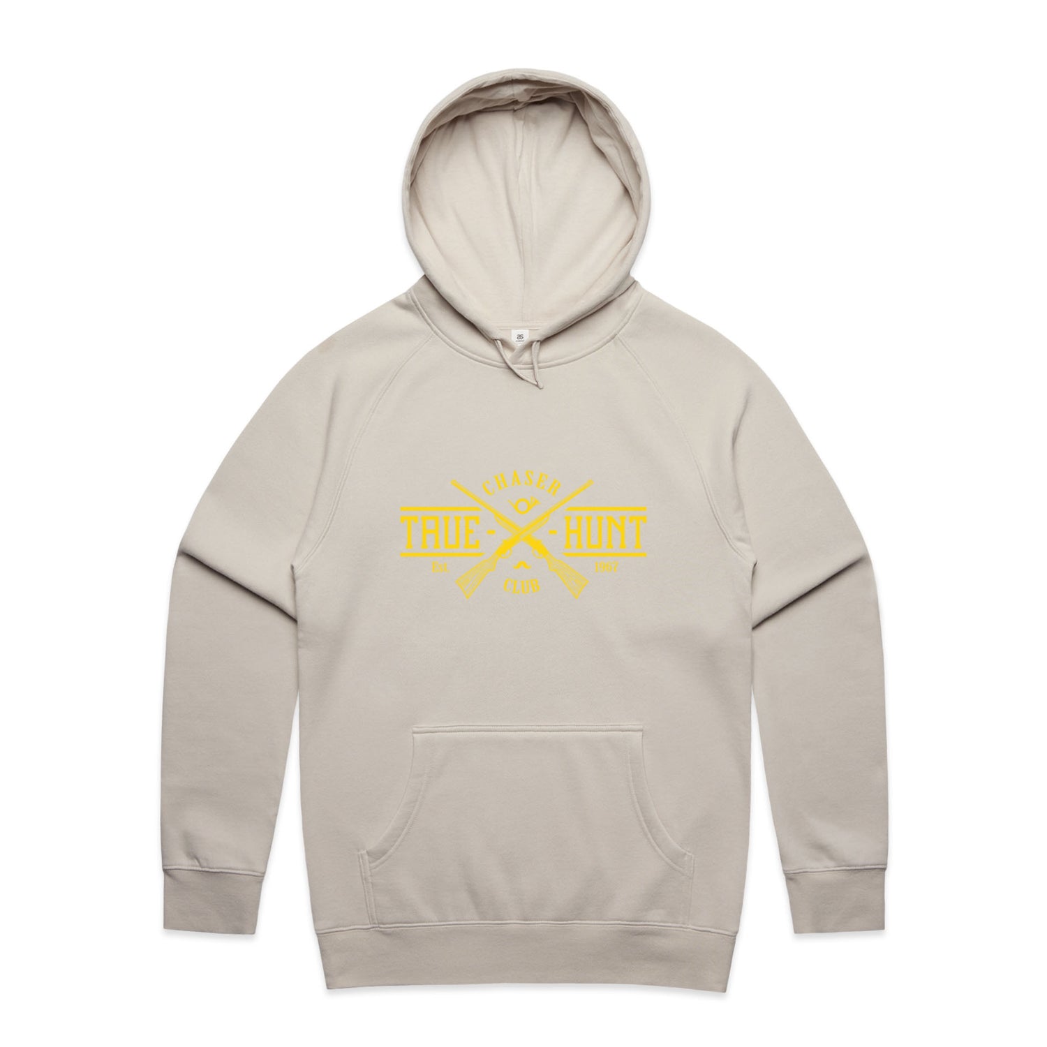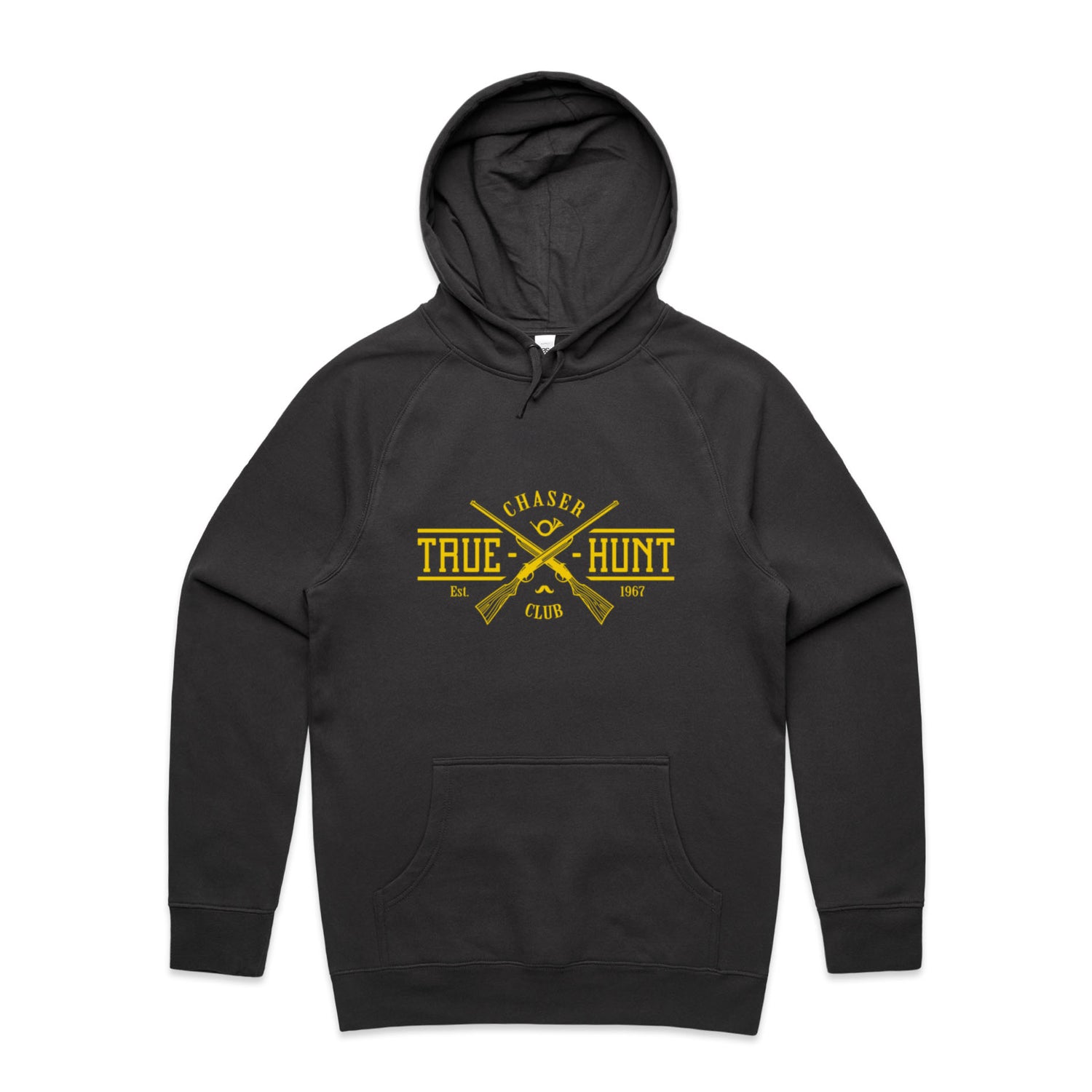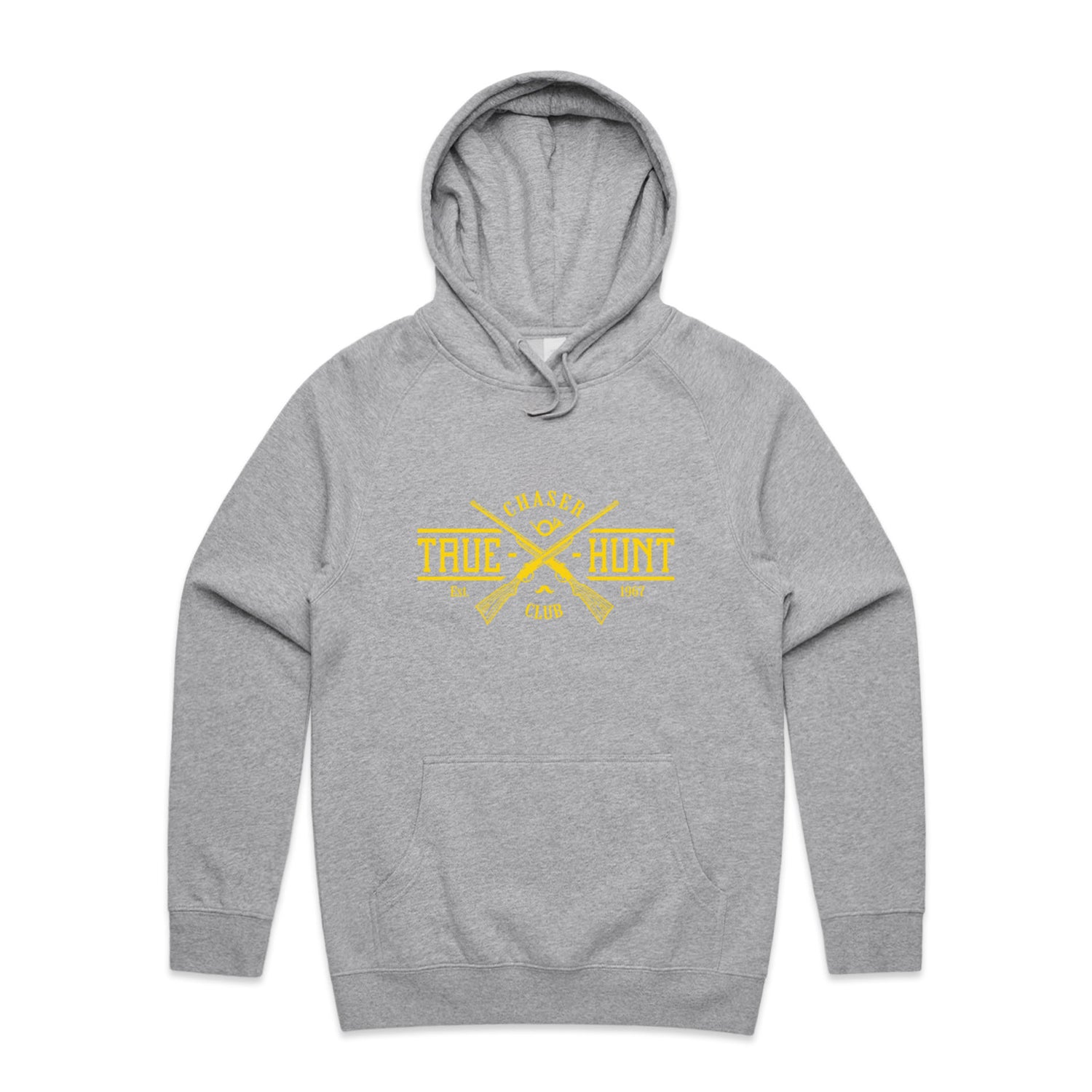 The Hoodies True Hunter – Men's Hooded Sweatshirt is a high-quality men's hooded sweatshirt, printed with yellow ink on the trusted AS Colour Supply Hood 5101. With a regular fit and mid-weight feel, it's crafted from a premium blend of 80% cotton and 20% polyester anti-pill fleece, making it a durable and comfortable staple for any wardrobe. The pullover design features raglan sleeves, a lined hood with tonal drawcord, ribbed sleeve cuffs, and a roomy kangaroo pocket — all designed to keep you warm while looking effortlessly sharp.