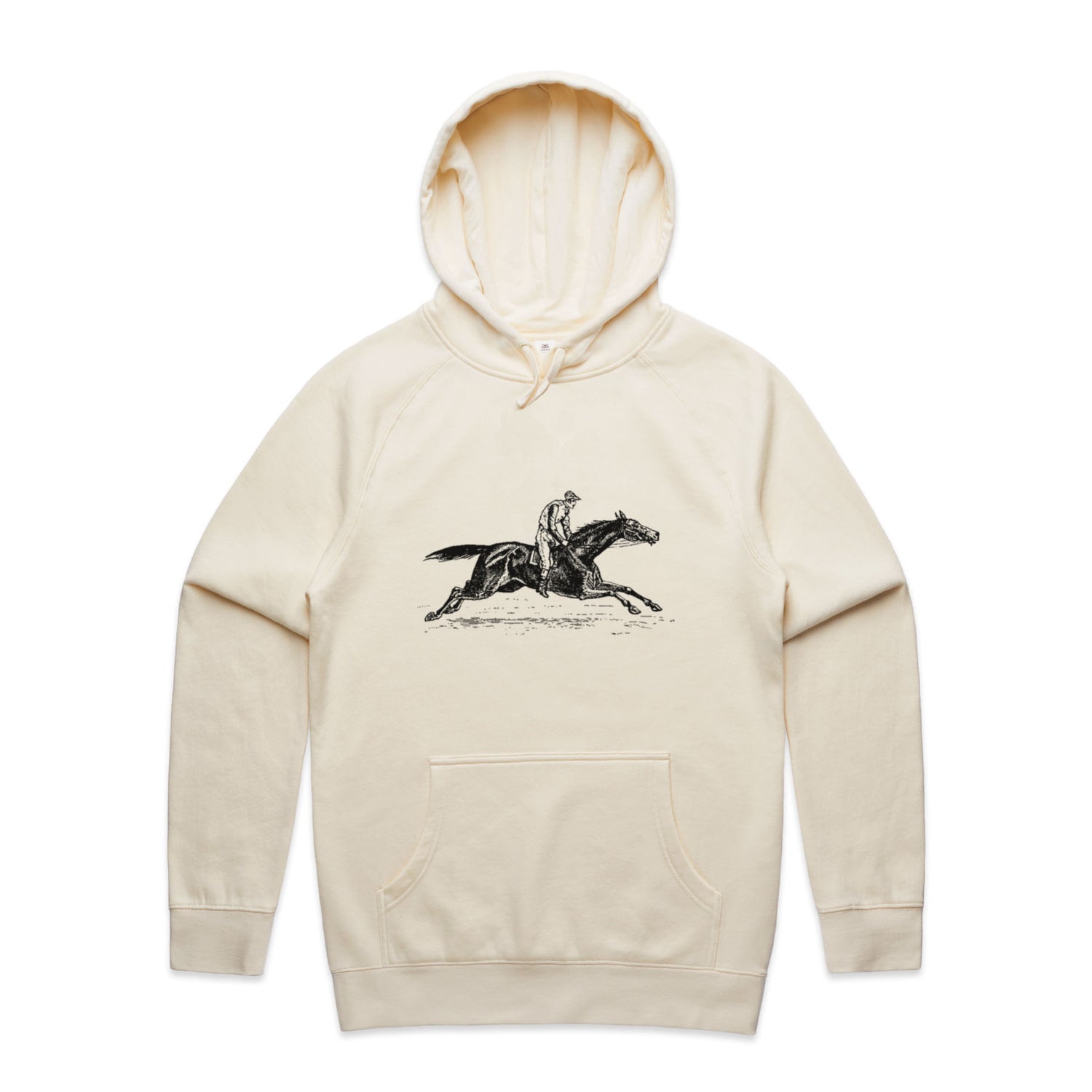 The Hoodies Vintage Race Horse – Men's Hooded Sweatshirt is a high-quality men's hooded sweatshirt, printed with black ink on the trusted AS Colour Supply Hood 5101. With a regular fit and mid-weight feel, it's crafted from a premium blend of 80% cotton and 20% polyester anti-pill fleece, making it a durable and comfortable staple for any wardrobe. The pullover design features raglan sleeves, a lined hood with tonal drawcord, ribbed sleeve cuffs, and a roomy kangaroo pocket — all designed to keep you warm while looking effortlessly sharp.