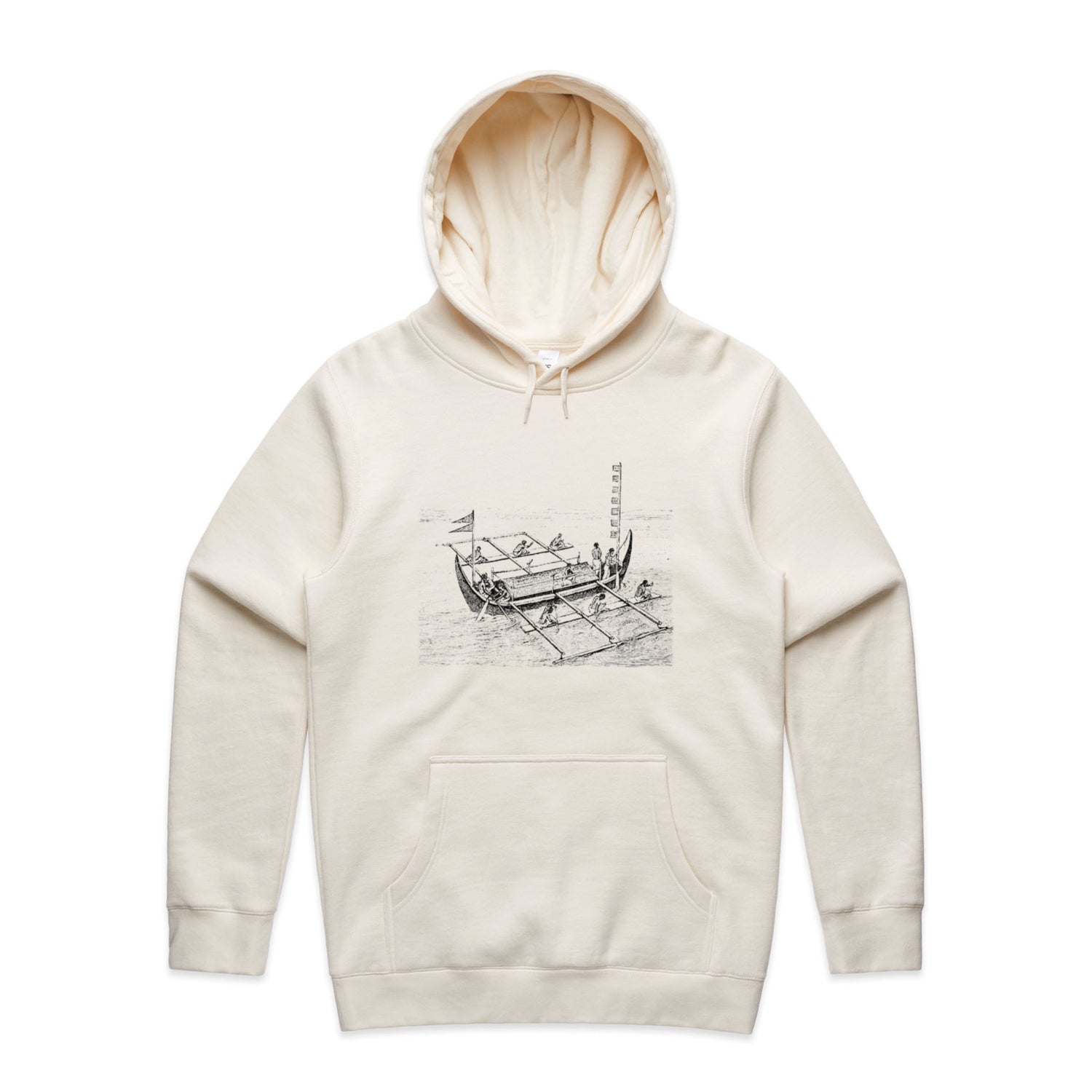 Pull on this bad boy and watch as heads turn, thanks to its unique vintage boat print that's splashed across a backdrop of midnight black. Whether you're traversing the streets or chilling by the coast, this hoodie’s designed to keep you snug and trendy with its eco-friendly fabric blend. Plus, with a lined hood and snug ribbed cuffs, you’ll be as cosy as a koala in a gum tree. Chuck it on and set sail into the realm of good vibes and stunner style!