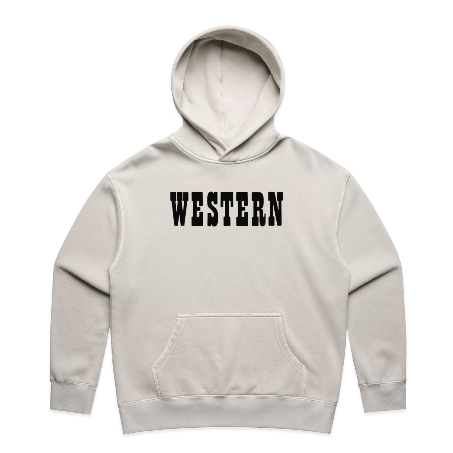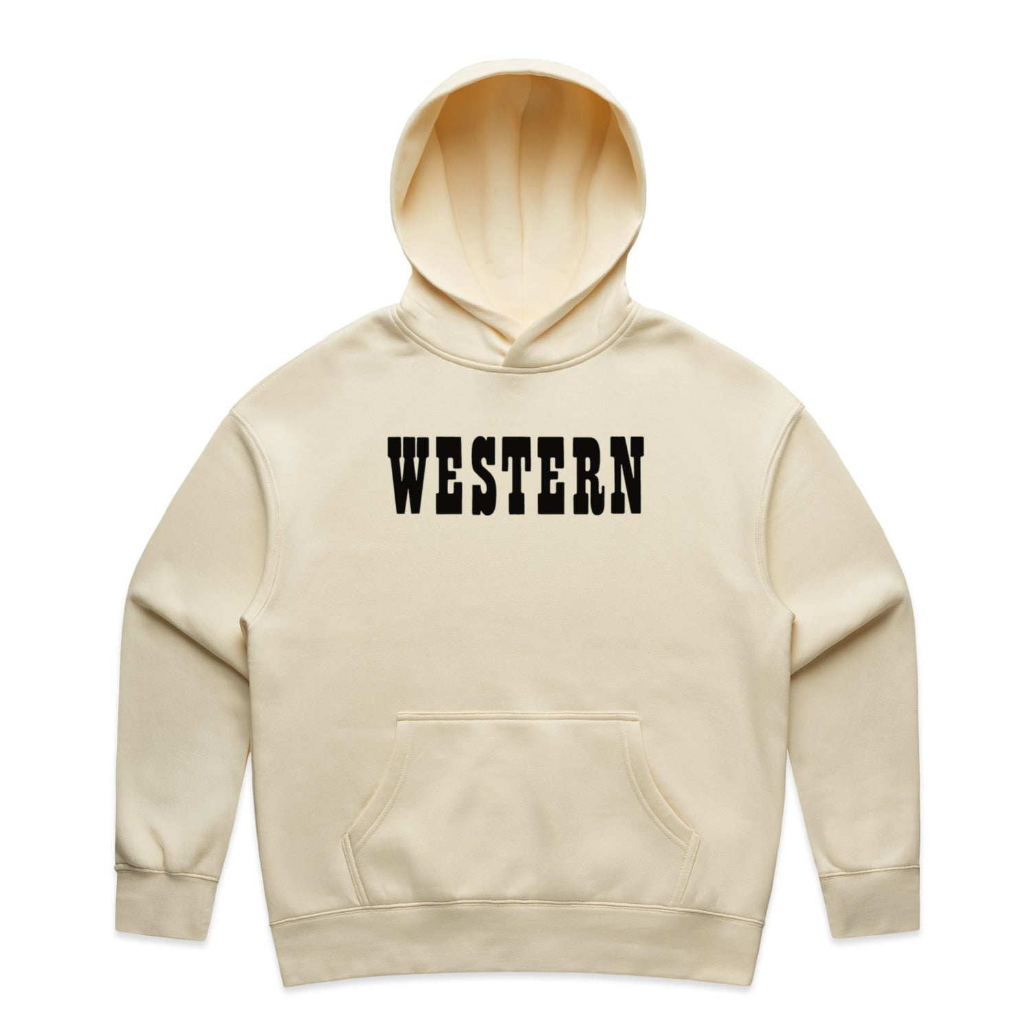 Get ready to rock the ultimate blend of chill vibes and retro flair with TheHoodie's Western – Women's Hooded Sweatshirt. This beaut is not just your average hoodie; it's the perfect mashup of word art and nostalgia, all wrapped up in a sleek black ink print that'll make your style pop like a sunny arvo in the Outback.